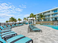 Immerse yourself in Melbourne Beach's premier private resort-style community, spanning from the Indian River Lagoon to the Atlantic Ocean. This meticulously crafted riverfront residence is built with a concrete superstructure, offering exceptional durability paired with tasteful coastal design. The third floor unit features elevated ceiling heights and a seamless open floor plan with three bedrooms, including a riverfront primary suite highlighted by floor-to-ceiling glass. Two luxurious en suites enhance the home's warm, welcoming, and expansive feel. Relax by the riverside pool cabanas or take a short stroll to the beach, where seasonal sea turtle hatchlings make their journey to the ocean. Residents enjoy an impressive array of amenities, including a marina, water sports rentals, and a beachside comfort station. Flexible rental options provide added versatility when not in residence. Experience refined coastal living at Harbor Island Beach Club.
