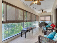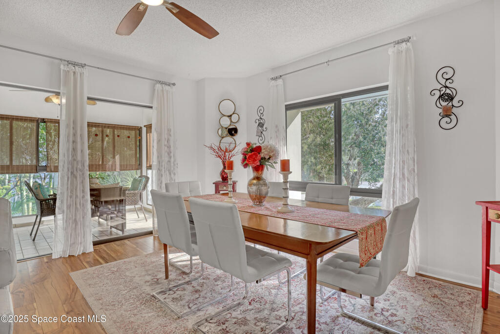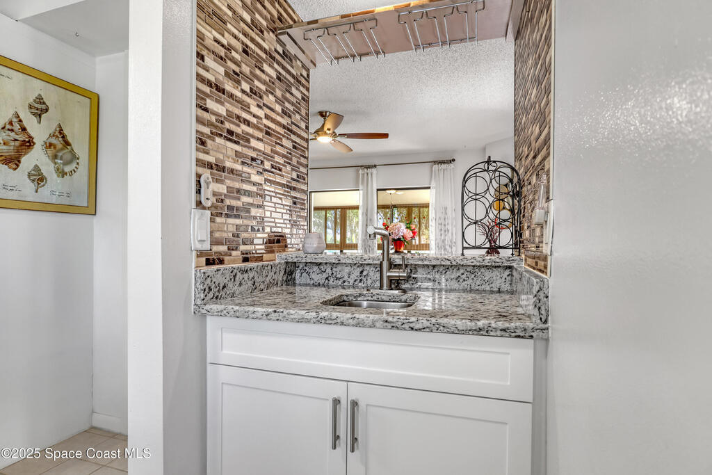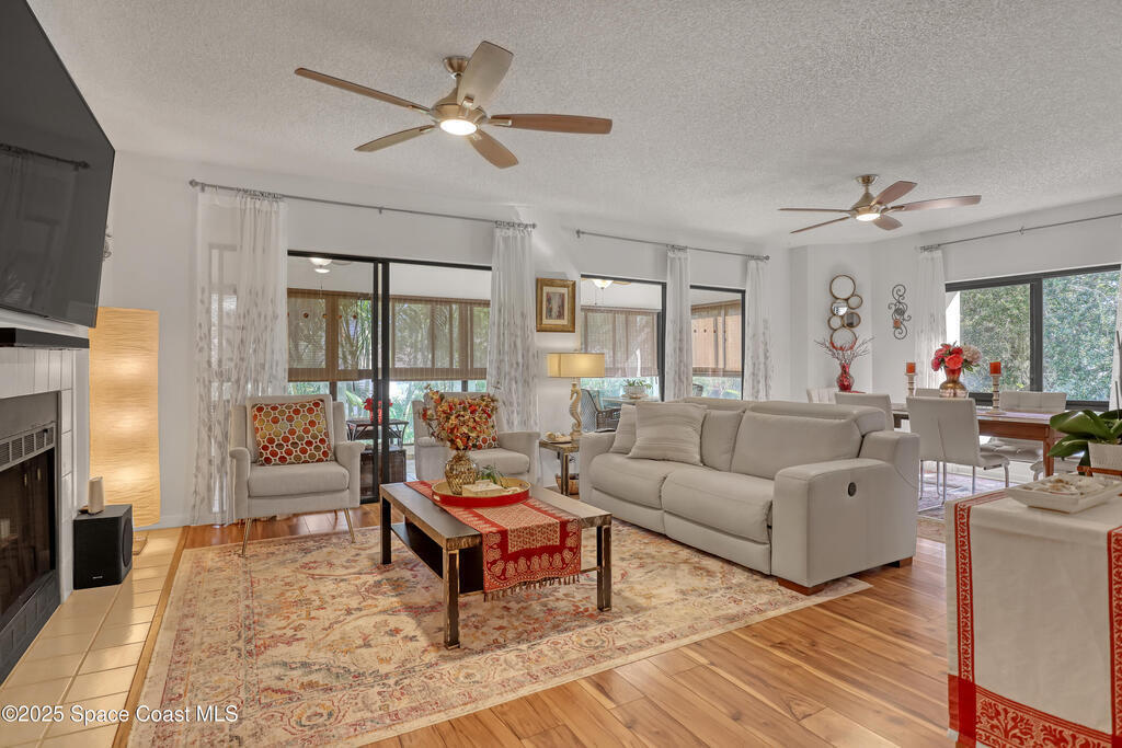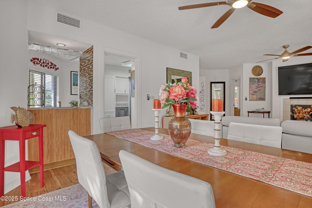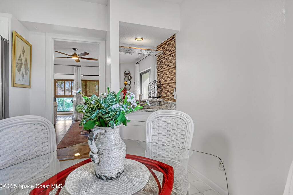 THIS IS NOT YOUR TYPICAL BARRIER ISLAND CONDO LOCATED IN THE MUCH-SOUGHT-AFTER AQUARINA BEACH & COUNTRY CLUB OCEAN-TO RIVER BEACH RESORT COMMUNITY! FULLY FURNISHED with 3 bedrooms, 2 & a half baths, large living room with wood-burning FP, spacious primary suite, walk-in closets, wet bar & wrap-around glassed-in porches offering stunning tropical views from every room. This unit is full of upgrades! New LVP flooring, updated kitchen cabinets with new quartz countertops & new appliances. New paid for roof & community pool! Thoughtfully appointed bohemian-chic decor & modern furniture with everything you need to live your BEST FLORIDA LIFE right here-right down to 3 high-end tvs & orbi wireless mesh network. An extra-long detached garage provides storage for all of your beach toys including the negotiable golf cart. Community amenities include Golf & Tennis clubs with limited play included, Beach Club with private beach access, fitness center, boat launch & fishing dock, restaurant.