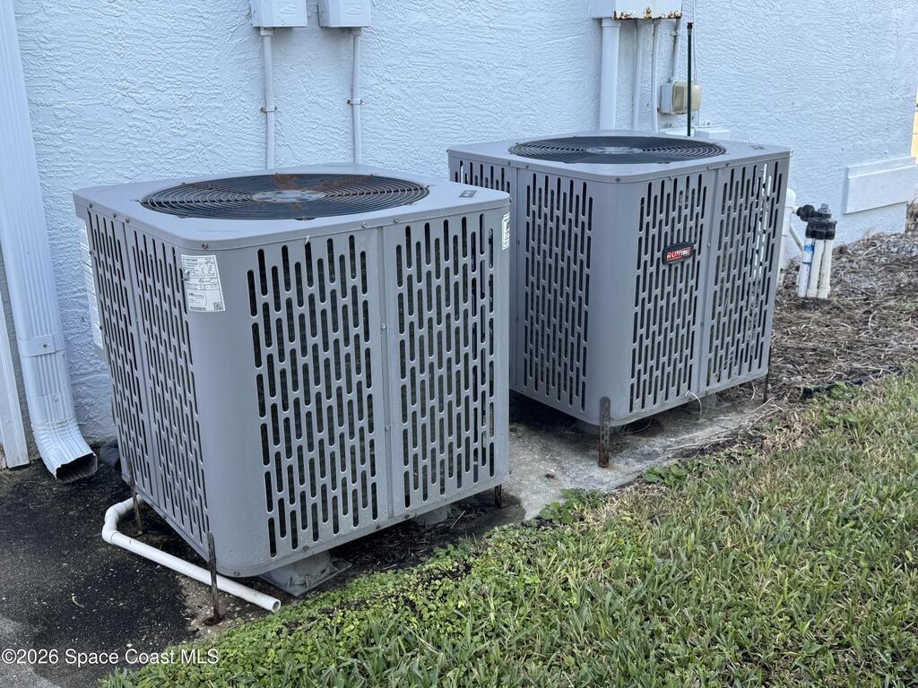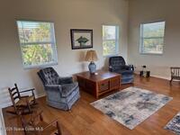 This well maintained two story home is located a short walk to the community beach access and park. New A/C's in Jan 2024 and June 2024 (2 units). Overhaul and upgrade of entire home water filtration system and well piping. The entire interior is freshly painted. On the first level is the primary suite w/new tile hardwood floor. Elegant primary bath that has garden tub and separate shower. Two bathrooms have sliding glass tub/shower doors. Both bedrooms have wood floors. The second level is huge open great room with slider to tiled balcony that has some ocean views. There is also another bedroom and full bath on this level. The kitchen has big center island and lots of cabinet space. New refrigerator and dishwasher. Large 2 car garage. Big backyard has shed with repairs including roof. Screened in lanai. Entire yard has been newly landscaped. Huge driveway with circle so easy access for vehicles and lots of parking! Also listed for sale.