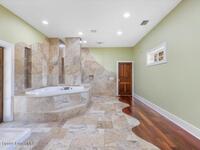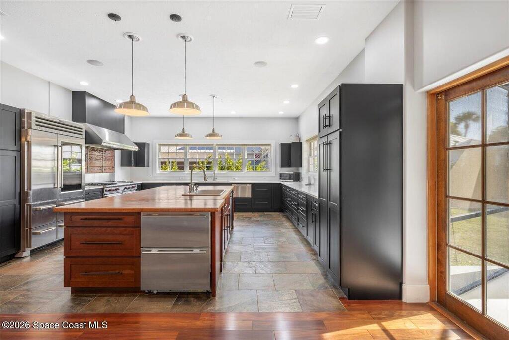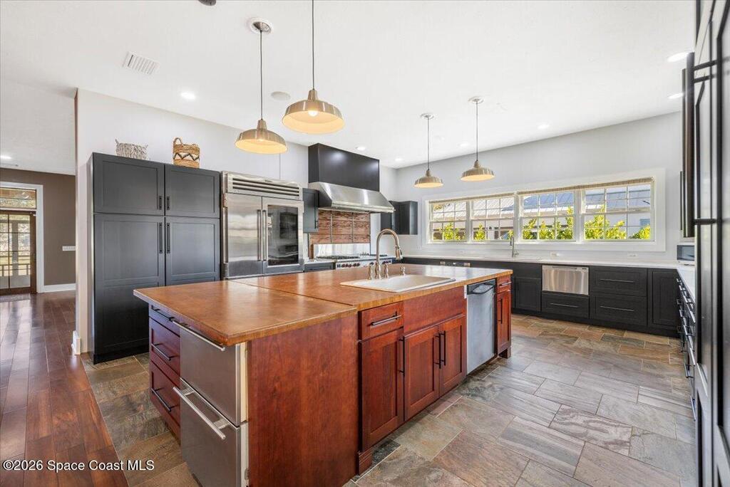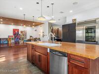 Unparalleled craftsmanship & elegance in the heart of Melbourne Beach. Boasting a massive kitchen featuring Sub-Zero appliances...a chef's dream! Floorplan features natural materials throughout including exotic hardwood & cork flooring, shell stone, travertine & slate tile, bamboo butcher block countertops, cypress shiplap & more. Primary suite, private retreat opening to the courtyard with a spa grade soaking tub and shower. Guest Loft is a fully separate living space with an efficiency kitchen and Asian influenced bathroom. The 2nd floor flex suite offers a blank slate for a primary suite buildout of your dreams. 2 car garage roughed-in for efficiency apartment, environmentally friendly permeable driveway, server room and 2 screen porches. Located on one of the most desirable and quiet streets with walkable access to the beach, parks, shops and dining. Vacation property of your dreams, short-term rental, multi generational or year-round single-family residence.