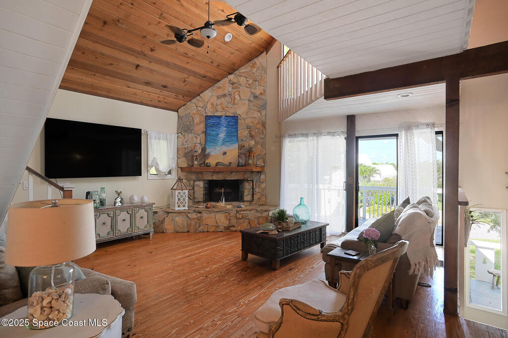 NEW ROOF COMING SOON! Fall in love with this sprawling, three story key west style home that has endless square footage and a pretty river view. As you enter into the living room you will notice the wood floors and high vaulted ceiling with large living area plus dining room. Enter the spacious kitchen with center island, stainless steel appliances and quaint breakfast nook. The views from the many windows display the lush landscape and let an abundance of natural light flow in. On the top level is primary retreat with large walk in closet and private balcony that has river view. 1st floor guest suite w/ 1 bedroom plus bath, wet bar, family room w/ slider leading to spacious covered lanai and huge backyard with room for pool. Big 2 garage w/ tall ceilings for extra storage. Enjoy direct ocean access w/ covered pavilion/picnic table + staircase to the sandy beach. Walk to community river park that offers fishing on community pier with kayak storage offered and playground.