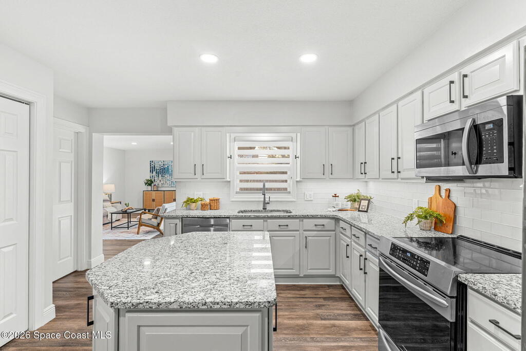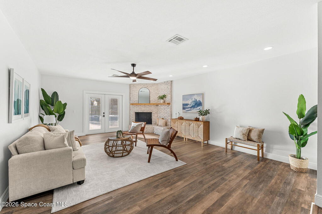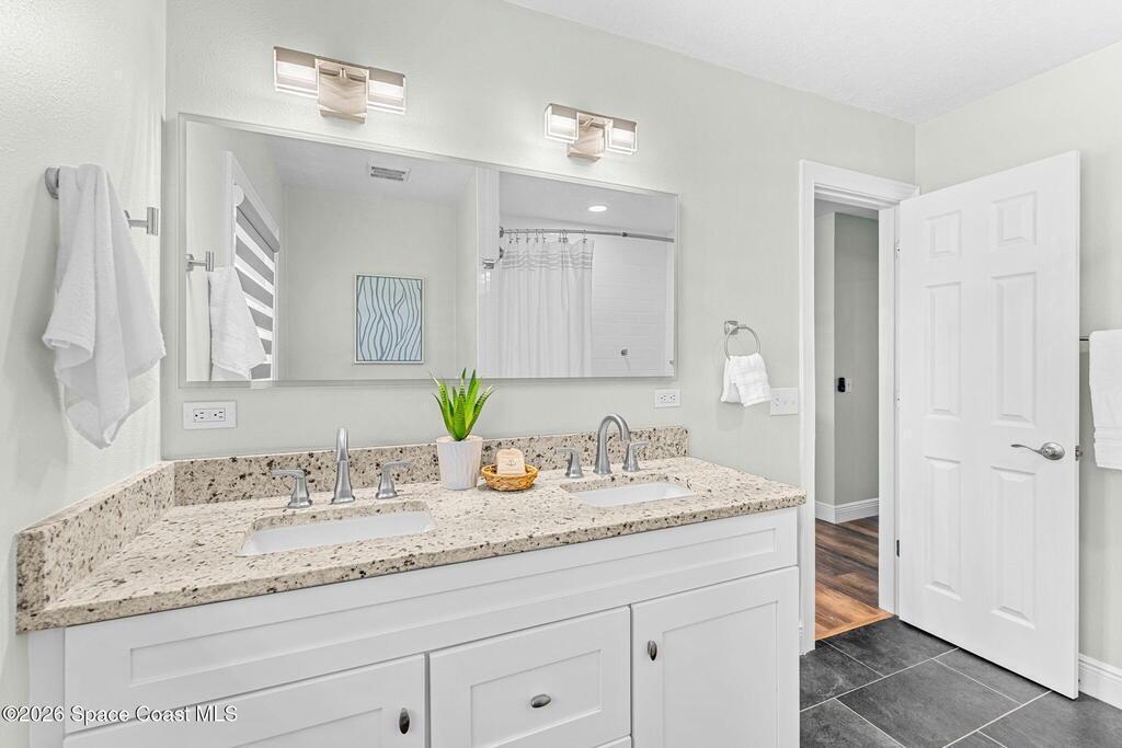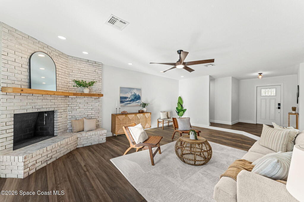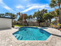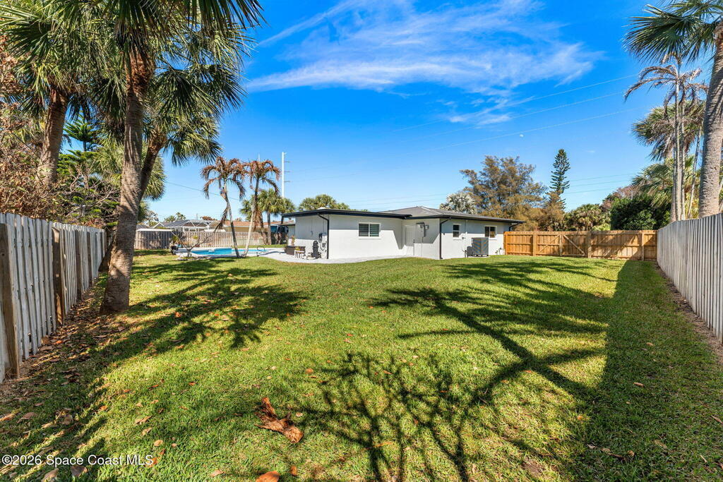 Big sky, salt air, & room to breathe--this fully updated Melbourne Beach retreat on a sprawling .42-acre lot delivers the coastal lifestyle most only dream about. Deeded ocean access shared by just 20 homes means sunrise walks on a quiet stretch of sand are part of your daily rhythm. Inside, modern, light-filled spaces shine w/ LVP & tile throughout, a lime-washed brick wood-burning fireplace, & a stunning kitchen featuring granite counters, white cabinetry, SS appliances, & a custom banquette built for slow mornings after the surf. Walls of impact-rated windows frame the backyard oasis where a saltwater pool glistens w/ a brand-new Tahoe Blue freestone finish, new pump, new electric panel & TruClear system. 2025 brought paver drive & pool deck, wrap-around path to the garage, Sherwin Williams exterior paint, board-on-board fencing, epoxy garage floor & a Trane Hyperion system.