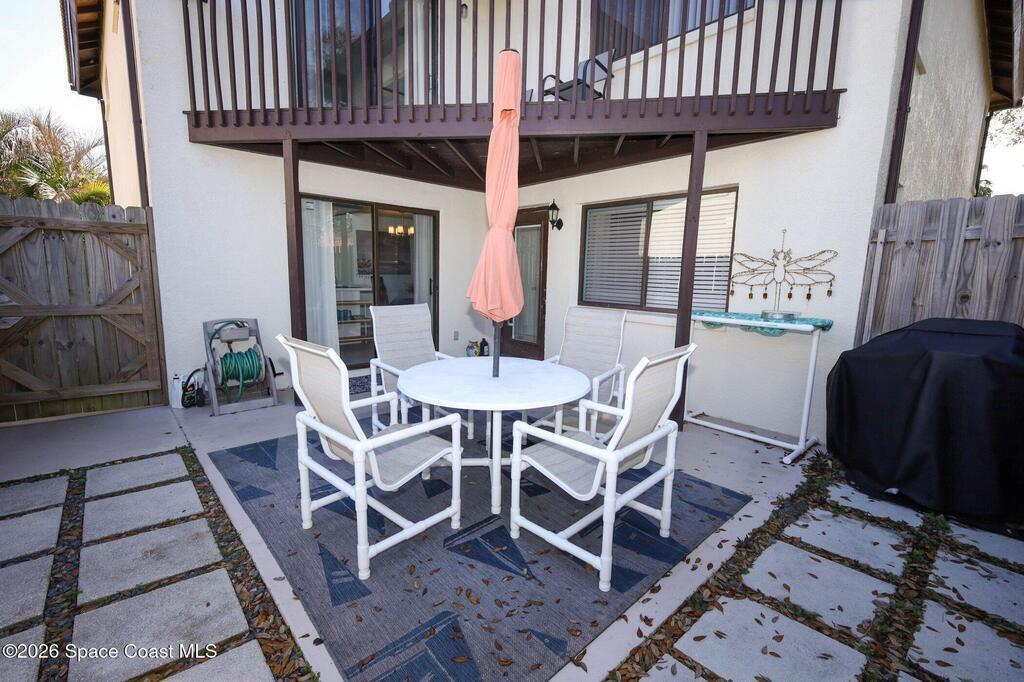 Welcome to 3257 River Villa Way, a charming coastal townhome tucked inside the gated Beach Woods community in the heart of MelbourneBeach. The main level opens with a covered front porch entry and flows into aspacious living room, dedicated dining area, and an efficient kitchen with breakfast bar seating, pantry storage, and a layout that keepseverything connected for everyday living and easy entertaining. Tile flooring in main living areas adds durability and low-maintenance appeal, while the soft coastal palette gives the home a bright, relaxed feel. A downstairs laundry area and convenient half bath add function where it matters most. Upstairs, both bedrooms are generously sized, each with nearby bath access, and the private balcony creates anadditional outdoor retreat to enjoy morning coffee, fresh air, and the coastal breeze. The fenced patio offers another inviting outdoor living spacefor casual dining, grilling, relaxing, or unwinding after a day on the sand or river.
