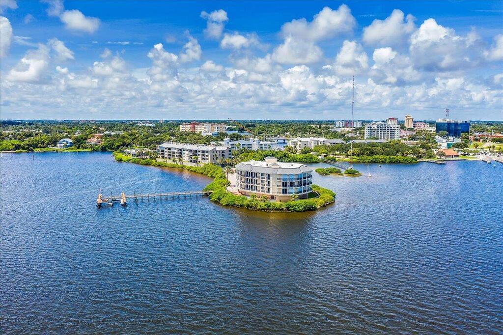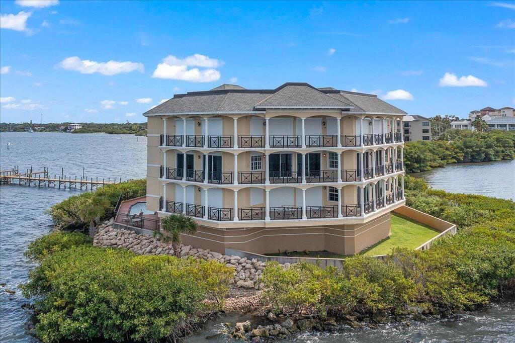 Breathtaking panoramic views of the Intracoastal Waterway in this rarely available luxury 3rd floor condo! Sitting on its very own waterfront peninsula, this private gated 4100 SF, 3 bedroom, 3 1/2 bath property is uniquely located within walking distance to Historic Downtown Melbourne and just minutes to the Beaches. With easterly breezes to your back you can take advantage of the nearly 200' of wrap-around balconies as you watch the sunrise and sunset from nearly every room. Every aspect of this property exudes luxury from the private elevator vestibule, custom gourmet kitchen, extra large living and dining spaces, and a primary bedroom with a huge walk-in closet and dressing area. Additional bedrooms all with en-suite baths and walk-in closets are spacious with high ceilings. Amenities include a 38ft dock with power and water, A beautiful pool overlooking the river and two private garage spaces. With only 6 total units, privacy is paramount! Come and see for yourself!