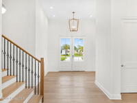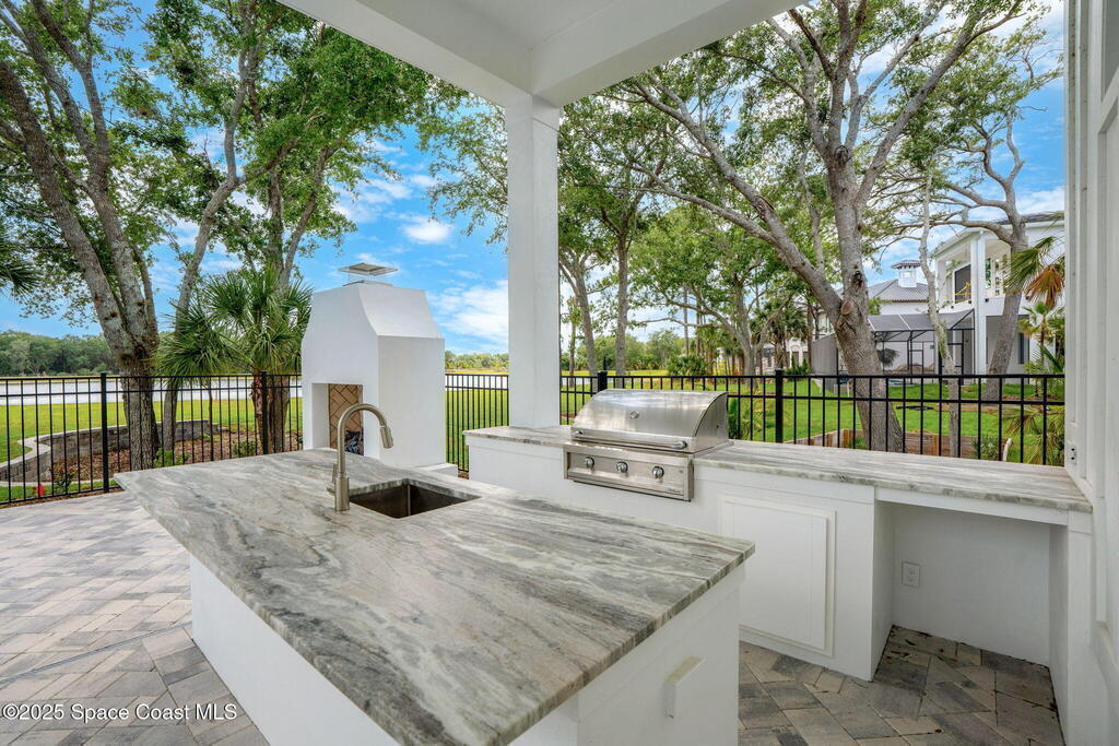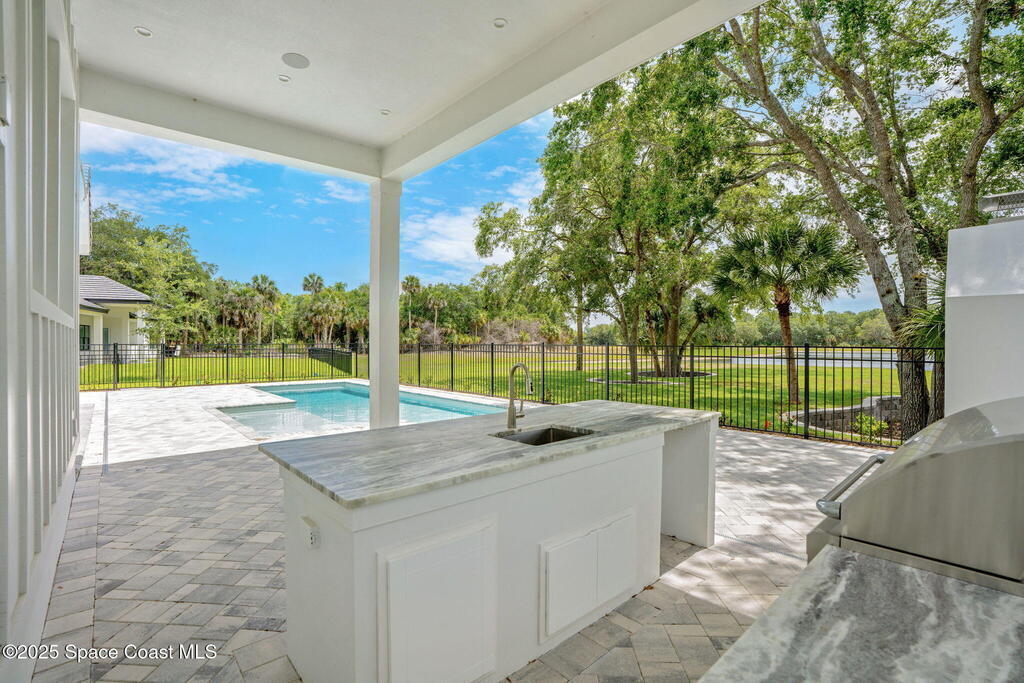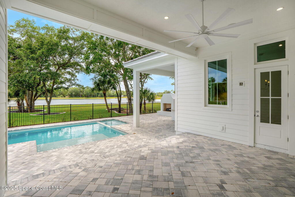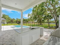 Magnificent New Construction! This Coastal Carolina style home, unlike any other in Viera, boasts 5 bedrooms, 4.5 baths, plus an office, with 4, 069 square feet under air. State of the art finishes throughout, this home exemplifies Coastal Luxury. Sizable front porch beckons southern hospitality and is the perfect space to welcome your guests with a cold lemonade and a light rock in a swing. Chefs kitchen, main living area and dining room all overlook a stunning backyard oasis that includes pool and spa, immense summer kitchen, outdoor gas burning fireplace and lush landscaping that embraces the largest lake in Aripeka, perfect for entertaining! The ground floor boasts the master suite, office, a guest suite with full bath, plus a half bath with access to pool area. Second floor enjoys the family room with a balcony to welcome in a sea breeze, 3 bedrooms and 2 baths. The detached 3 car garage and the home front elevation is adorned with natural gas Coach lighting for added charm.