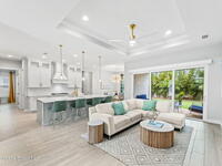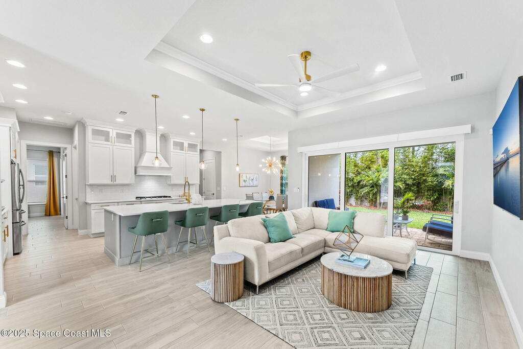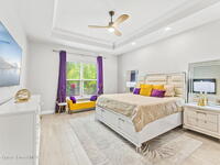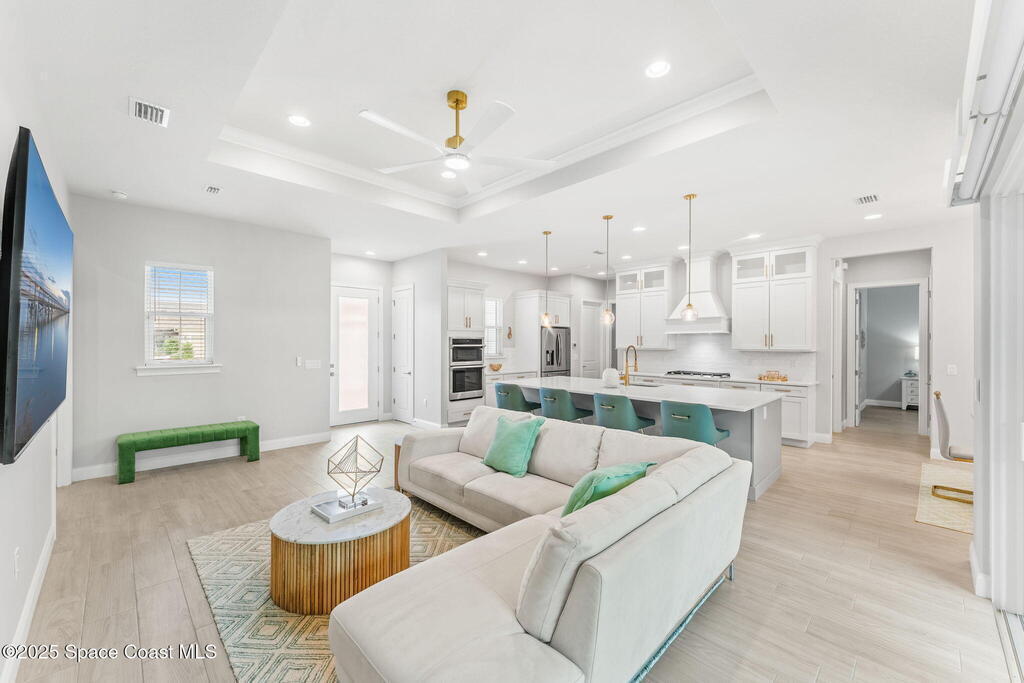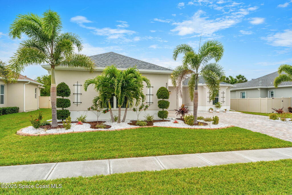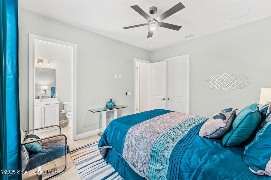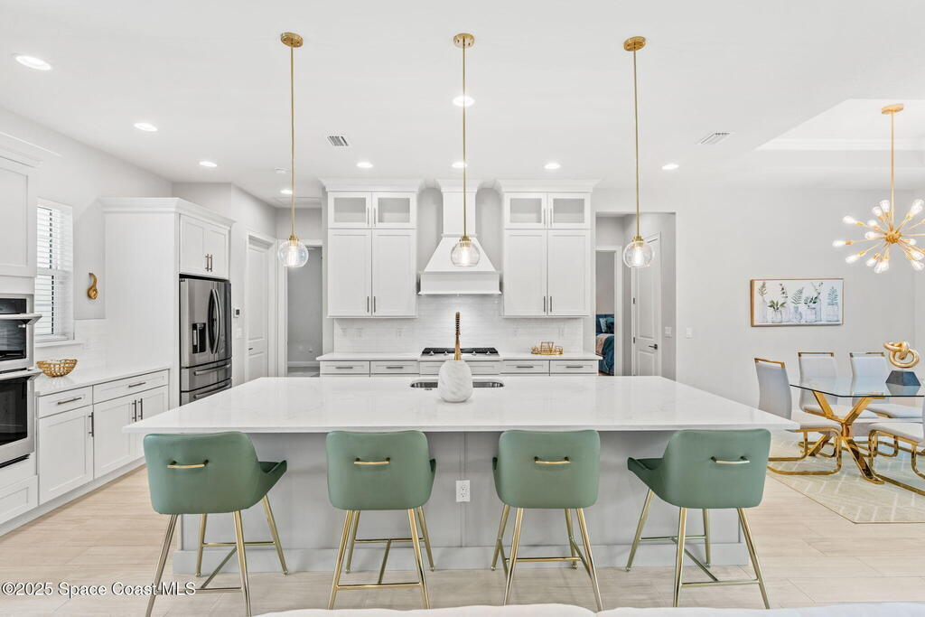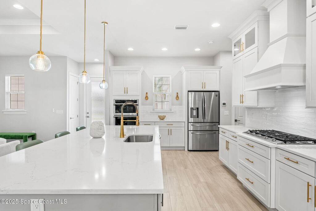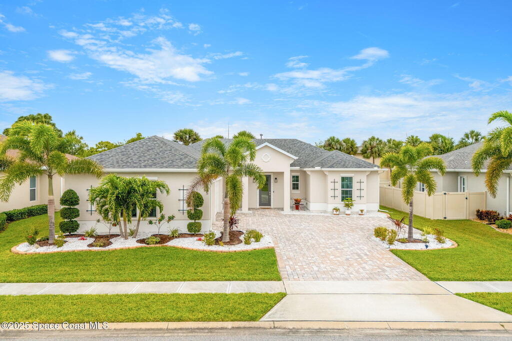 Bold, sleek, and better than new--this 2024 stunner in gated Laguna Village is loaded with upgrades and impossible to ignore. Jaw-dropping curb appeal and professional landscaping make a powerful first impression. Inside, 10-11' ceilings, 8' doors, and a crisp gray-white palette flood the space with light and style. The show-stopping kitchen is dialed in with gas appliances, upgraded cabinetry, and quartz counters. This home boasts a true triple-split floorplan, and each room has it's own ensuite bathroom for the ultimate in luxury, privacy, and convenience. The oversized side-load 3-car garage with EV charger & turnaround driveway adds serious function and flair. Built to impress with high-end finishes and a layout made for modern living. From everyday comfort to effortless entertaining, this home delivers. All in a prime location just minutes to Historic Downtown Melbourne, major employers, hospitals, shopping, dining, and the beach.