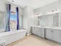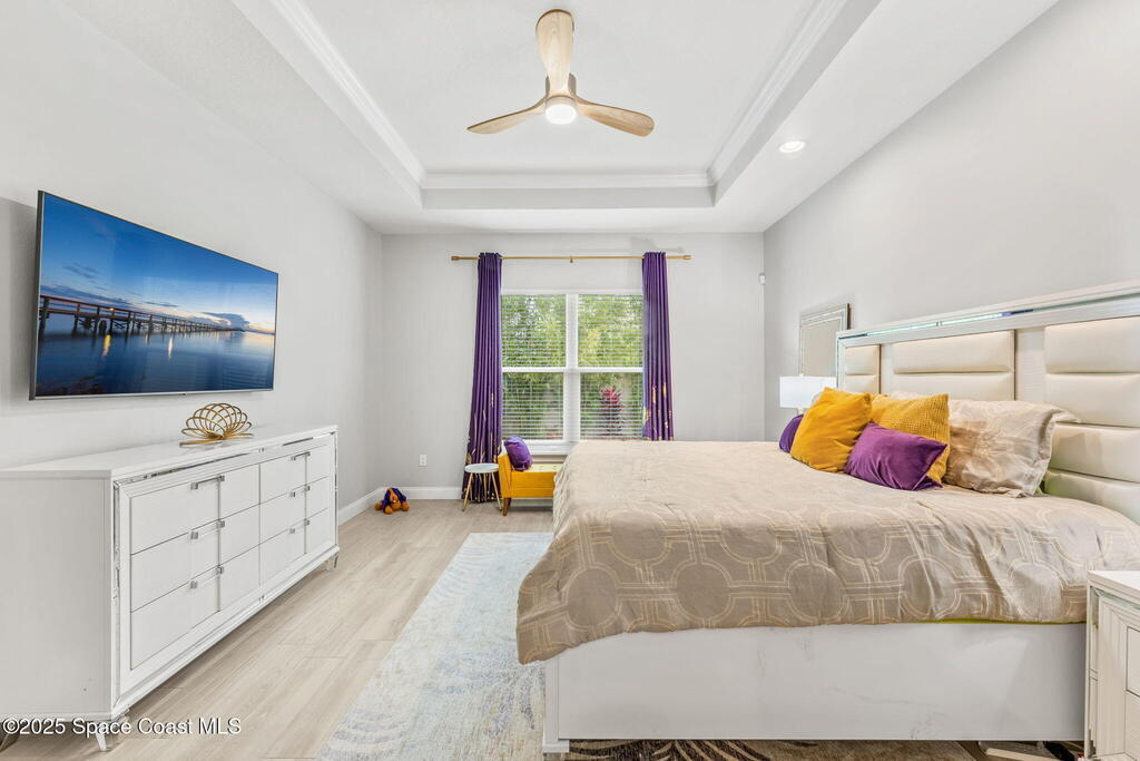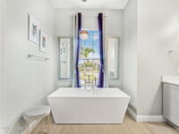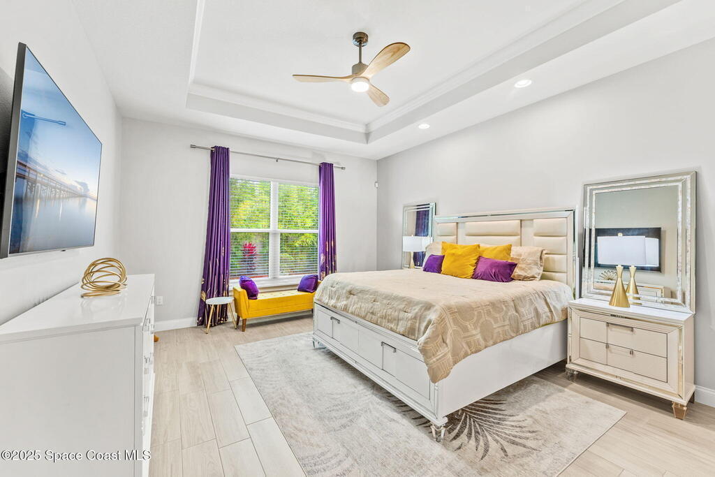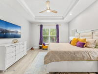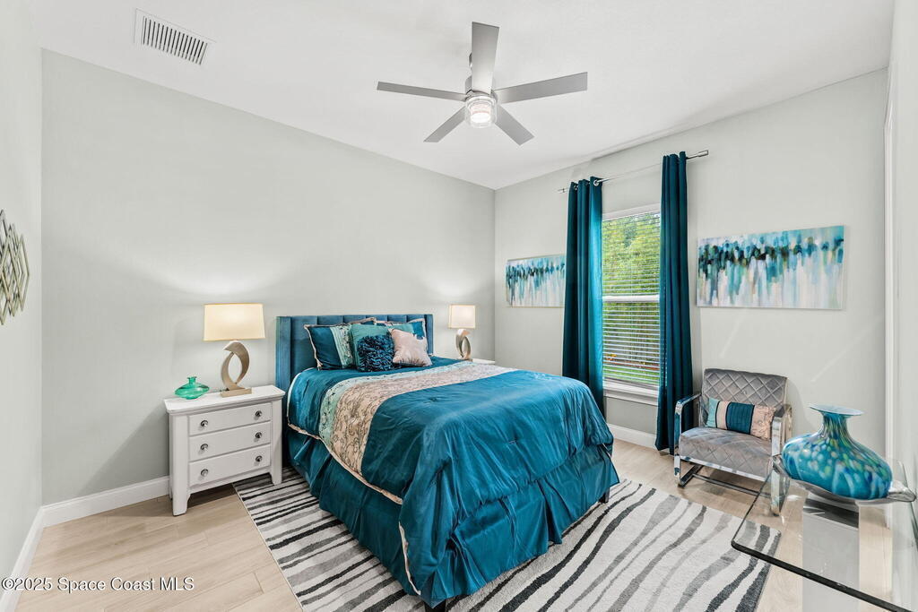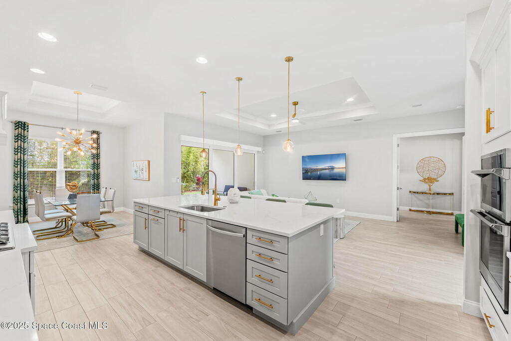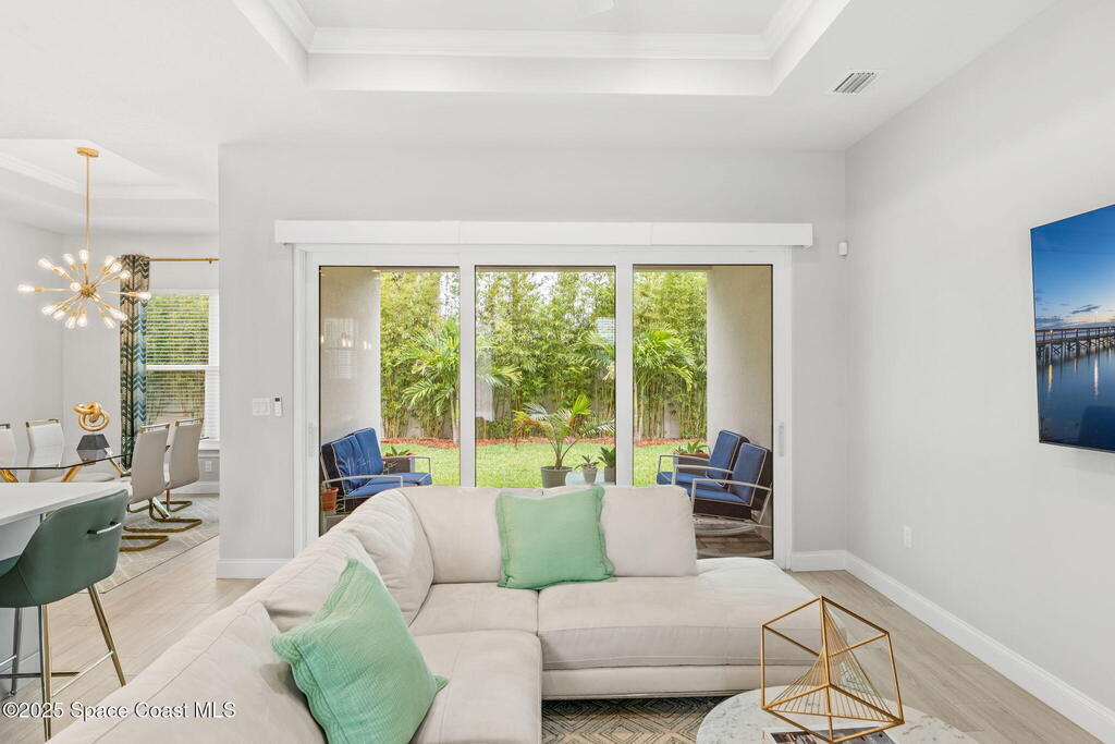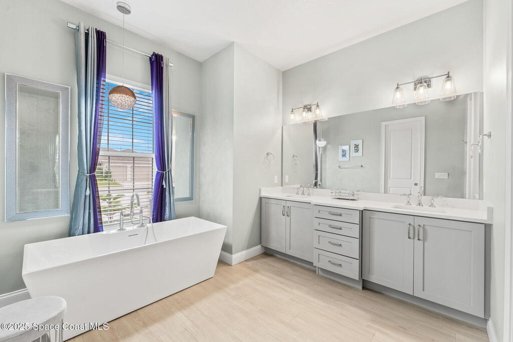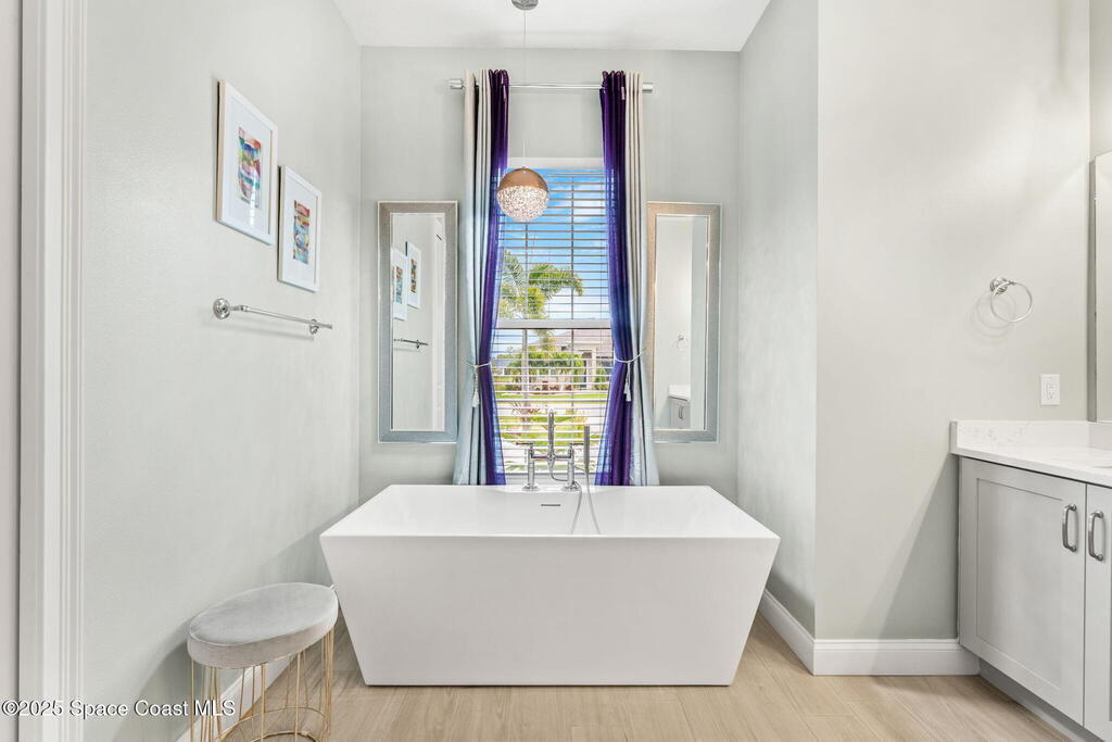Bold, sleek, and better than new--this 2024 stunner in gated Laguna Village is loaded with upgrades and impossible to ignore. Jaw-dropping curb appeal and professional landscaping make a powerful first impression. Inside, 10-11' ceilings, 8' doors, and a crisp gray-white palette flood the space with light and style. The show-stopping kitchen is dialed in with gas appliances, upgraded cabinetry, and quartz counters. This home boasts a true triple-split floorplan, and each room has it's own ensuite bathroom for the ultimate in luxury, privacy, and convenience. The oversized side-load 3-car garage with EV charger & turnaround driveway adds serious function and flair. Built to impress with high-end finishes and a layout made for modern living. From everyday comfort to effortless entertaining, this home delivers. All in a prime location just minutes to Historic Downtown Melbourne, major employers, hospitals, shopping, dining, and the beach.