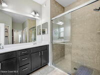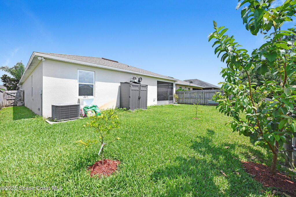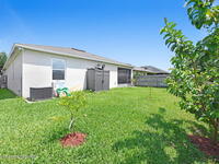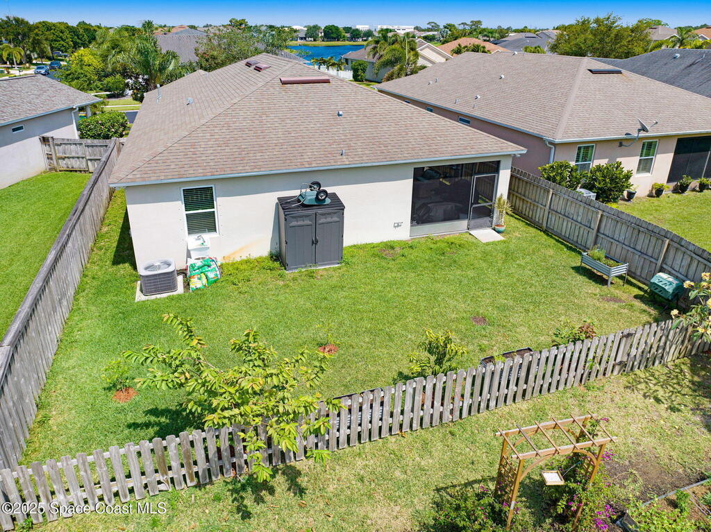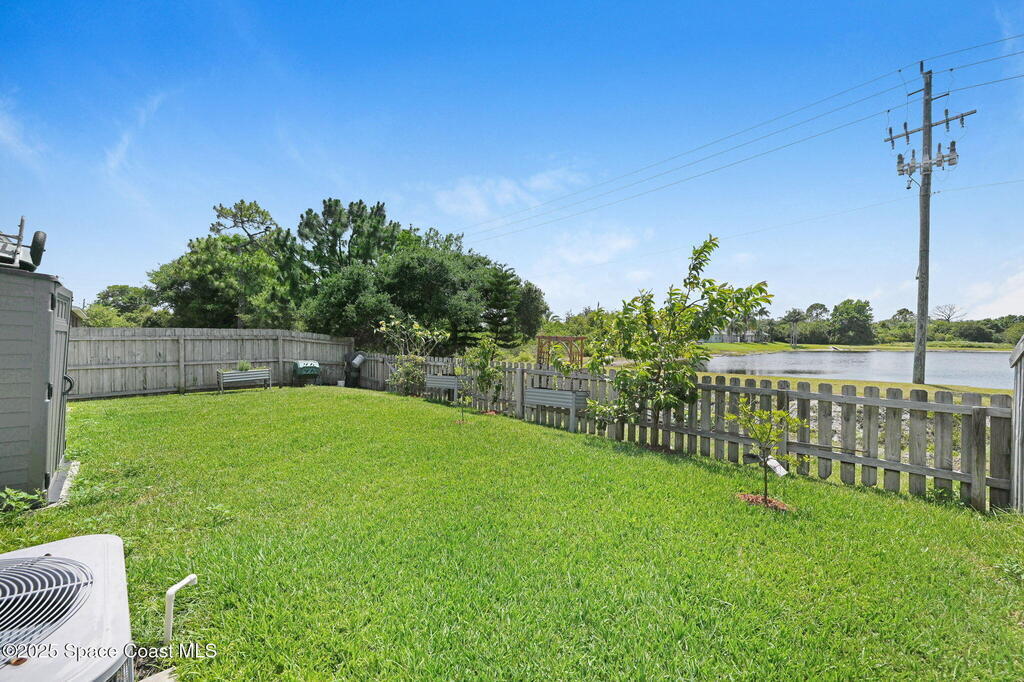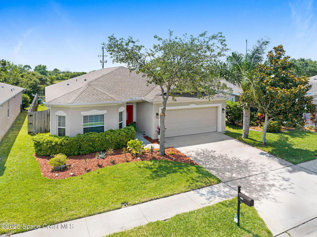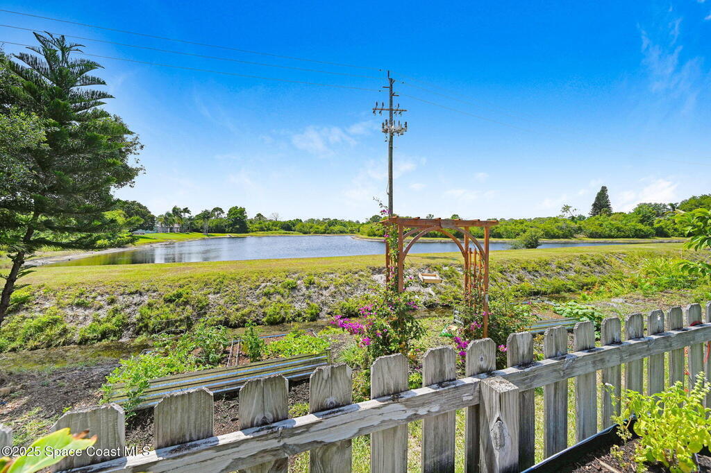 Looking to relocate, downsize or buy your first home? This immaculate 4 bed/2bath home in a gated community is designed for easy living, with a stunning, large updated kitchen, open and airy floor plan and an EV charger already installed in the two car garage. Step outside to a charming backyard garden with fruit trees, tomatoes, avocados and serene lake view or take a stroll to the community pool or local restaurants. This home is the perfect package combining comfort, convenience and location. Just minutes from Florida beaches and Patrick Space Force Base! New 2025 AC, Roof 2013, approx. 2022 Tankless Water Heater.