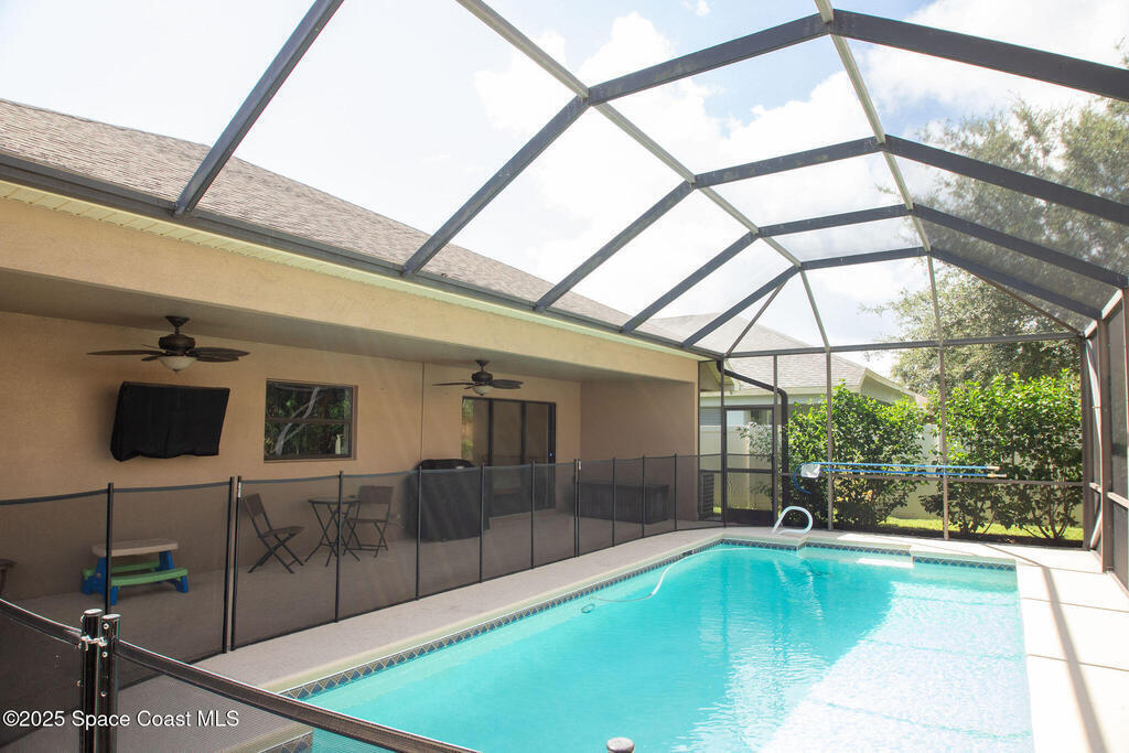 This 4/2 gem with a bonus room is on a corner lot with screened in salt system (2023) pool and enough room for an outdoor furniture set.Gutters added (2022) for quality drainage.Hawaiian inspired landscaping with mature plumerias and exterior is freshly painted (2025).New flooring (2025), new A/C (2025), stainless steel appliances including a new dishwasher (2024), new washer and dryer (2021).Granite countertops, pantry and freshly painted inside with lots of natural light. Walk to park and beautiful community pool down the street. Super location--in the middle of all the action of Viera not as far as the West Viera new builds.Just 15 minutes to the beach and 10 minutes to Cocoa Village(restaurants, bars, events, parks).Only 2.2 miles from upcoming Whole Foods, 4.7 miles to the Avenue with upcoming Trader Joes, 6.8 miles to Sprouts + EOS fitness and 4.3 miles to Viera High and Viera Regional Fields. This has been a well-loved, nontoxic cleaned family home and is ready for the next buyer.