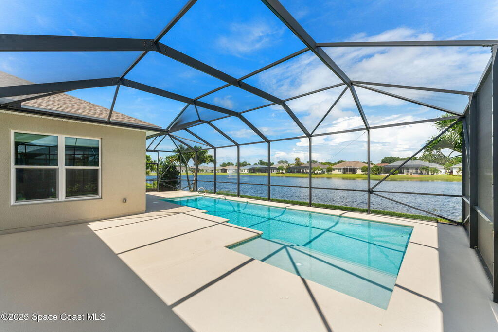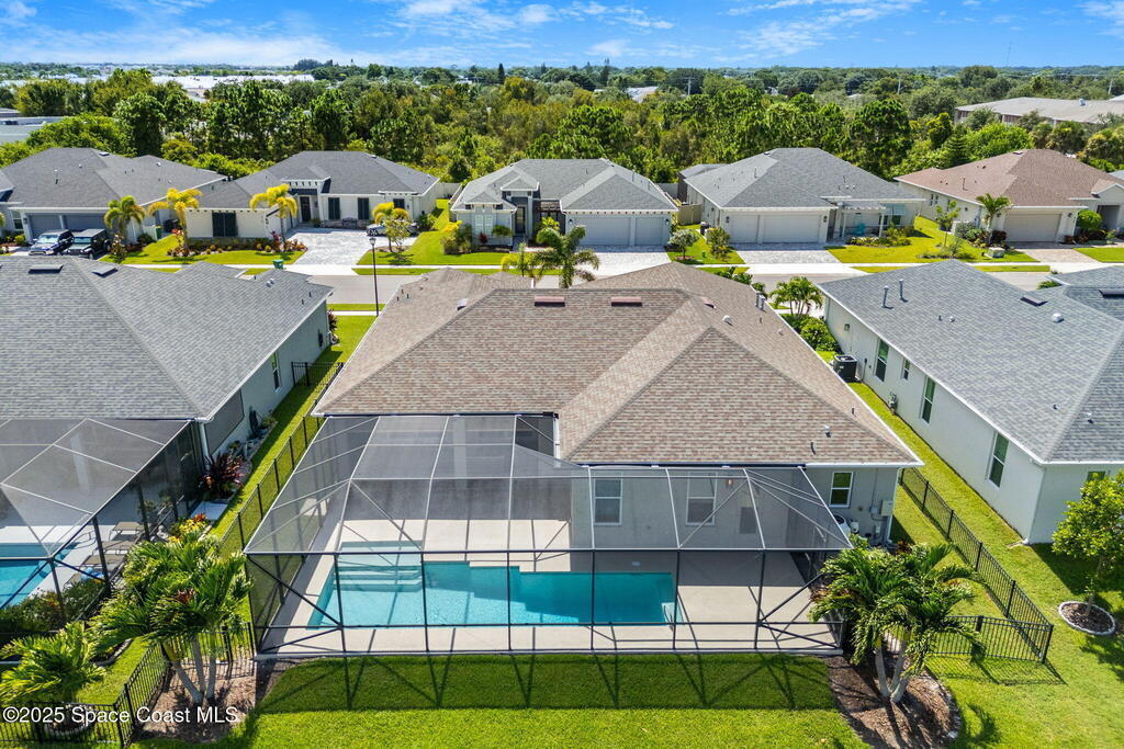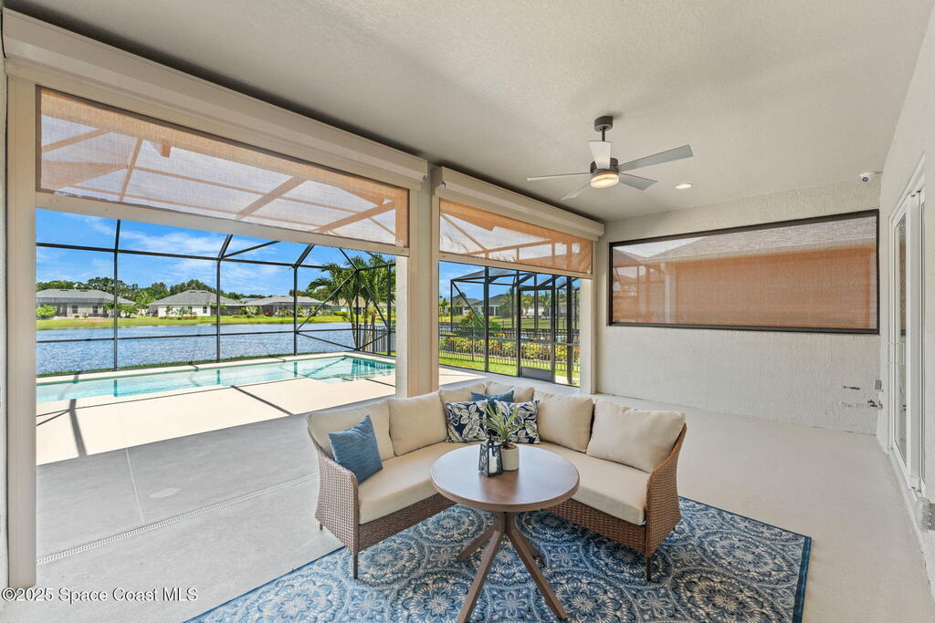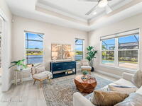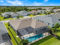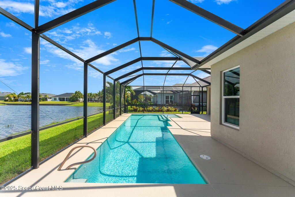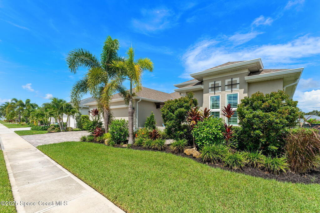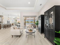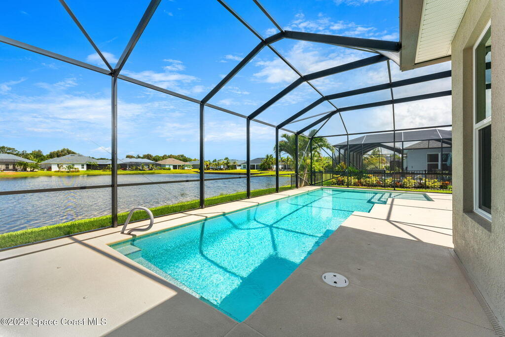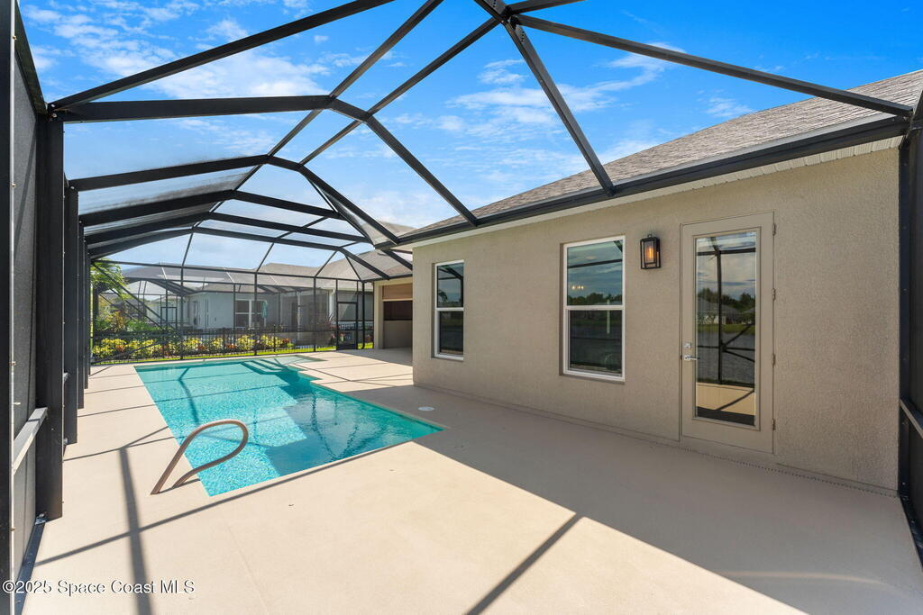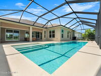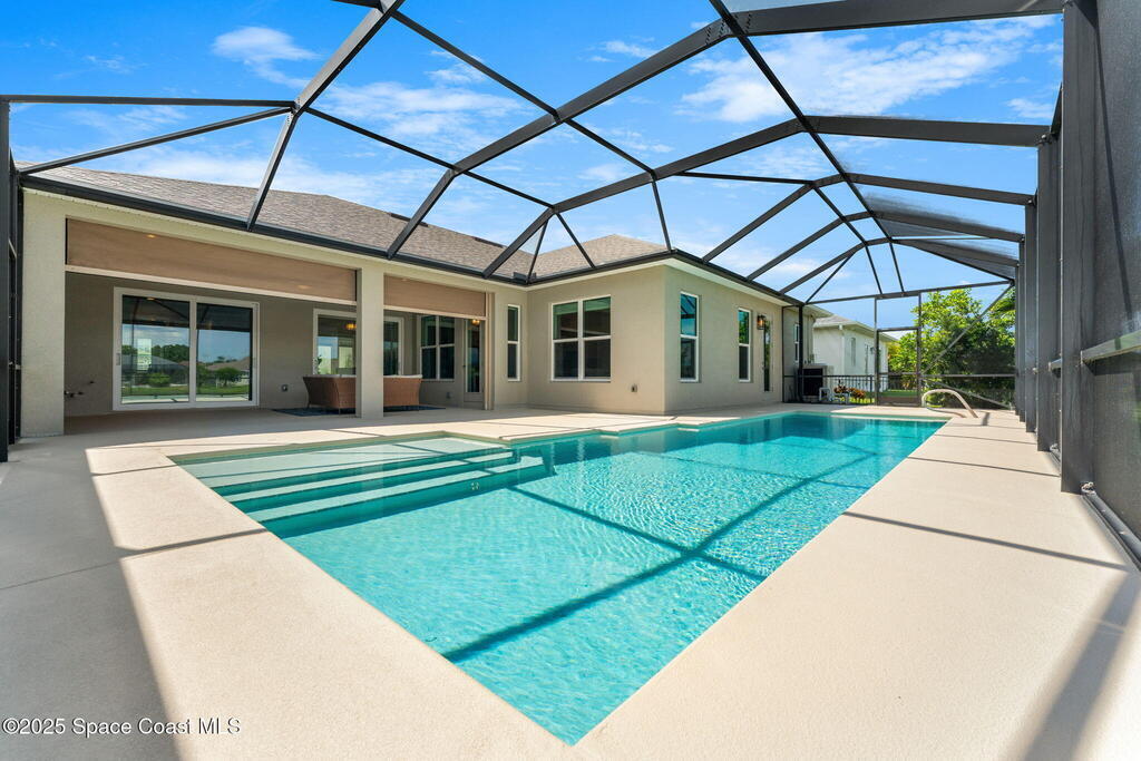 Welcome to this stunning 4-bedroom, 3-bathroom split-plan home where contemporary design meets everyday luxury. Soaring 10' ceilings and an open-concept layout create a bright, airy atmosphere perfect for entertaining or relaxing. The chef's kitchen features a spacious island, high-end finishes, and ample storage. Hunter Douglas cellular window coverings add style and efficiency, while impact-resistant glass windows offer peace of mind. The expansive primary suite boasts his-and-hers walk-in closets, dual vanities, a spa-like walk-in shower, and a soaking tub. Step outside to your private retreat--a screened lanai with retractable hurricane protection shades and an extended-length pool ideal for Florida living. Additional highlights include a 3-car garage, whole-house central vacuum system, and prime location near shopping, schools, dining, I-95, and the beaches.