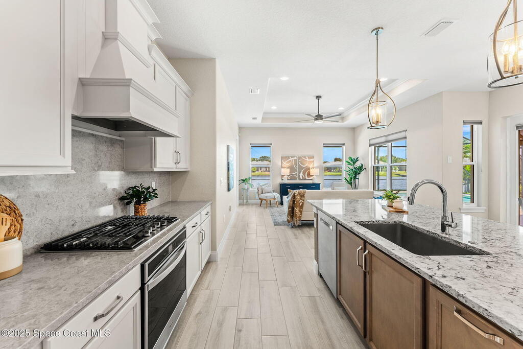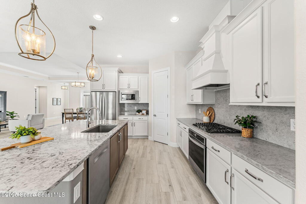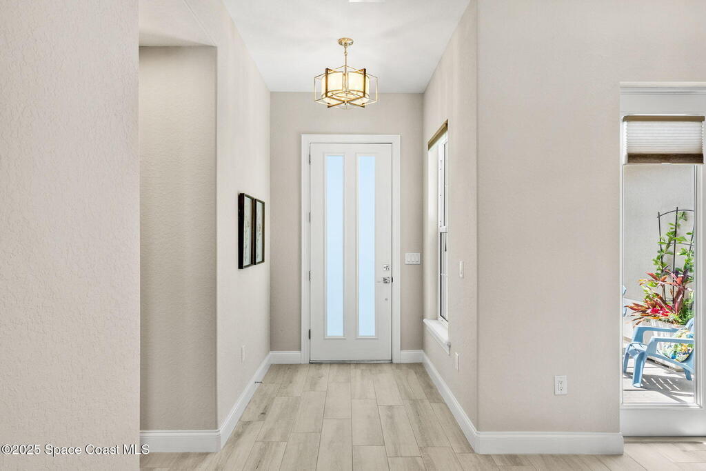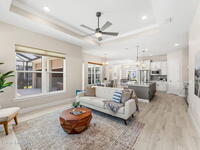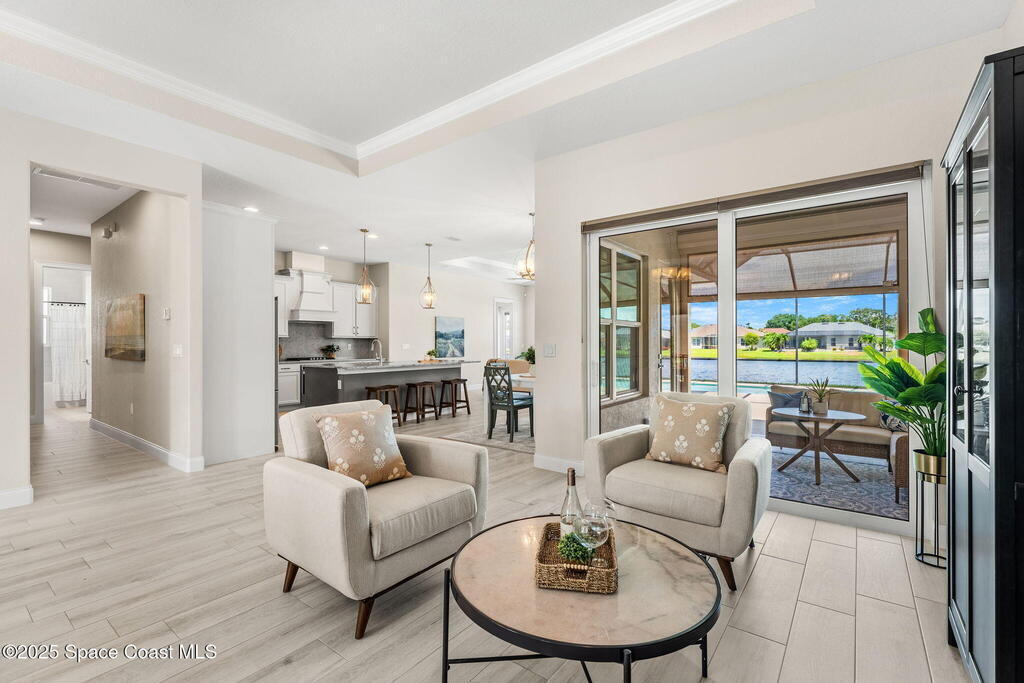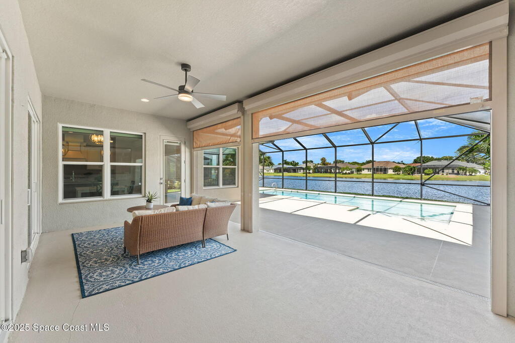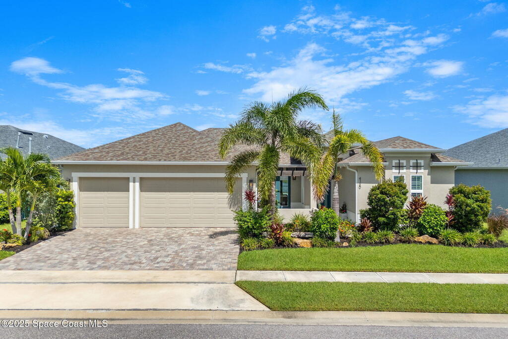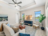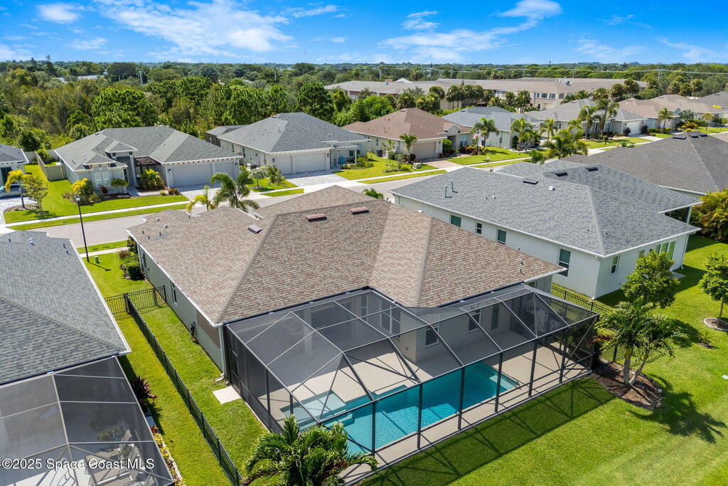 Welcome to this stunning 4-bedroom, 3-bathroom split-plan home where contemporary design meets everyday luxury. Soaring 10' ceilings and an open-concept layout create a bright, airy atmosphere perfect for entertaining or relaxing. The chef's kitchen features a spacious island, high-end finishes, and ample storage. Hunter Douglas cellular window coverings add style and efficiency, while impact-resistant glass windows offer peace of mind. The expansive primary suite boasts his-and-hers walk-in closets, dual vanities, a spa-like walk-in shower, and a soaking tub. Step outside to your private retreat--a screened lanai with retractable hurricane protection shades and an extended-length pool ideal for Florida living. Additional highlights include a 3-car garage, whole-house central vacuum system, and prime location near shopping, schools, dining, I-95, and the beaches.