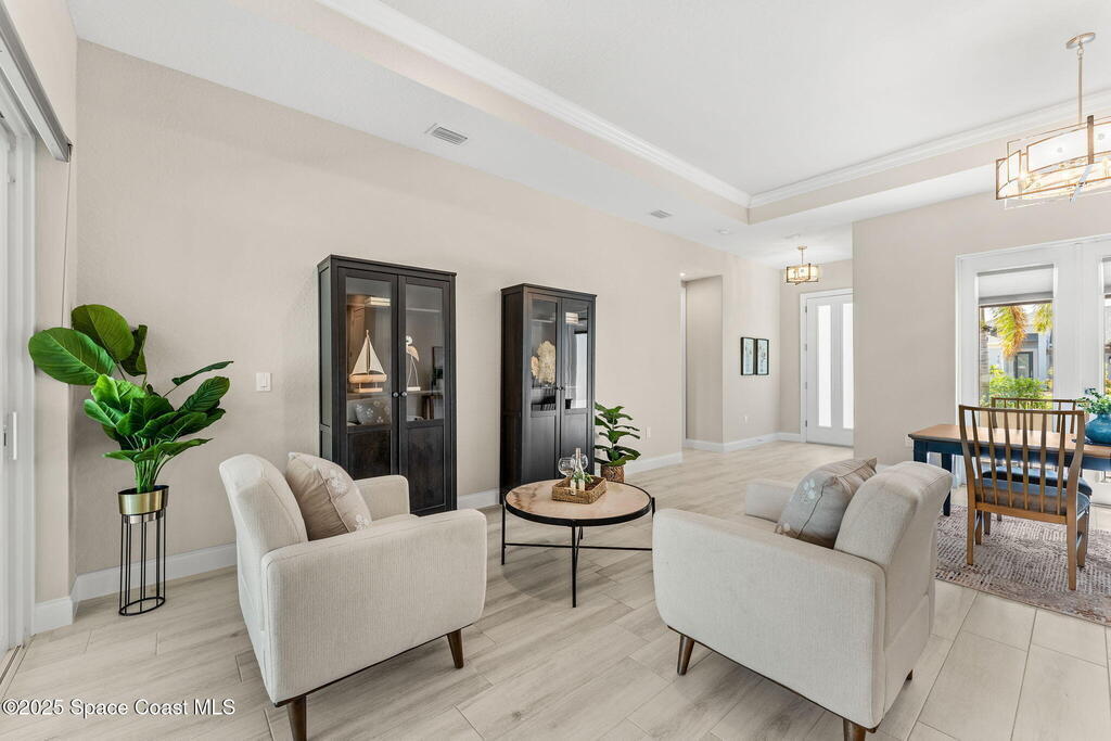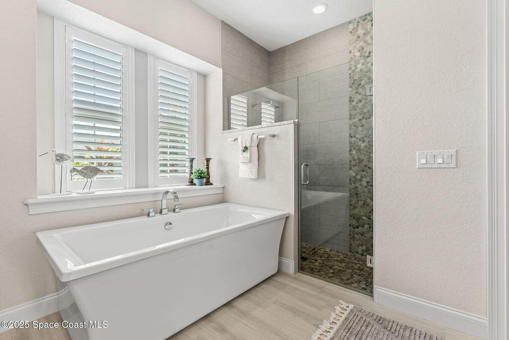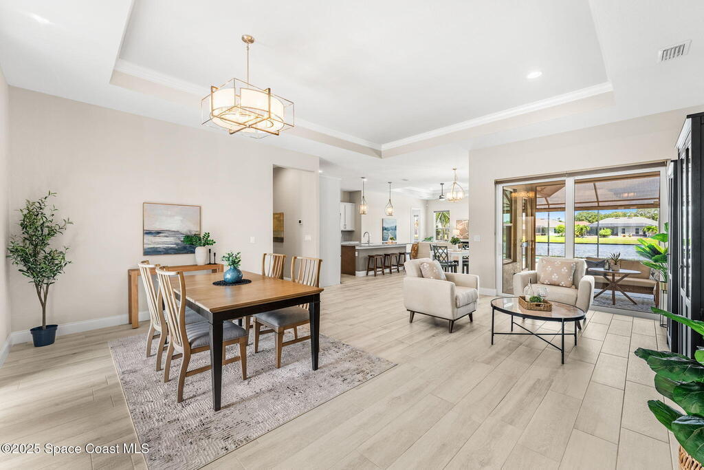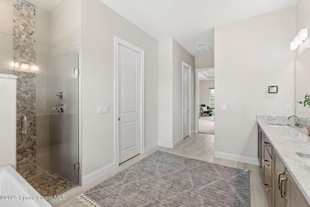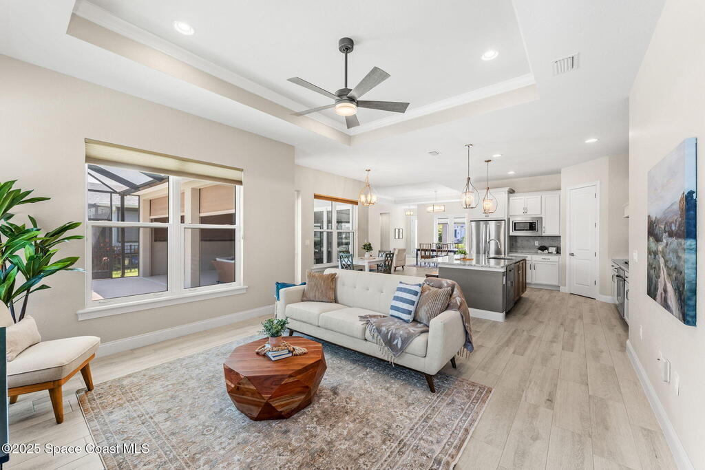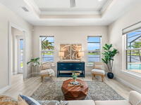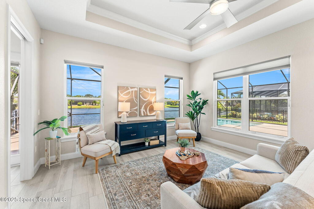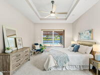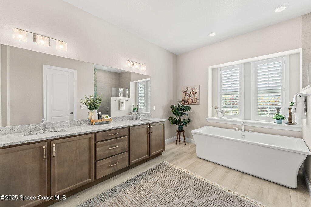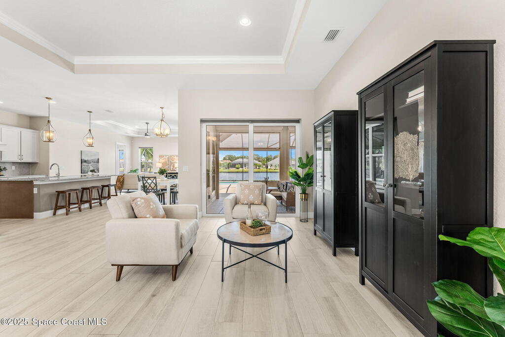 Welcome to this stunning 4-bedroom, 3-bathroom split-plan home where contemporary design meets everyday luxury. Soaring 10' ceilings and an open-concept layout create a bright, airy atmosphere perfect for entertaining or relaxing. The chef's kitchen features a spacious island, high-end finishes, and ample storage. Hunter Douglas cellular window coverings add style and efficiency, while impact-resistant glass windows offer peace of mind. The expansive primary suite boasts his-and-hers walk-in closets, dual vanities, a spa-like walk-in shower, and a soaking tub. Step outside to your private retreat--a screened lanai with retractable hurricane protection shades and an extended-length pool ideal for Florida living. Additional highlights include a 3-car garage, whole-house central vacuum system, and prime location near shopping, schools, dining, I-95, and the beaches.
