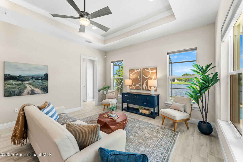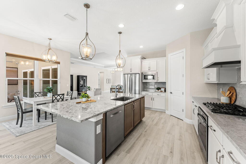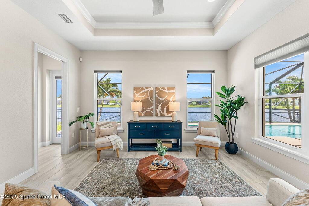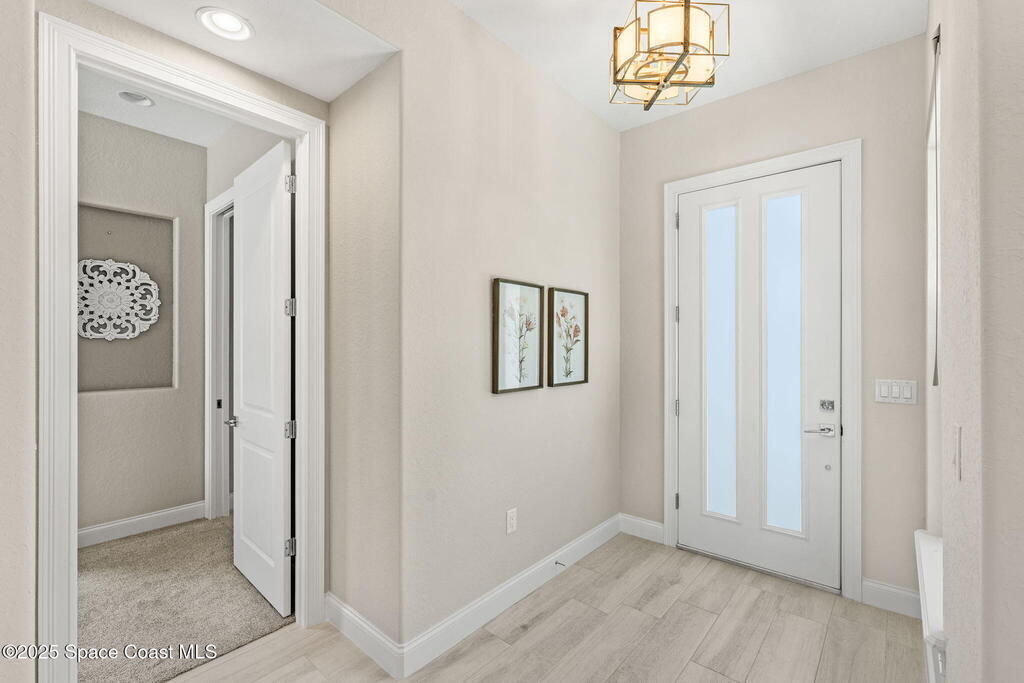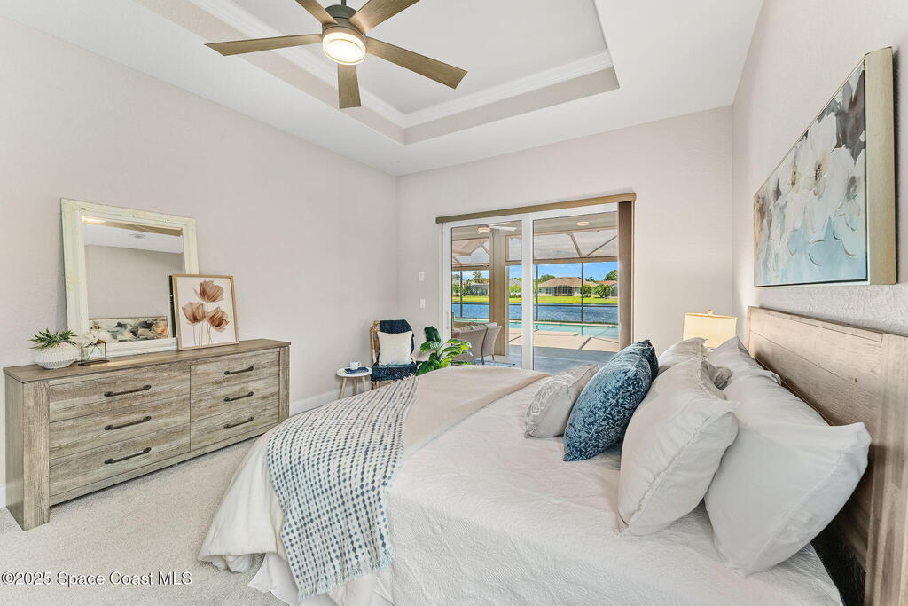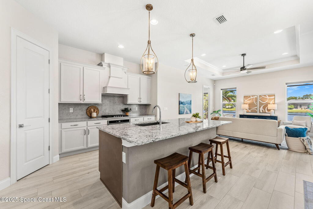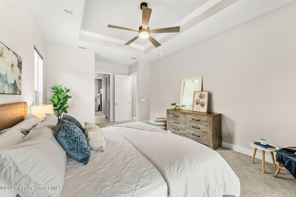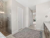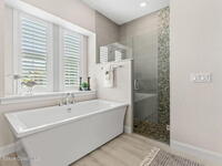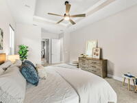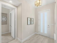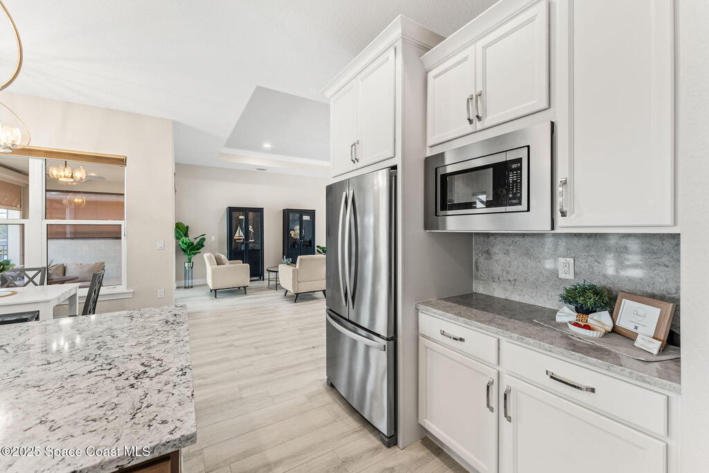 Welcome to this stunning 4-bedroom, 3-bathroom split-plan home where contemporary design meets everyday luxury. Soaring 10' ceilings and an open-concept layout create a bright, airy atmosphere perfect for entertaining or relaxing. The chef's kitchen features a spacious island, high-end finishes, and ample storage. Hunter Douglas cellular window coverings add style and efficiency, while impact-resistant glass windows offer peace of mind. The expansive primary suite boasts his-and-hers walk-in closets, dual vanities, a spa-like walk-in shower, and a soaking tub. Step outside to your private retreat--a screened lanai with retractable hurricane protection shades and an extended-length pool ideal for Florida living. Additional highlights include a 3-car garage, whole-house central vacuum system, and prime location near shopping, schools, dining, I-95, and the beaches.