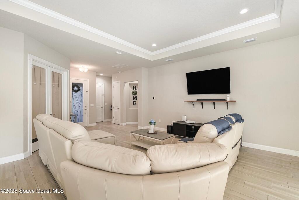 Welcome to the epitome of elegance and modern comfort. Nestled in a sought-after, builder-exclusive community, this meticulously crafted custom Ventura model home is designed to impress from the moment you step inside. The home radiates sophistication with its bright and open layout, offering both style and functionality for discerning homeowners. ✨ Interior Highlights 51/4'' baseboards bring a subtle touch of craftsmanship that frames every room beautifully. Architectural Excellence Soaring 10-foot ceilings throughout the home enhance the sense of spaciousness. Trey ceilings in both the Master Suite and Grand Room add a layer of architectural charm and depth. This home doesn't just meet expectations--it exceeds them. From its refined finishes to its thoughtful layout, every detail has been carefully curated to deliver comfort, beauty, and enduring value.