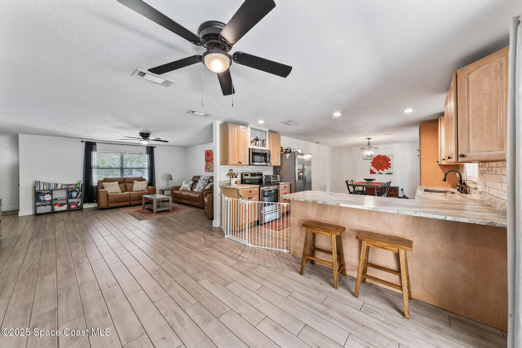 Welcome to your perfectly renovated pool home featuring a nice spacious layout with a large yard and side gate access ideal for a boat or RV parking. Bright and inviting living/dining areas flow seamlessly into a large kitchen with breakfast bar, eat-in space, stainless steel appliances and ample cabinetry. The split floor plan provides direct pool access from the master suite, which includes an updated ensuite bathroom. While a newly installed sprinkler system keeps the landscaping lush year-round. Outdoor living is made easy with an oversized pool, covered lanai, enclosed Florida room and a large fenced backyard. Close to Downtown Melbourne, FIT, shopping, and beaches, this home combines style, comfort, and convenience in a desirable neighborhood.Roof 2018/ HVAC 2021