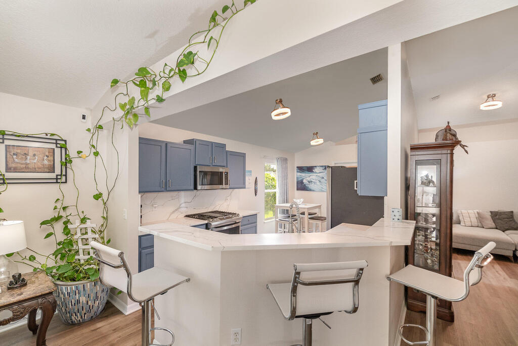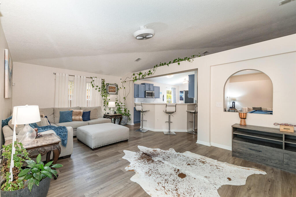 Solar panels for low electric energy efficiency. Community is gated with community pool. Lots of updates within the past years. New luxury vinyl throughout kitchen, bathrooms, laundry room, formal areas & family room. Updated the kitchen with quartz counter tops, stainless steel appliances & added gas for range. Breakfast bar off the family room and wraps around into formal area plus there is a breakfast nook in kitchen. Upgraded bathrooms with quartz counter tops & new toilets. New light fixtures & new laundry room door. Continue out to your new fenced in backyard with paver patio. Screened in front entry & screen sliders on the garage. Roof 2022, A/C added in 2020, Water Heater 2020. Popcorn ceilings removed.