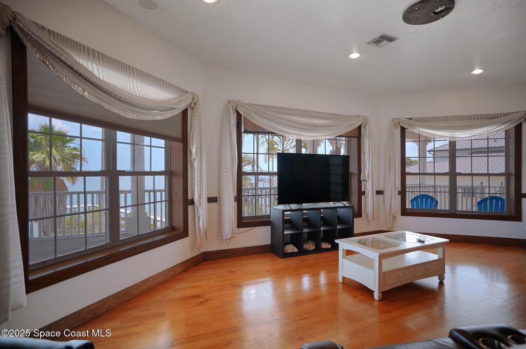 Discover the ultimate waterfront estate on the Indian River, blending luxury and versatility across three stories. Expansive 8-bedroom, 7-bath home features 2 private suites on the first floor w/ multiple kitchens, perfect for multi-generational living or entertaining. Grand great room and gourmet kitchen with massive island flood the space with natural light + river views. Solid oak cabinetry and floors. Primary suite boasts a large bathtub + separate shower, while the 3rd floor offers 3, 000 sq ft of customizable space--ideal for a primary retreat or office. A wrap-around balcony provides breathtaking vistas and seamless indoor-outdoor living. Situated on over an acre w/ 135 ft of river front. Enjoy outdoor kitchens, a heated pool, and ample parking in the attached and detached garages. Conveniently located near beaches, I-95, Patrick Space Force Base, Viera shops and fine dining, this estate offers a serene lifestyle. Third floor is not furnished. Pets considered on case base basis.