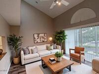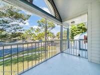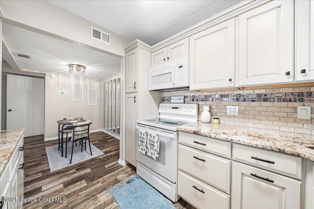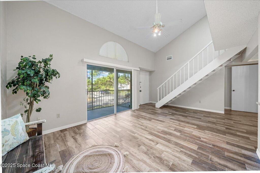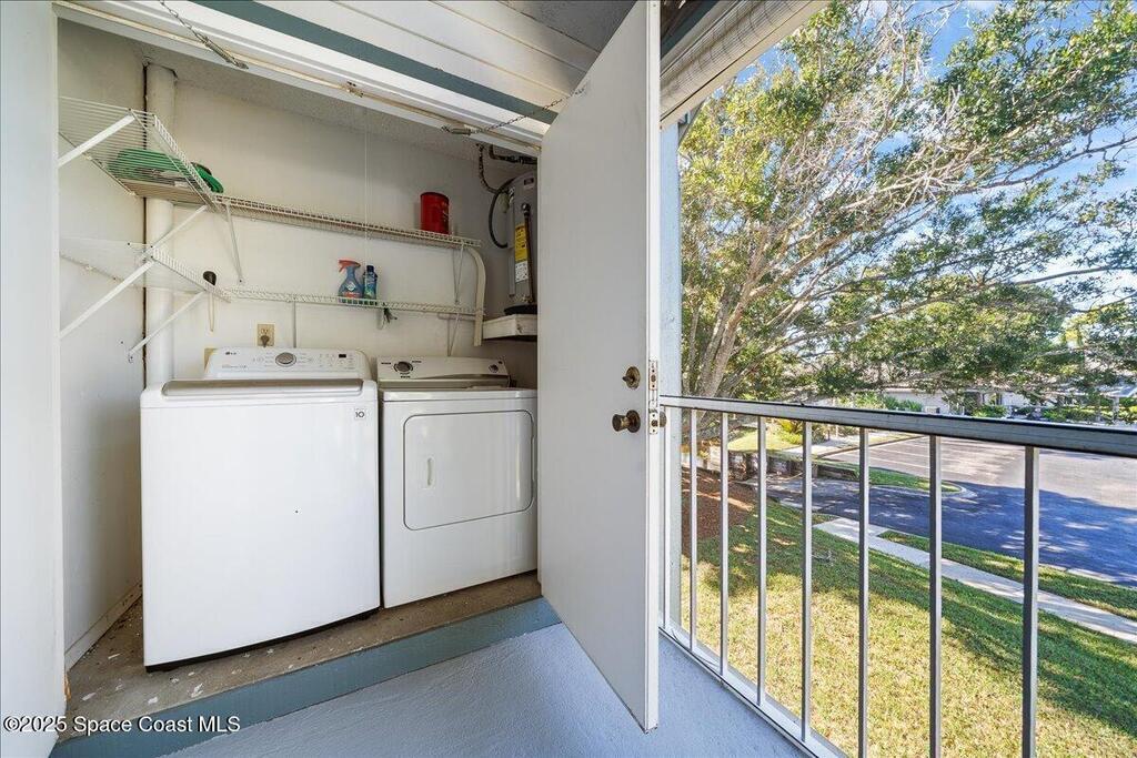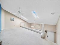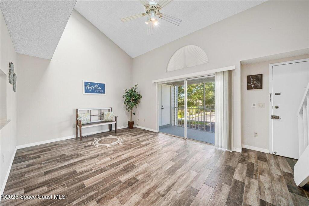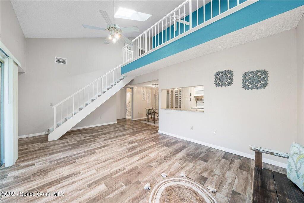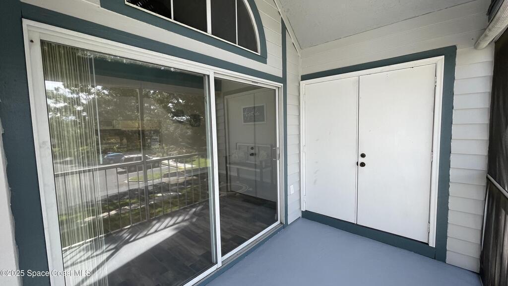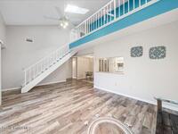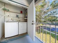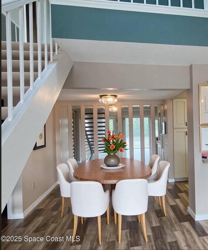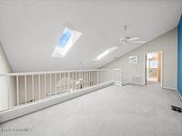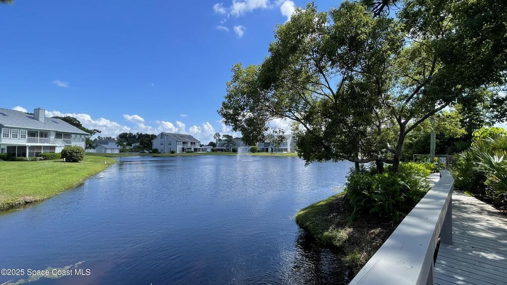Perfect Location for easy access to I-95 , shopping, parks, downtown Melbourne & a short drive to area beautiful beaches. Welcome home to this ''move in ready condo'' (end unit) on 2nd level. Featuring an open plan design with family room, dining area, and newly updated kitchen with designer coastal color cabinets, granite countertops, tile backsplash and wood look tile flooring. Main bedroom just off dining room with private bathroom and walk in closet. A quaint screened in front balcony has views of lake and faces community clubhouse / pool / tennis courts area. Access to laundry space is just off the balcony. Spacious Loft area can be used as 2nd bedroom, office or Flex space. Full bathroom just off the loft. Other features include: ceiling fans, window coverings, sky-lights, decorative mirror in dining area & storm door at entry. HOA includes: water, cable, i-net, roof, exterior paint. New A/C 2024 & breaker box with surge protector .