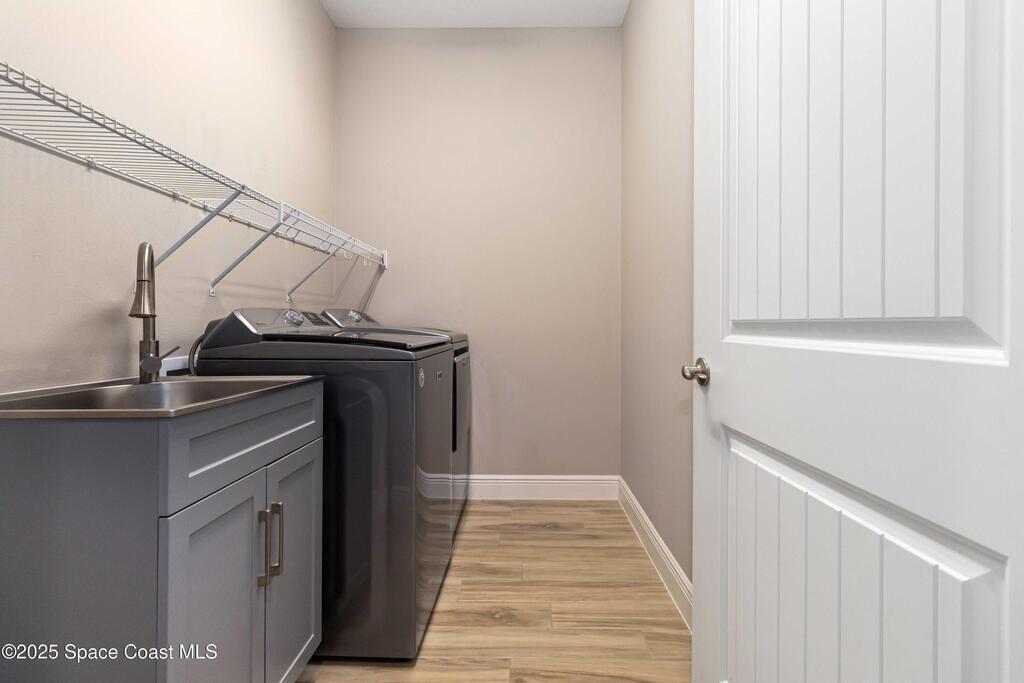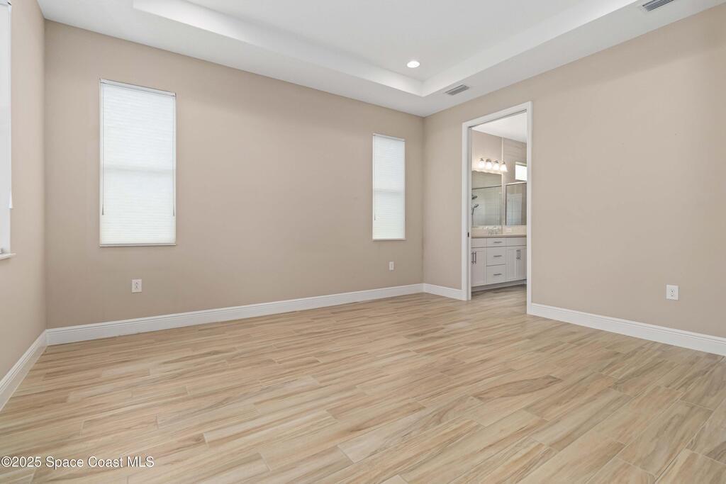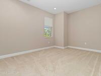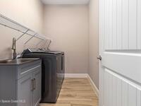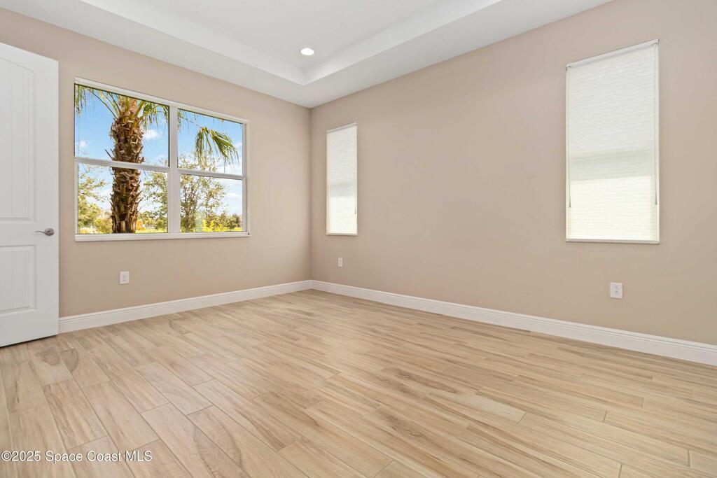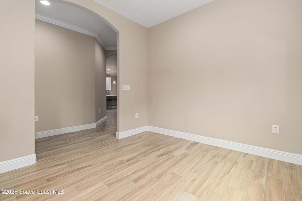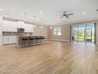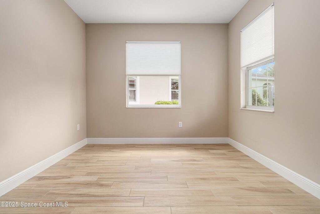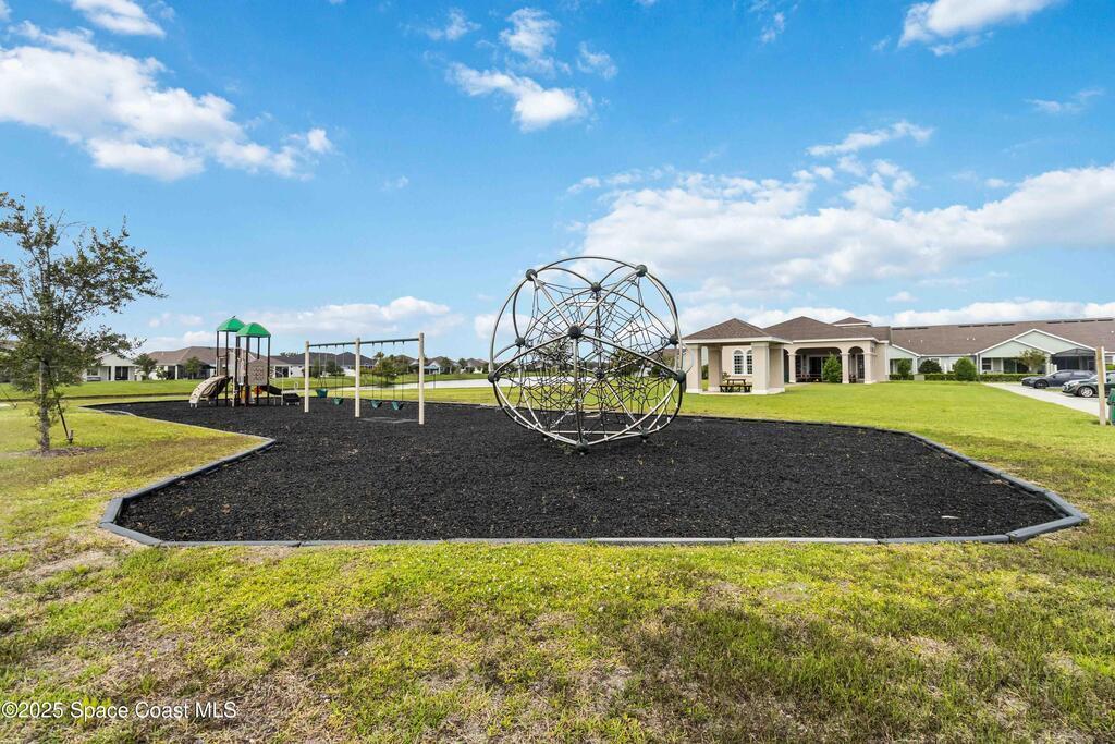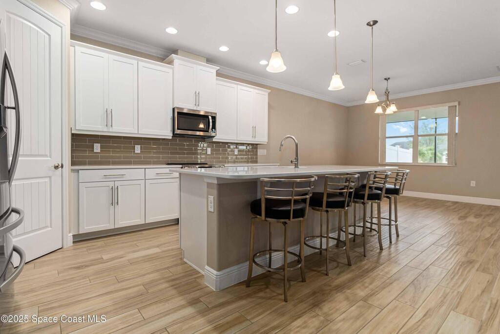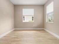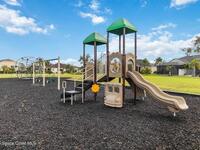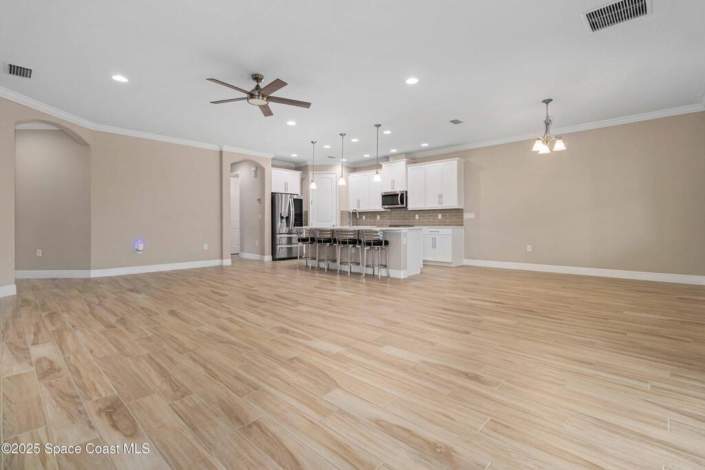 Welcome Home! This thoughtfully designed home offers modern upgrades such as high quality wood-look tile flooring, stylish lighting & crown molding. The open floor plan has 2 bedrooms PLUS office/den & spacious living room that flows seamlessly into the chef-inspired kitchen & dining room. Light & bright kitchen boasts quartz countertops, tile backsplash, pantry, large island/breakfast bar, stainless appliances (including new LG ThinQ fridge), an ideal space for entertaining. Owners suite w/en suite bath features double vanity & walk-in tiled shower. Triple sliders open to the brick paver, screened-in patio w/serene WATER VIEW & large yard. Waterview from front porch provides additional privacy. Living here is truly maintenance free, giving you more time to enjoy the resort-style amenities! This home offers comfort, convenience & community. Conveniently located near shopping, dining, movies, hospital, 20 min to beaches, 40 min to KSC, NASA, SpaceX, Blue Origin, 45 min to Orlando!