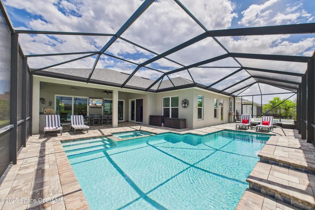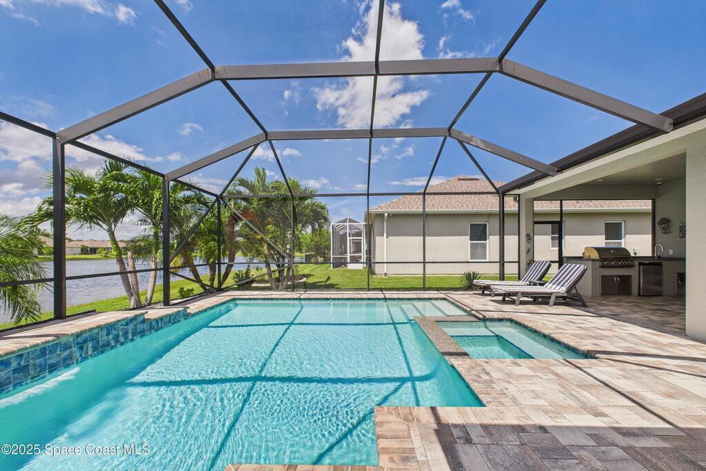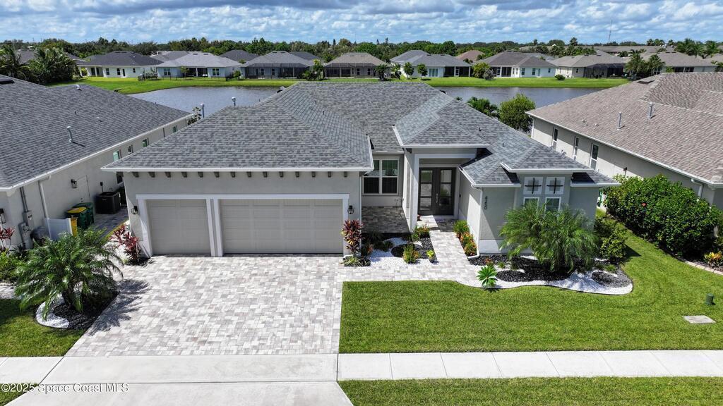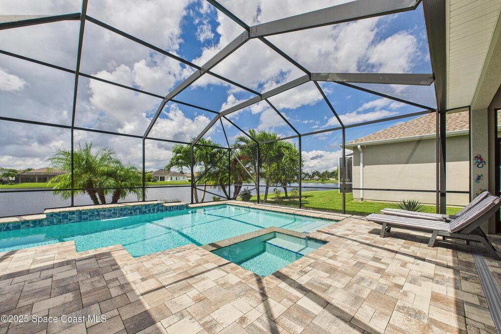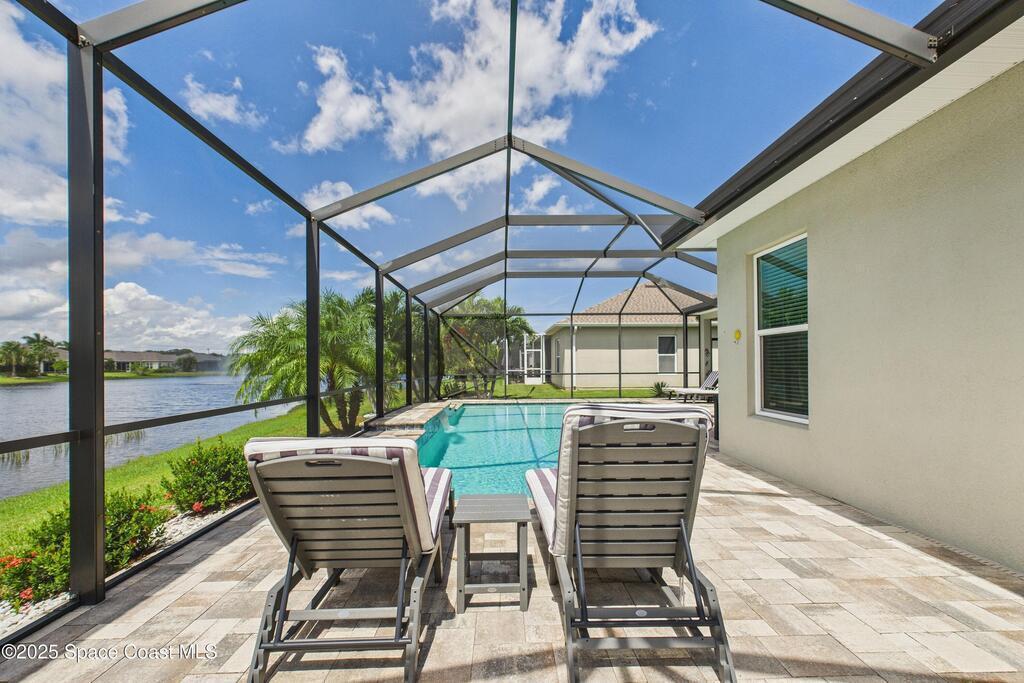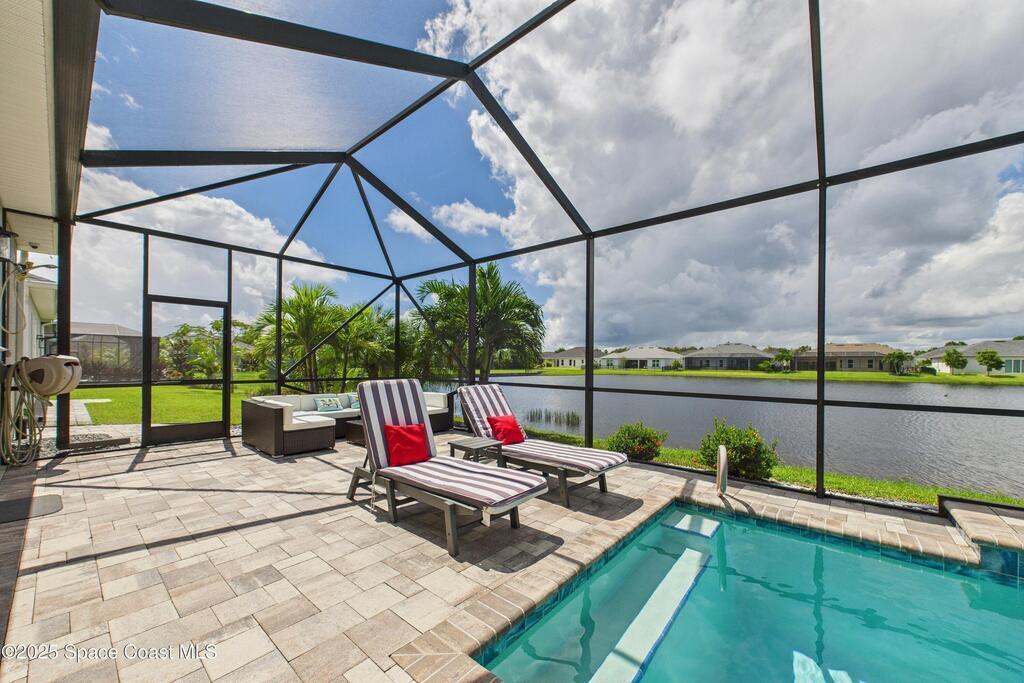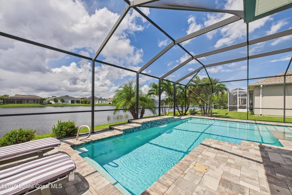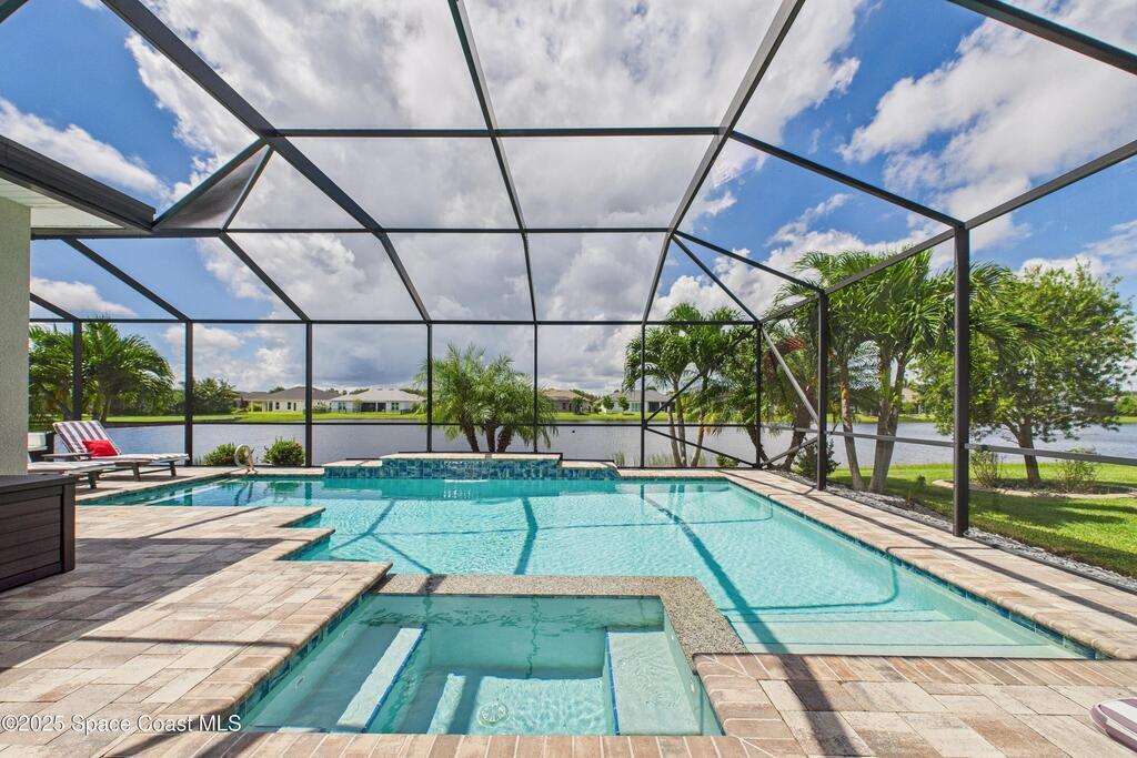 Upgrades galore in this immaculate, custom built home! As you walk through the double door entry you are greeted by the gleaming porcelain floors and a wonderful open floor plan. From the custom wet bar and buffet with wine fridge, to the stylish gas fireplace and chef's kitchen, this home was built for entertaining. A whole home sound system and tray ceilings add to the upscale feeling. Invite your guests outside to the gas heated pool and spa with salt system and intelligent controls. Have a glass of wine or cup of coffee as you enjoy your lake view with beautiful sunsets from your spacious paver pool deck. A whole home gas generator and hurricane impact windows insure your comfort through the storms of life. With an unbeatable location, you are just minutes to the beach and downtown Melbourne, and only about an hour to the Orlando airport. There is no shortage of storage in the oversized, epoxy coated garage, and you can even store a 4th car with the included lift!