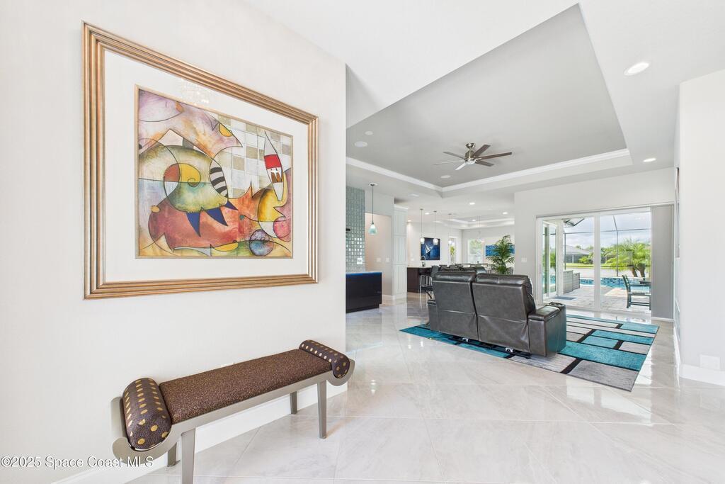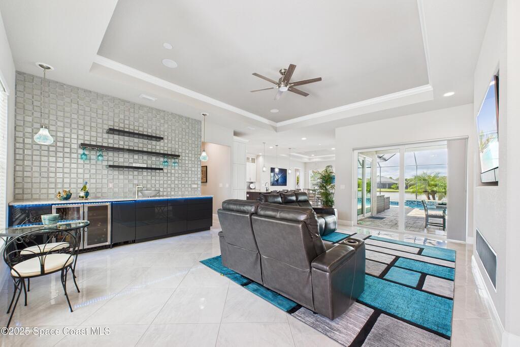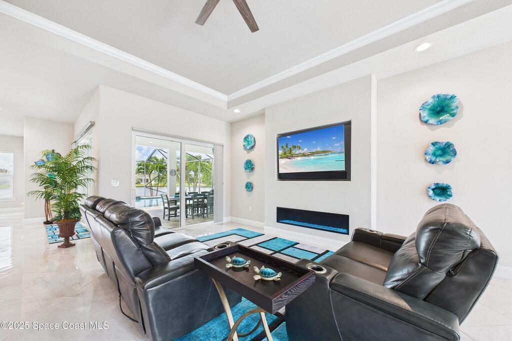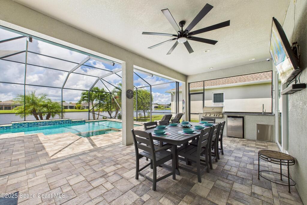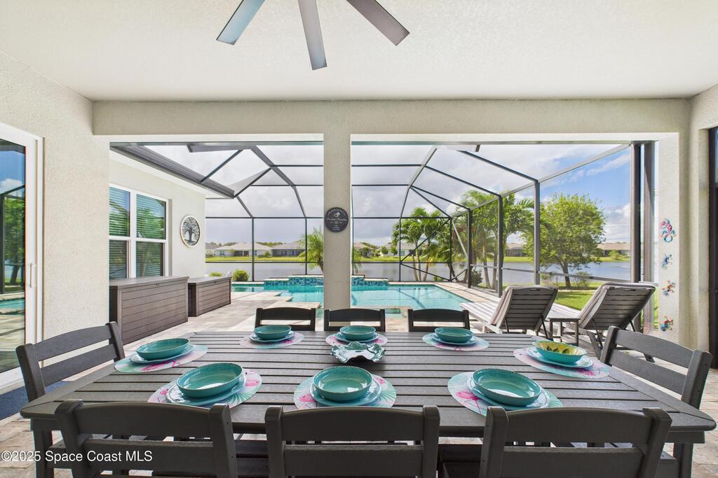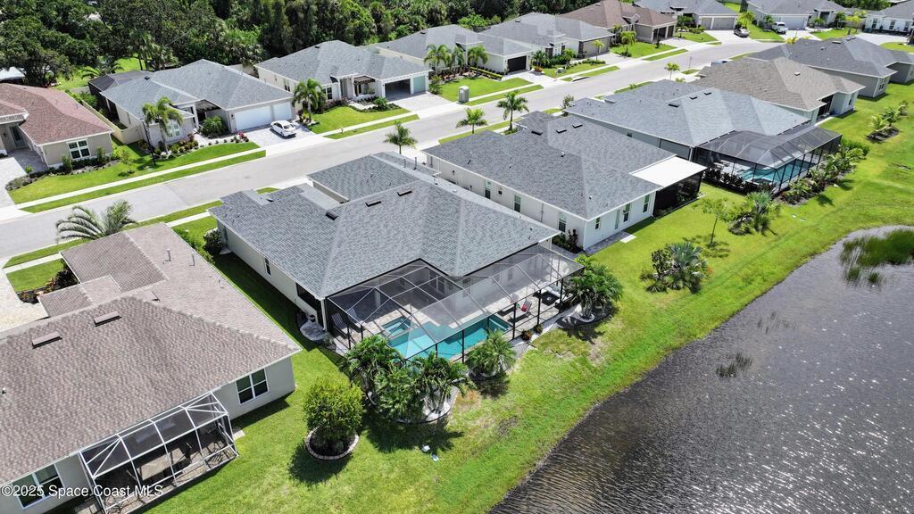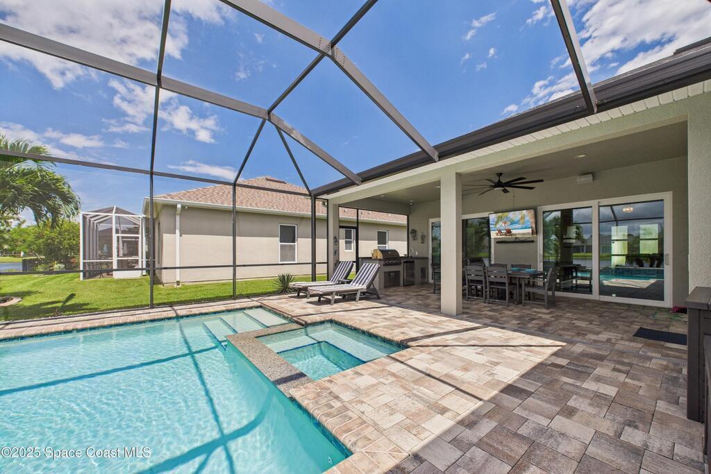 Upgrades galore in this immaculate, custom built home! As you walk through the double door entry you are greeted by the gleaming porcelain floors and a wonderful open floor plan. From the custom wet bar and buffet with wine fridge, to the stylish gas fireplace and chef's kitchen, this home was built for entertaining. A whole home sound system and tray ceilings add to the upscale feeling. Invite your guests outside to the gas heated pool and spa with salt system and intelligent controls. Have a glass of wine or cup of coffee as you enjoy your lake view with beautiful sunsets from your spacious paver pool deck. A whole home gas generator and hurricane impact windows insure your comfort through the storms of life. With an unbeatable location, you are just minutes to the beach and downtown Melbourne, and only about an hour to the Orlando airport. There is no shortage of storage in the oversized, epoxy coated garage, and you can even store a 4th car with the included lift!