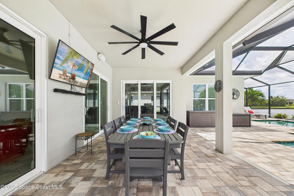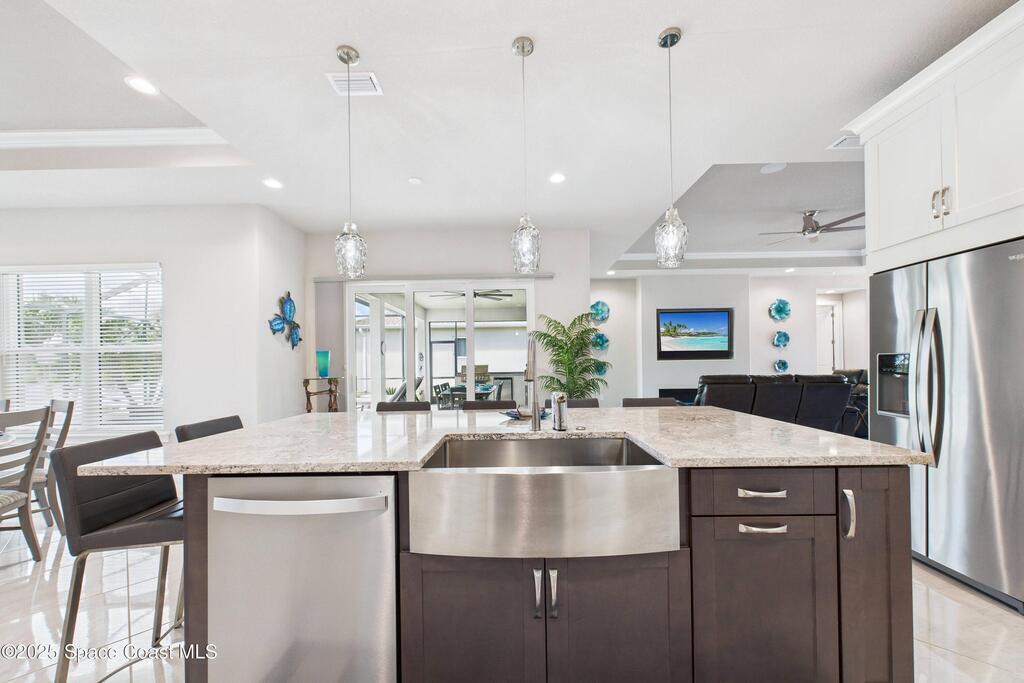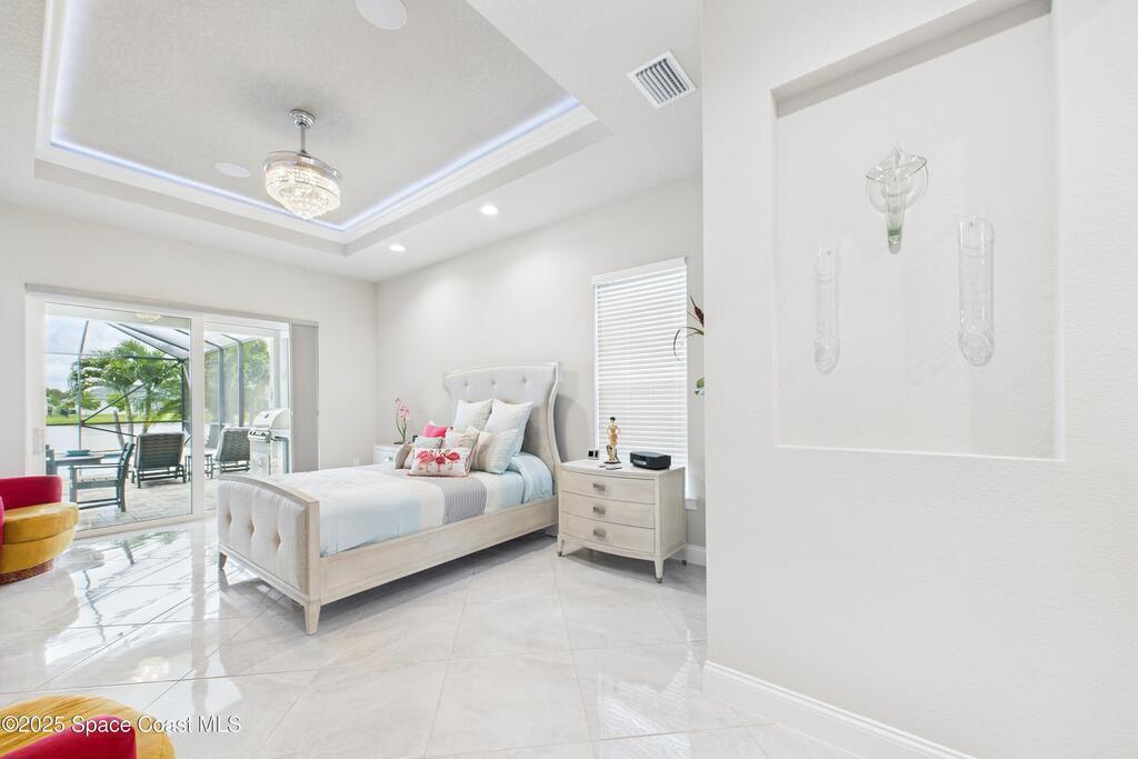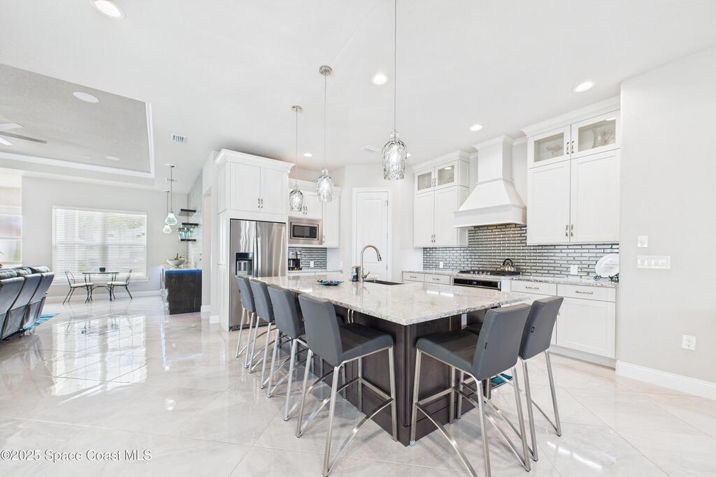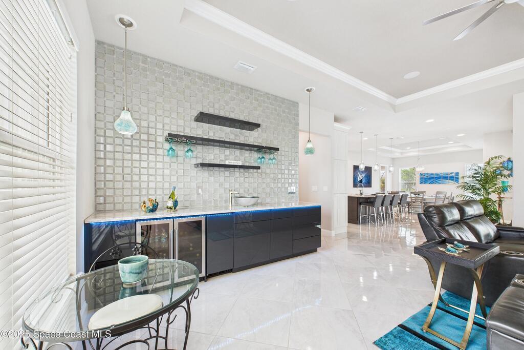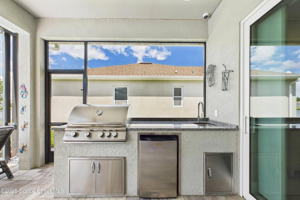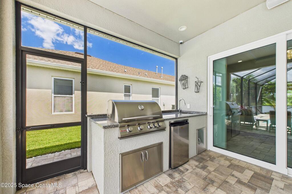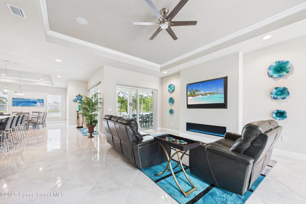 Upgrades galore in this immaculate, custom built home! As you walk through the double door entry you are greeted by the gleaming porcelain floors and a wonderful open floor plan. From the custom wet bar and buffet with wine fridge, to the stylish gas fireplace and chef's kitchen, this home was built for entertaining. A whole home sound system and tray ceilings add to the upscale feeling. Invite your guests outside to the gas heated pool and spa with salt system and intelligent controls. Have a glass of wine or cup of coffee as you enjoy your lake view with beautiful sunsets from your spacious paver pool deck. A whole home gas generator and hurricane impact windows insure your comfort through the storms of life. With an unbeatable location, you are just minutes to the beach and downtown Melbourne, and only about an hour to the Orlando airport. There is no shortage of storage in the oversized, epoxy coated garage, and you can even store a 4th car with the included lift!