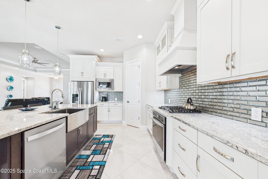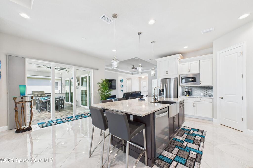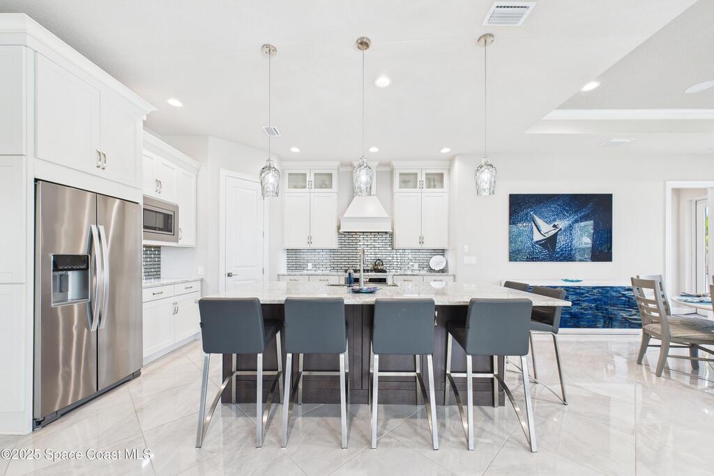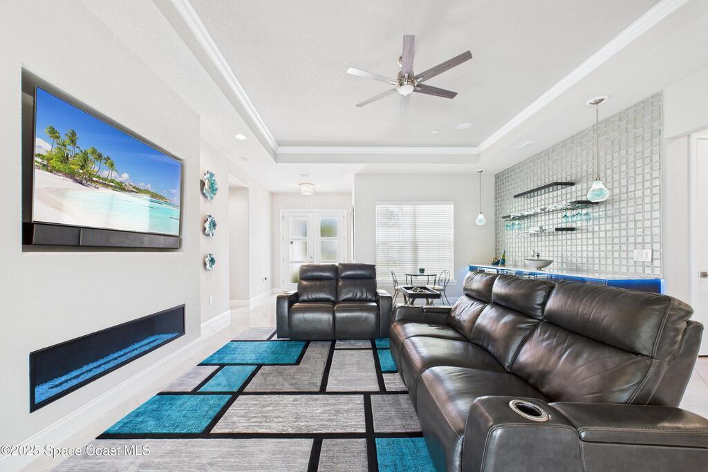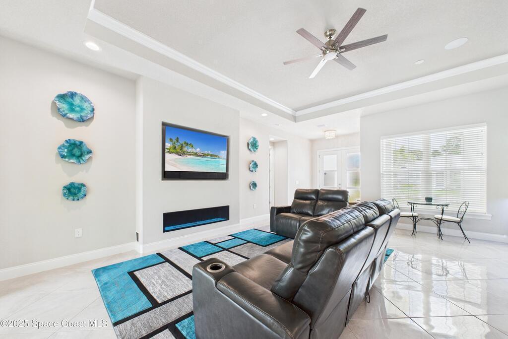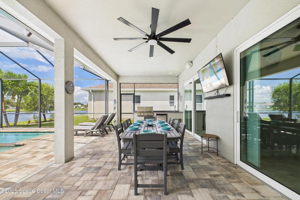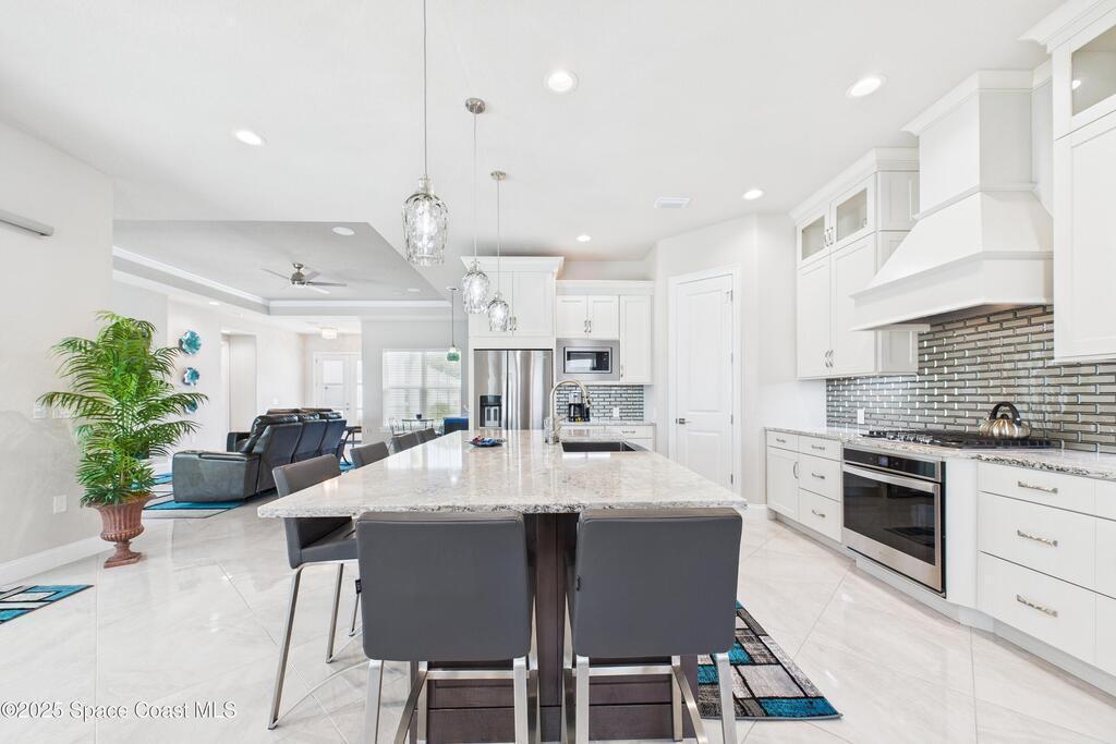 Upgrades galore in this immaculate, custom built home! As you walk through the double door entry you are greeted by the gleaming porcelain floors and a wonderful open floor plan. From the custom wet bar and buffet with wine fridge, to the stylish gas fireplace and chef's kitchen, this home was built for entertaining. A whole home sound system and tray ceilings add to the upscale feeling. Invite your guests outside to the gas heated pool and spa with salt system and intelligent controls. Have a glass of wine or cup of coffee as you enjoy your lake view with beautiful sunsets from your spacious paver pool deck. A whole home gas generator and hurricane impact windows insure your comfort through the storms of life. With an unbeatable location, you are just minutes to the beach and downtown Melbourne, and only about an hour to the Orlando airport. There is no shortage of storage in the oversized, epoxy coated garage, and you can even store a 4th car with the included lift!