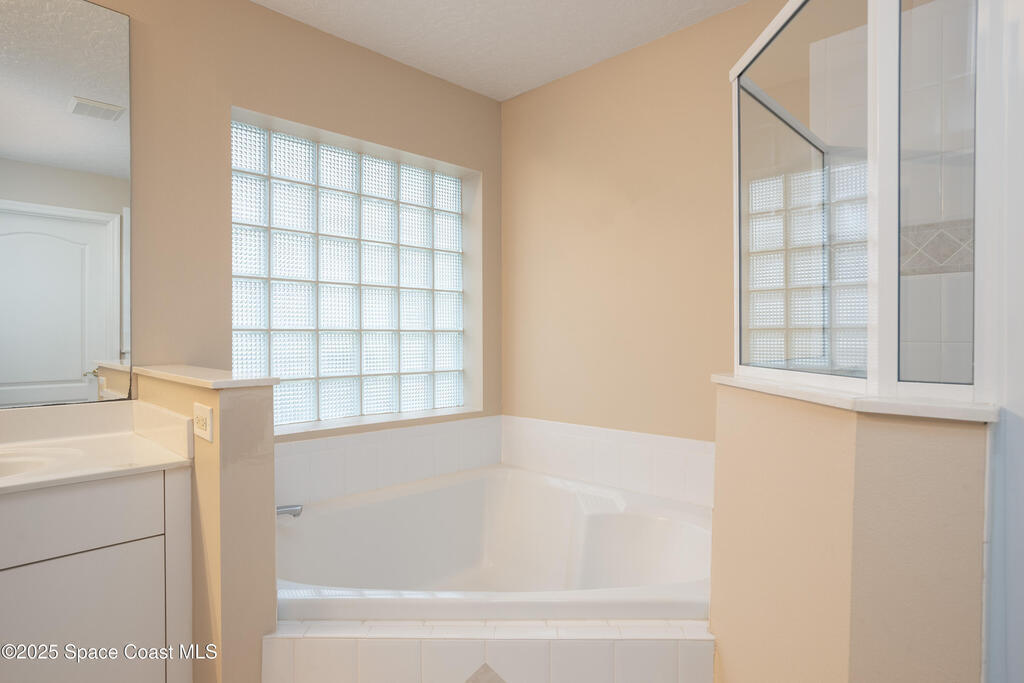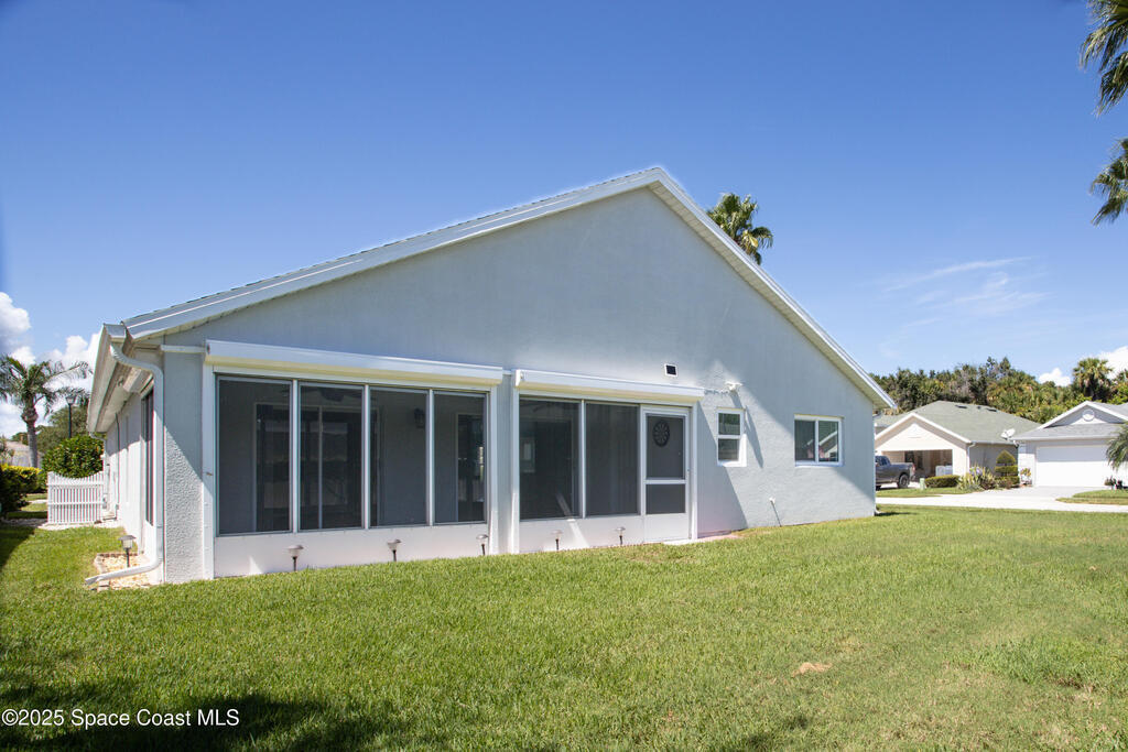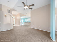 Immaculate home in the desirable Suntree community of Misty Creek. Beautifully maintained inside and out, this residence offers an open floor plan with vaulted ceilings, a formal dining room, and a large eat-in kitchen complete with a breakfast nook and bar. The master suite features a large walk-in closet and a bath with double vanities, a garden tub, and a separate shower. The open layout flows seamlessly into the living and family room, which leads to a spacious enclosed lanai ideal for year-round enjoyment. Upgrades include PGT vinyl impact windows, a Genie Aladdin Connect Wi-Fi garage door opener, a SimpliSafe monitoring system, removable vinyl windows for the lanai, and Advanced Hurricane Technology Super Span roll-down screens on the front door and lanai. The low HOA fee includes access to a community pool, lawn care, irrigation, and exterior painting. Ideally located close to top-rated schools, shopping, dining, beautiful beaches, and Suntree Country Club.