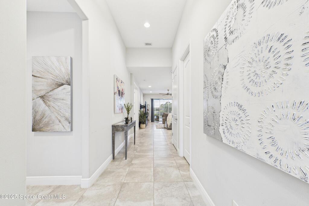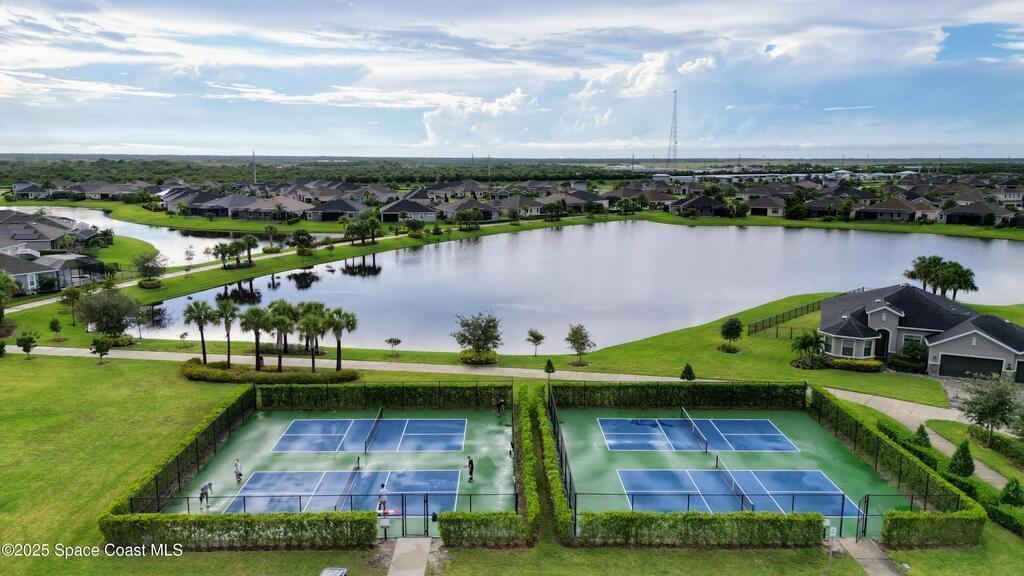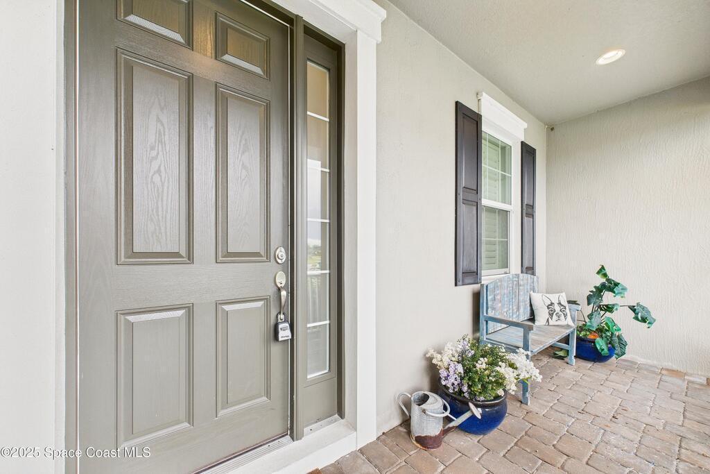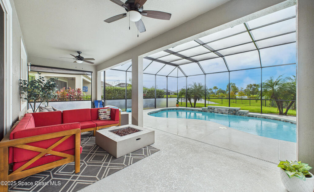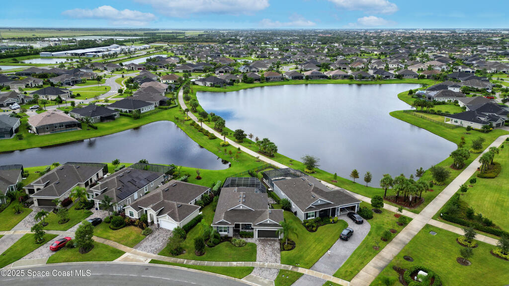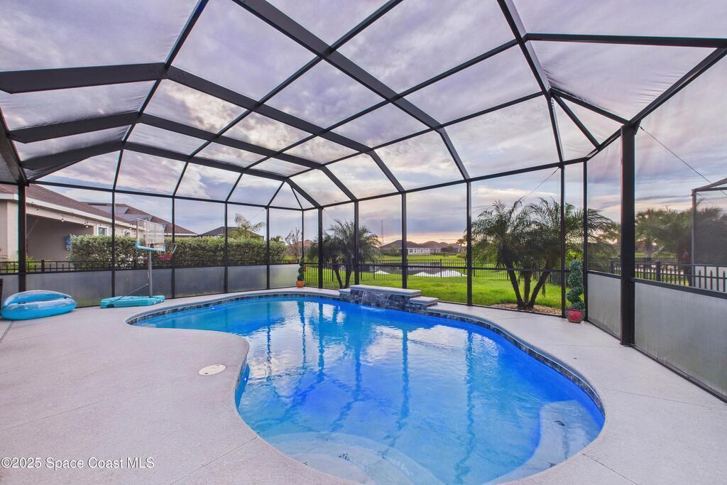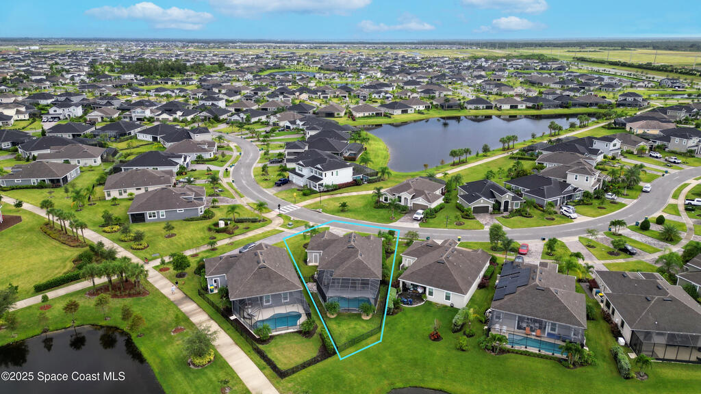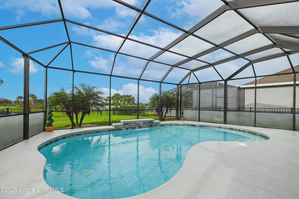 Experience elevated Florida living in this waterfront pool home in the highly sought after Trasona at Addison Village in Viera West. This modern residence features a screened in pool, expansive lanai, and fully fenced yard overlooking a tranquil pond. The paver driveway leads you into a refined interior featuring a gourmet kitchen with stone countertops, a natural gas range, premium cabinetry, abundant workspace, and a walk in corner pantry. The open layout is filled with natural light and ideal for both daily living and entertaining.The luxurious primary suite is filled with natural light from generous windows and offers tray ceilings, ample closet space, and a spa inspired bath with dual vanities that feels like a private retreat.Residents enjoy exclusive access to Addison Village amenities: clubhouse, pickleball, dog park, walking trails & more. Located near A rated schools shopping dining healthcare & major employers, this home is modern Florida family living at its finest!