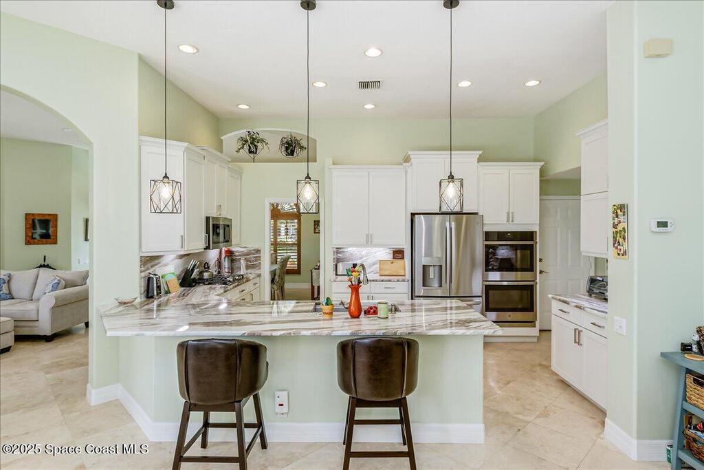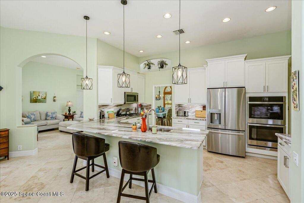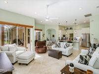 DECEMBER BONUS of $5, 000 is being offered at Closing to be used at the Buyer's discretion. MOTIVATED SELLER! 4 bdrm/3 bath recently upgraded home on the 8th Tee at Baytree National Golf Course gated community! Awesome view overlooking the heated pool & spa across the pond! Spacious home w/higher ceilings, open floor plan, split bedrms. This home has both a Family Room, Living Room & a Dining Room. All tile floors thruout! There is a long list of upgrades including recent extra wide paver driveway/patio & front entry! All newer windows w/accordion shutters. Plantation shutters & wood blinds. The recently updated kitchen includes solid wood Shaker style cabinets & granite countertops & granite backsplash w/undermount lighting! Newer pendant lighting. All newer gas 5 burner cooktop, French door refrigerator w/indoor ice & water, Wifi Self cleaning Double wall oven w/Convection & Air fryer built in! Newer OTR microwave, Garbage disposal & sink.