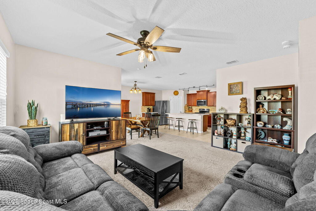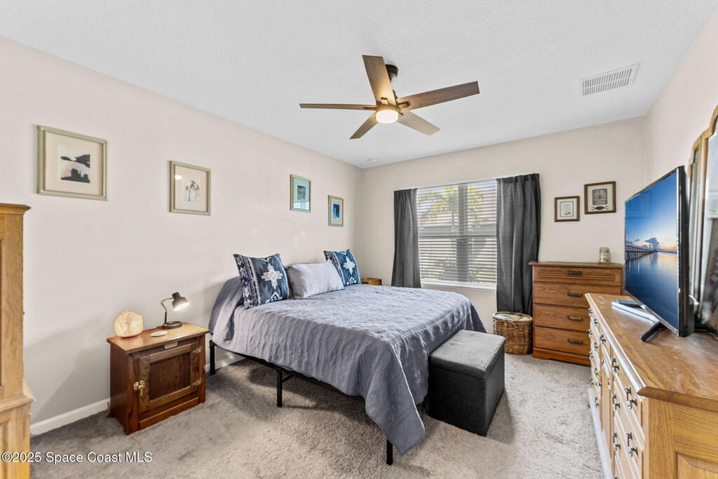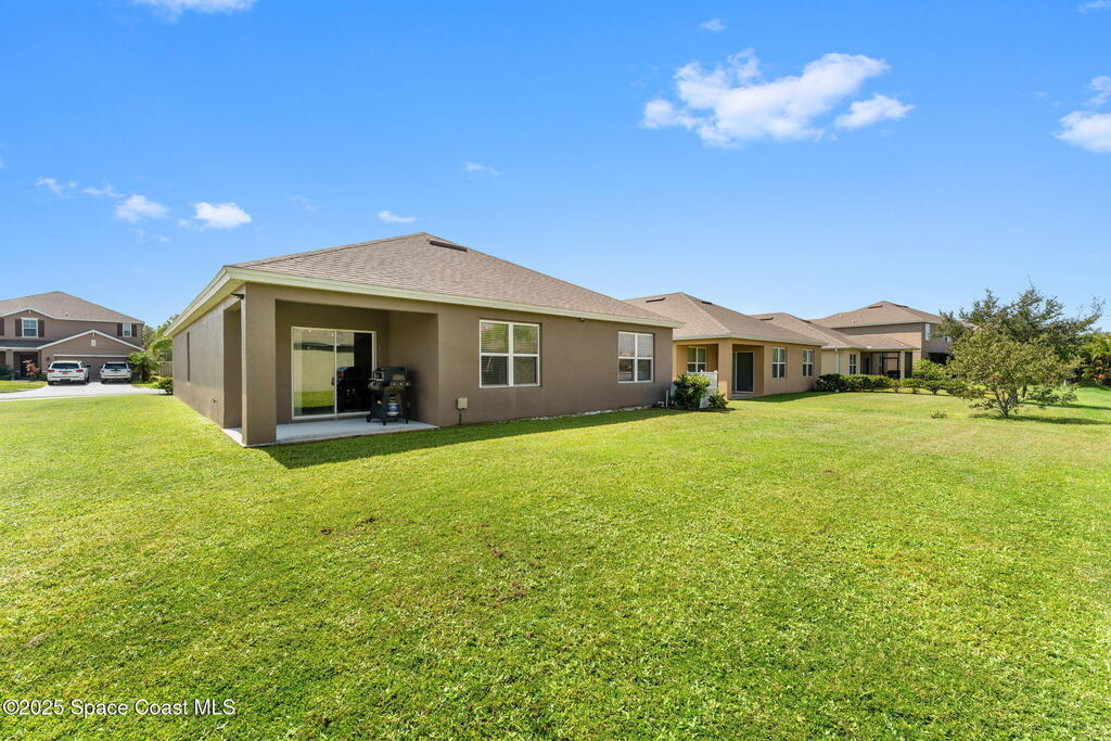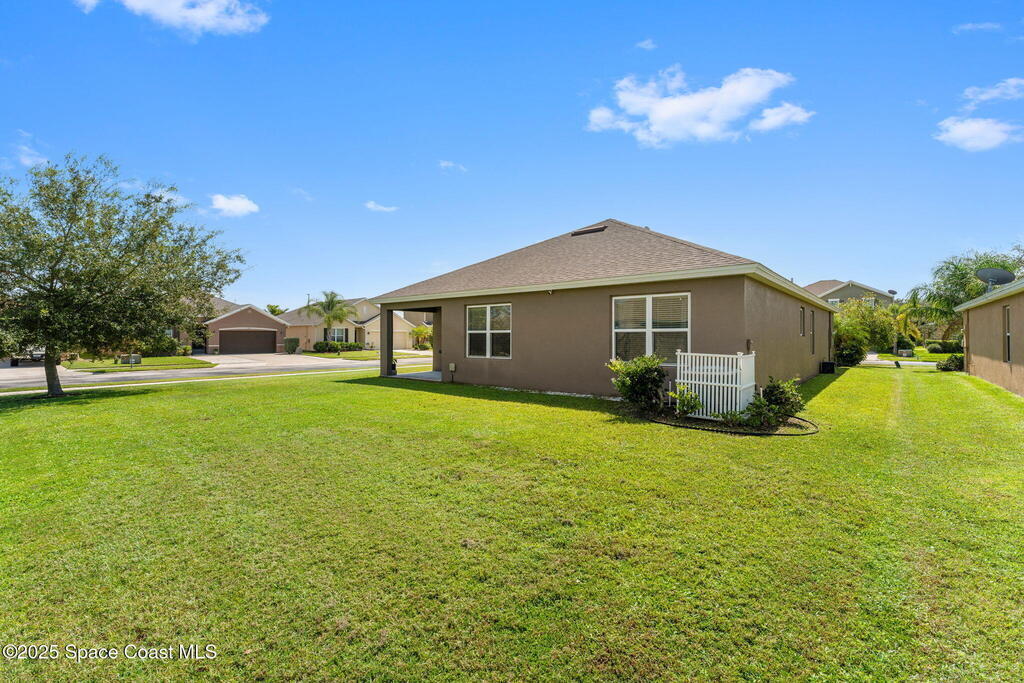 Welcome to Hammock Shores, where comfort meets convenience! This 4-bedroom, 2-bath corner lot home offers an open-concept design with a split floor plan, creating the perfect flow for daily living and entertaining. The kitchen is the heart of the home with stainless steel appliances, island seating, and a spacious walk-in pantry. The primary bathroom features dual sinks, a walk-in shower, separate soaking tub, and a generous walk-in closet. Families-especially military- will love the top-rated Satellite Beach High and DeLaura Middle School District, and appreciate the easy commute--just 6 minutes to Patrick Space Force Base and only 7 minutes to the beach. This move-in-ready home makes it easy to start living the coastal lifestyle you've been dreaming of!