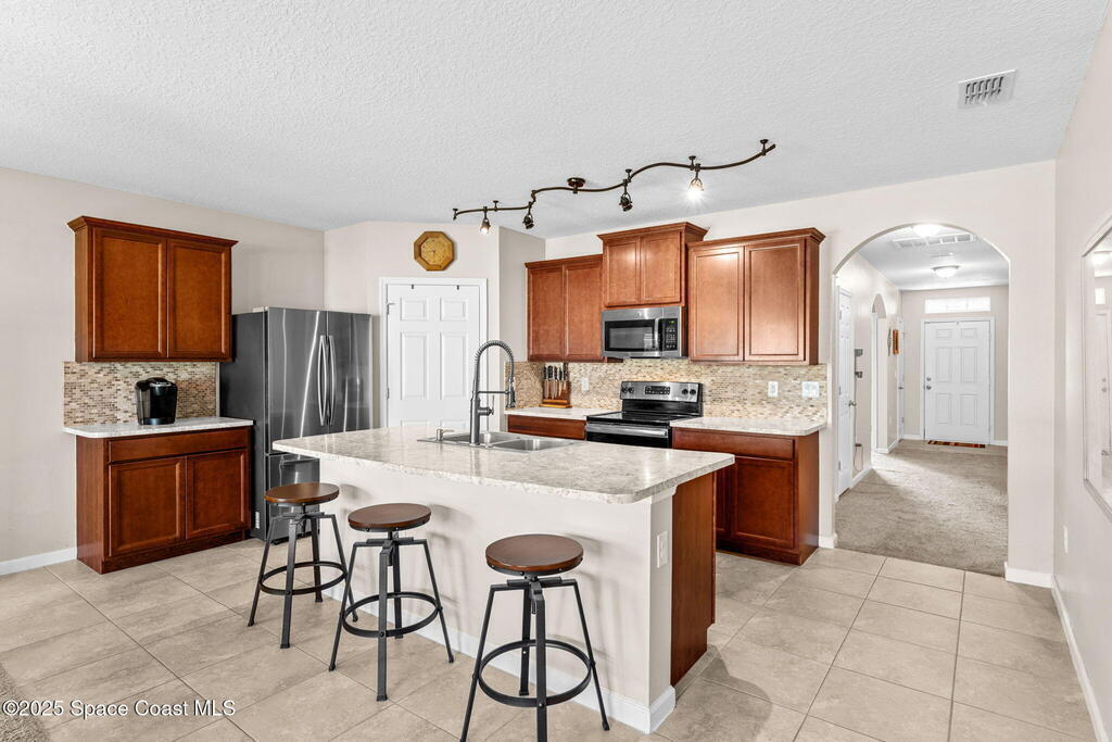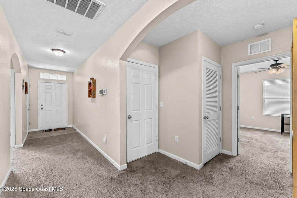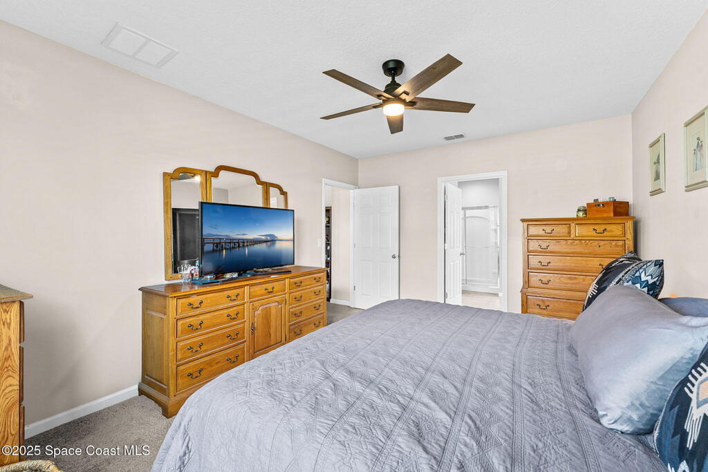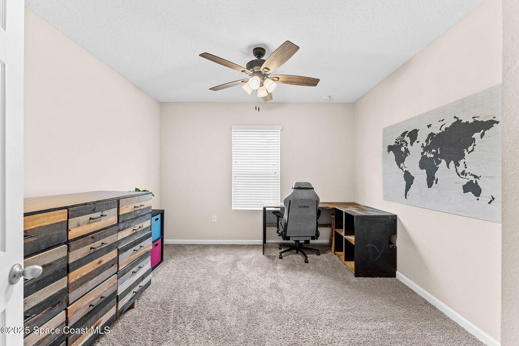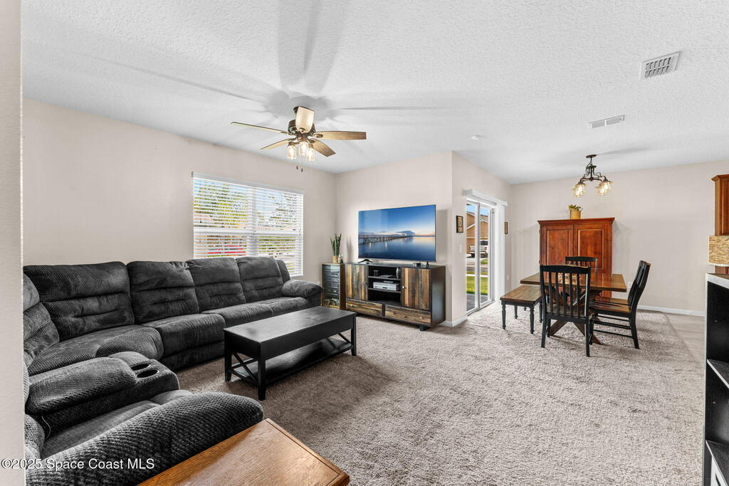 Welcome to Hammock Shores, where comfort meets convenience! This 4-bedroom, 2-bath corner lot home offers an open-concept design with a split floor plan, creating the perfect flow for daily living and entertaining. The kitchen is the heart of the home with stainless steel appliances, island seating, and a spacious walk-in pantry. The primary bathroom features dual sinks, a walk-in shower, separate soaking tub, and a generous walk-in closet. Families-especially military- will love the top-rated Satellite Beach High and DeLaura Middle School District, and appreciate the easy commute--just 6 minutes to Patrick Space Force Base and only 7 minutes to the beach. This move-in-ready home makes it easy to start living the coastal lifestyle you've been dreaming of!