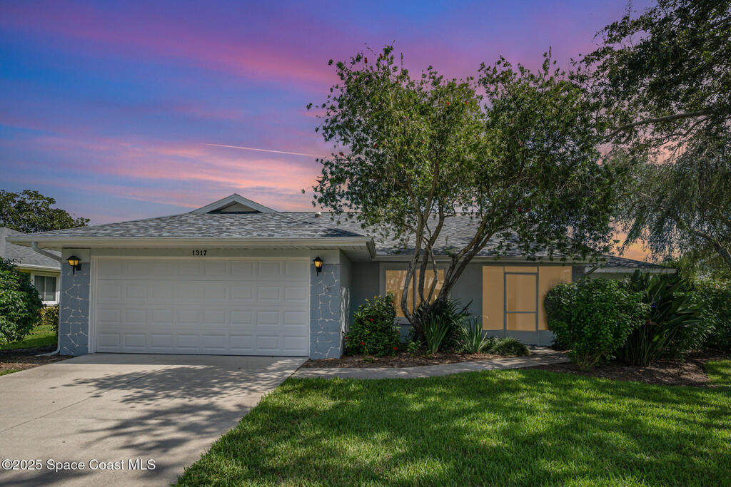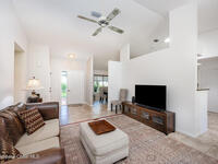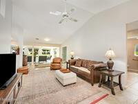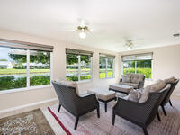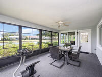 Popular Bangor model featuring stunning water and golf course views, located in a resort-style country club community offering top-notch amenities! This beautifully maintained 2-bedroom, 2-bath home with a 2-car garage offers an expanded Florida room and a large covered lanai--perfect for enjoying the expansive views and Florida lifestyle. Interior highlights include cathedral ceilings, fresh paint, and an indoor laundry room. Recent updates make this home truly move-in ready: 2023 impact-rated windows, remodeled primary bathroom with quartz countertop, roll-in shower with frameless glass door, porcelain tile, LVP flooring, new toilet, and fixtures. The primary bedroom features new glass-pane French doors and LVP flooring (2023), while the guest bedroom was also updated in 2023 with matching French doors and LVP flooring. Additional improvements include a 2025 impact-rated garage door, 2023 custom zebra shades on all windows, a 2025 front screen enclosure,
