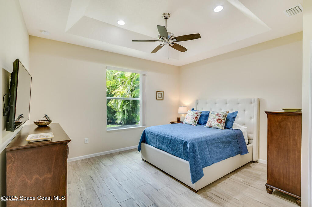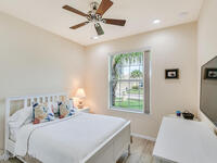 This exceptional 4-bedroom, 2-bathroom pool home is not only a perfect retreat for families but also a sustainable living choice, powered by Tesla solar panels that significantly reduce your energy costs and environmental footprint. As you enter, you'll be captivated by the spacious, open-concept layout that invites natural light to flow through every room. The modern kitchen is a culinary dream, featuring stainless steel appliances, sleek countertops, and an island breakfast bar that seamlessly connects to the dining and living areas--ideal for both everyday living and entertaining. The master suite serves as a tranquil sanctuary, complete with an en-suite bathroom that features dual sinks, a luxurious shower. The additional three bedrooms are generously sized, providing ample space for family members, guests, or even a home office setup. Step outside to your private backyard paradise, where a sparkling pool awaits, surrounded by lush landscaping great for entertaining.