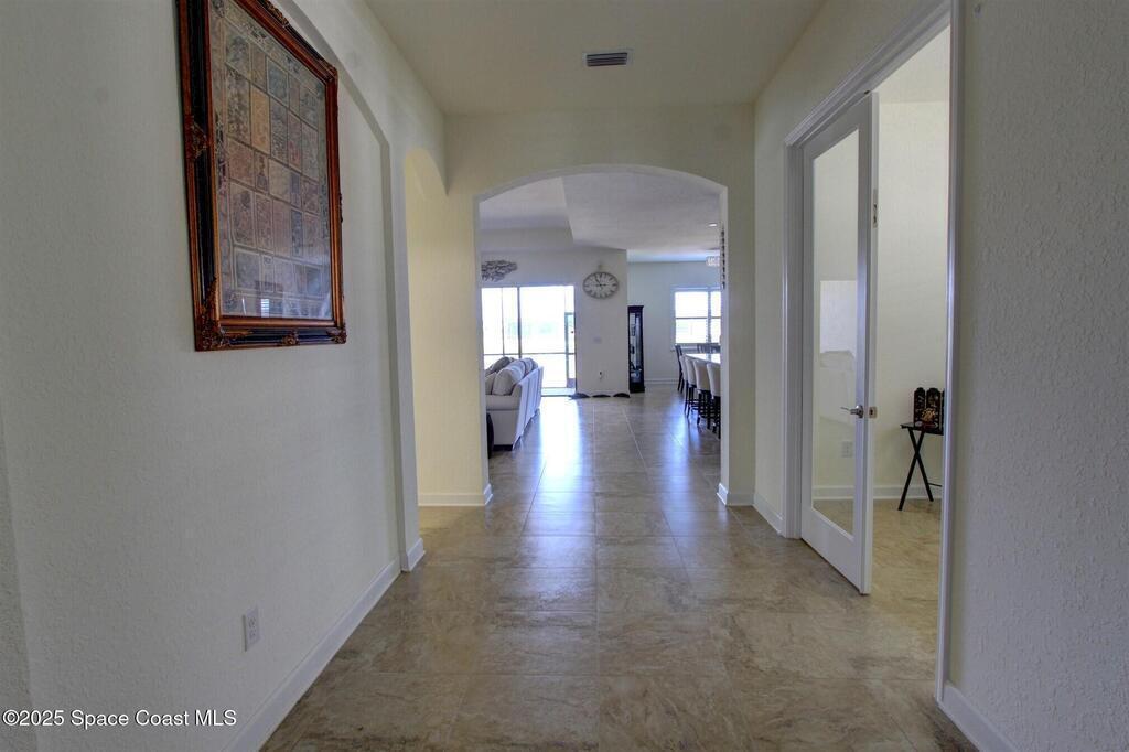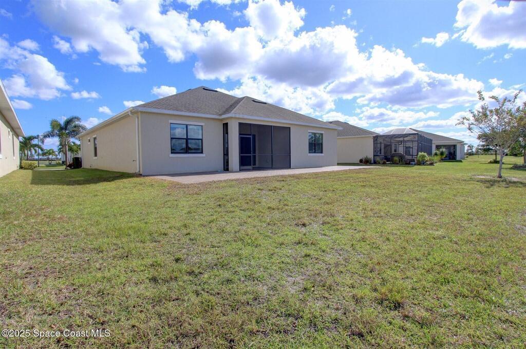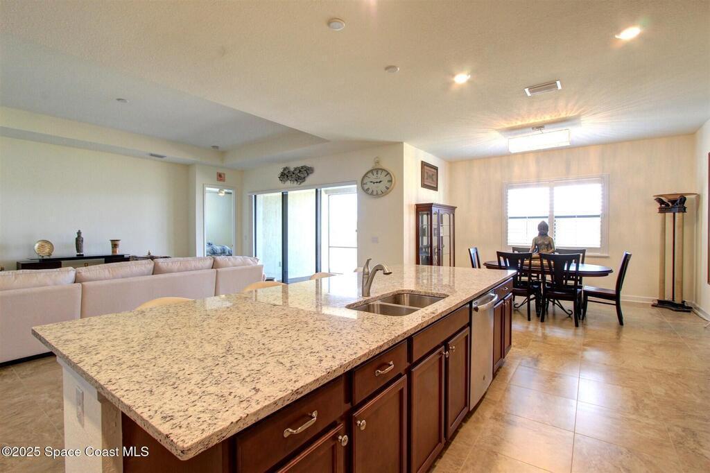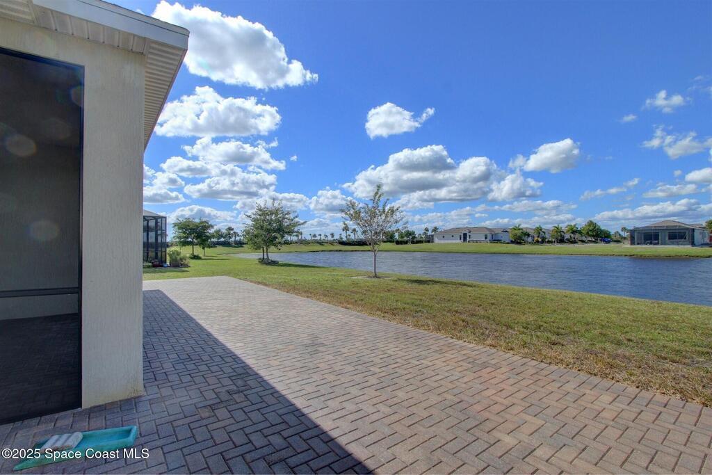 Maintenance-free living in the desirable 55+ community of Bridgewater at Viera! This beautifully appointed 3-bedroom, 3-bath home offers all-tile flooring, plantation shutters, and a spacious open layout designed for effortless entertaining. The gourmet kitchen features granite countertops, a large island, and stainless steel appliances. Each bedroom has its own private en-suite bath, perfect for visiting guests. Enjoy peaceful lake views from the screened paver patio, plus an extended open paver patio for grilling or soaking in the sun. A rare 3-car garage provides ample storage. Furnishings are negotiable for a turnkey option.Residents enjoy resort-style amenities including a stunning private clubhouse with heated pool and spa, state-of-the-art fitness center, tennis and pickleball courts, billiards room and even a private movie theater -- all within a vibrant, active community minutes from shopping, dining and beaches. Live the Viera lifestyle you've been waiting for!