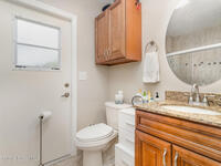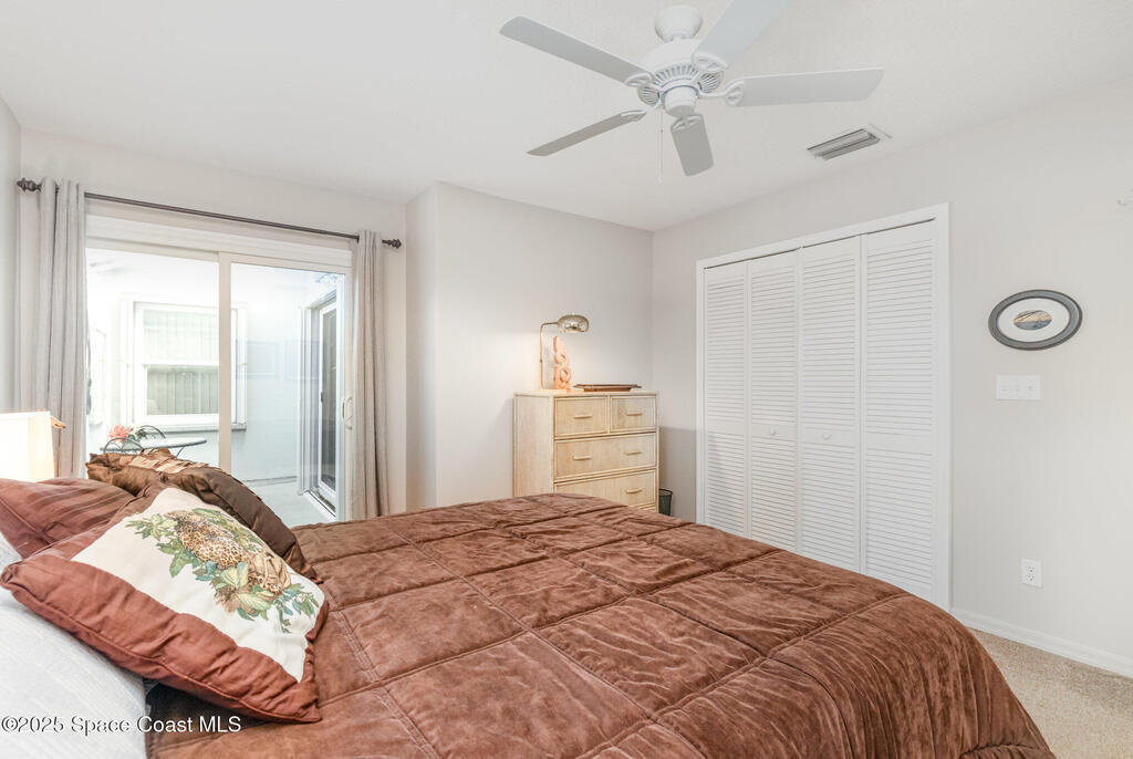 Beautifully updated Austin Model located in a resort-style country club community. This spacious 3-bedroom, 2-bath home features an open floor plan with vaulted ceilings and abundant natural light. The kitchen boasts shaker cabinets, solid surface countertops, and an island. The home features newer windows and accordion shutters, and lush landscaping. The split bedroom design includes a private guest suite area with two guest bedrooms, and an updated full bathroom, complete with an entryway and pocket door for added privacy. One guest bedroom offers private access to a charming outdoor atrium, perfect for relaxing with a morning coffee. The expansive primary suite opens to the large, screened lanai and features a beautifully renovated en suite bath with double vanities, a tiled walk-in shower, and a generous walk-in closet. Enjoy the tranquil setting of the lanai, enhanced by a retaining wall for privacy, and with only green space and water beyond the community wall.