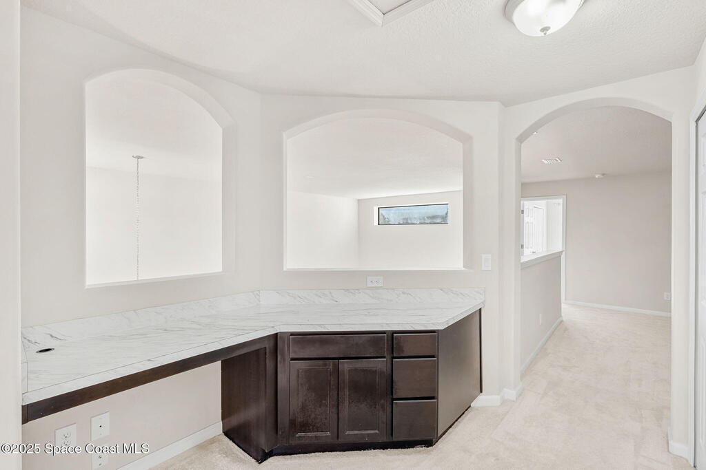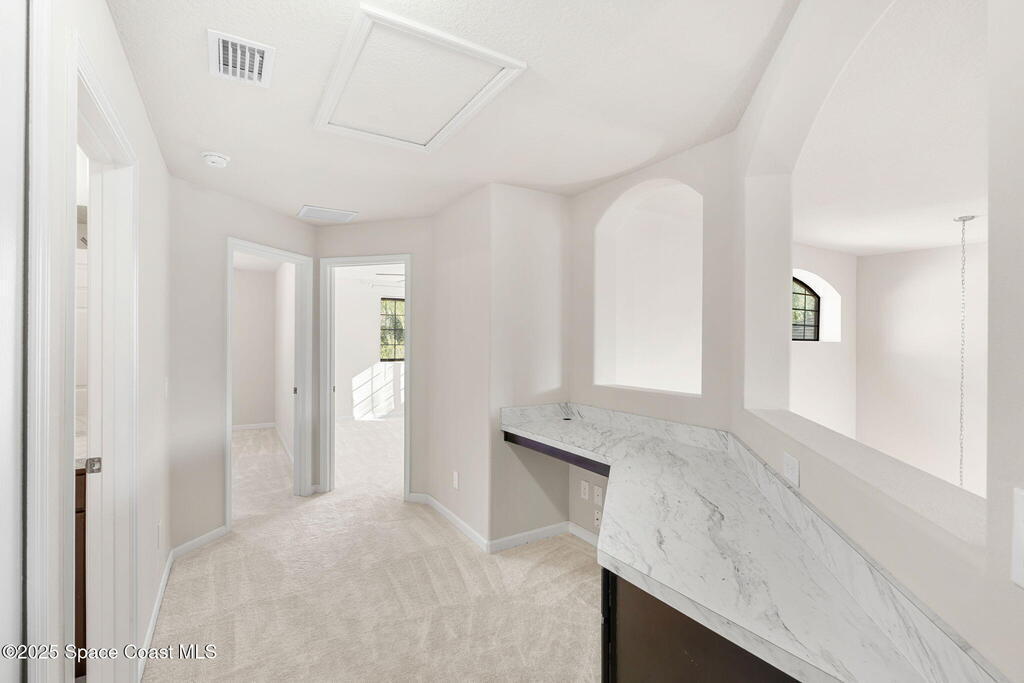 Maintenance-Free Living in the Heart of Melbourne. Spacious Family Room with a 2-story high ceiling and windows. Large eat-in kitchen, granite and huge prep space! The master suite is located on the first floor, walk in shower and large tub, with a screened patio and a water view. Built in office in loft area upstairs. HOA covers roof replacement. (2024) It also covers Exterior Paint, Cable/Internet, and lawn maintenance. Located close to it all - Beaches - 192- 95 - US1 - Airport - GE-Harris- Northrup Gruman and more.