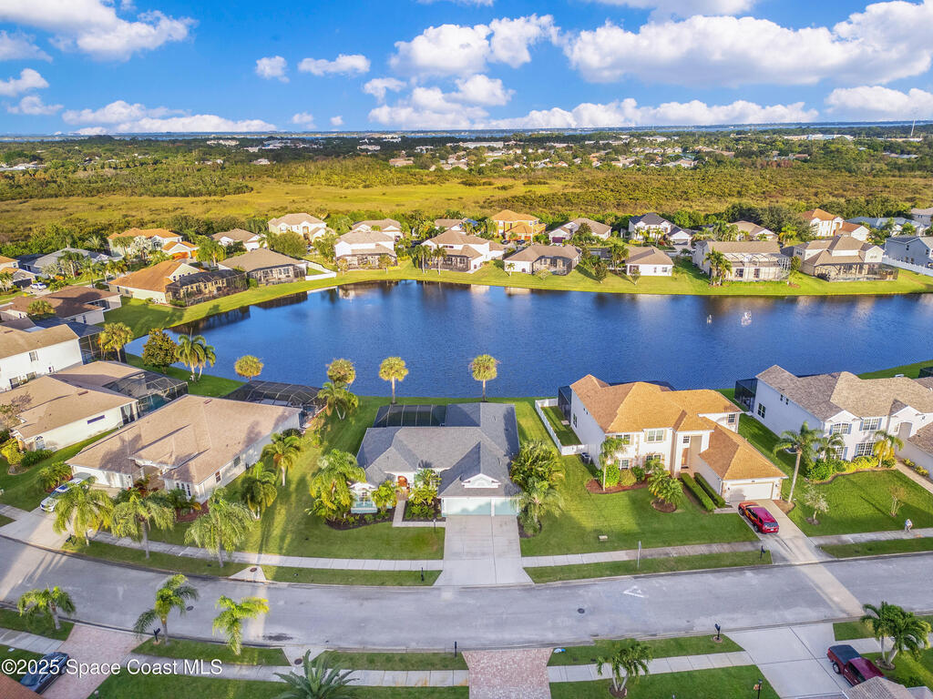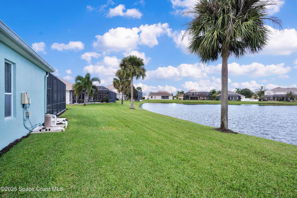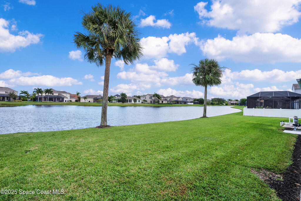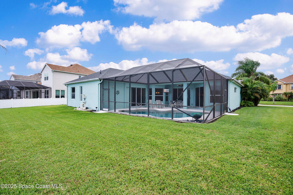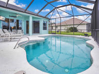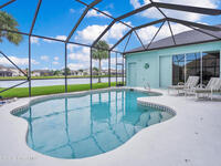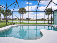 MOVE-IN READY | DIRECT LAKEFRONT | 4 BED | 3 BATH | POOL HOME | 3-CAR GARAGEStunning lakefront pool home on an oversized lot in Grand Haven! This open floor plan offers formal living & dining rooms, a spacious kitchen with gas stove, island, built-in desk, and eat-in nook open to the family room with built-ins. Pocket sliders lead to the resort-style saltwater pool with Pentair chlorine generator, LED color-changing lights, and built-in Sonos sound system controllable from your phone. The primary suite features a sitting area, two walk-in closets, and a spa bath with dual sinks, walk-in shower & garden tub. Includes a guest/in-law suite, 3-car garage, hurricane-proof doors, and peaceful lake views. Community offers tennis, basketball & playground. Minutes to beaches, Patrick SFB, shopping & I-95!