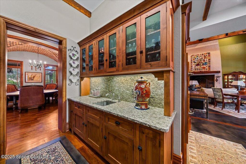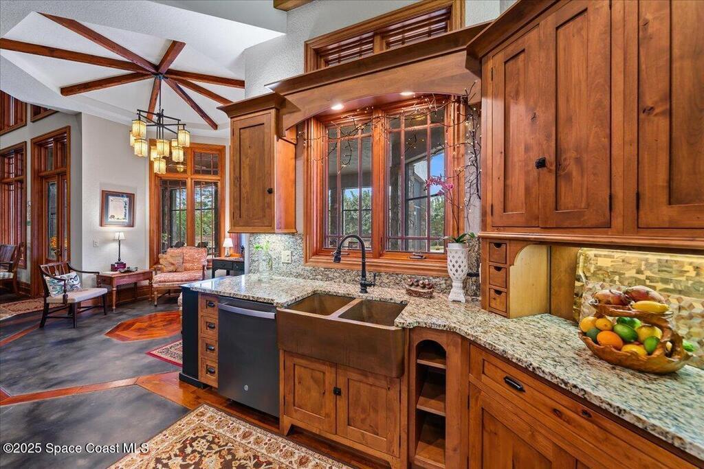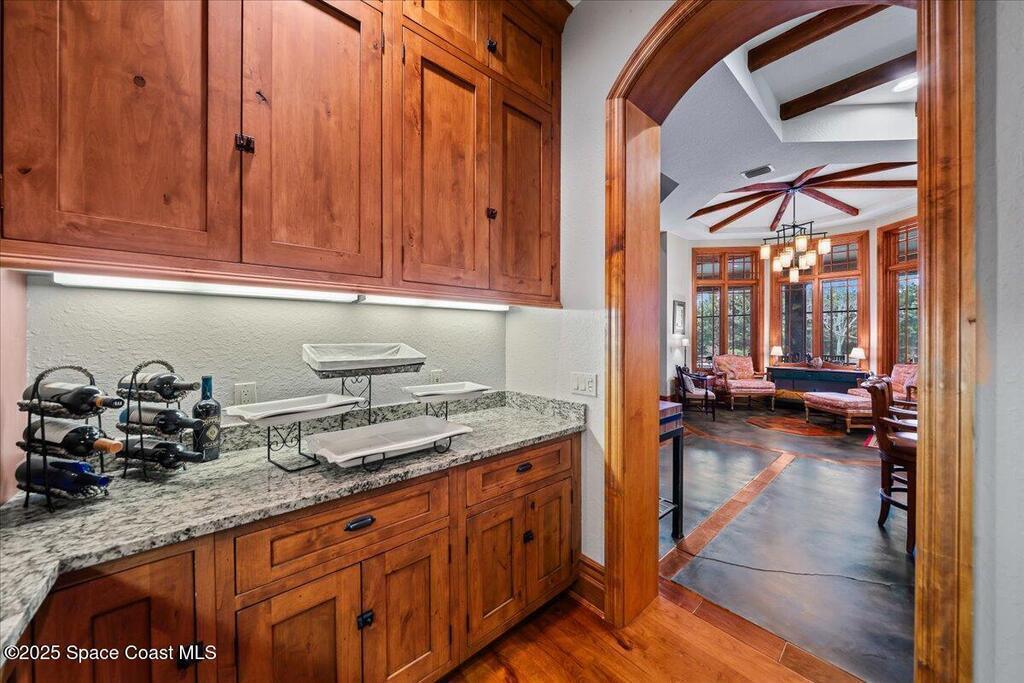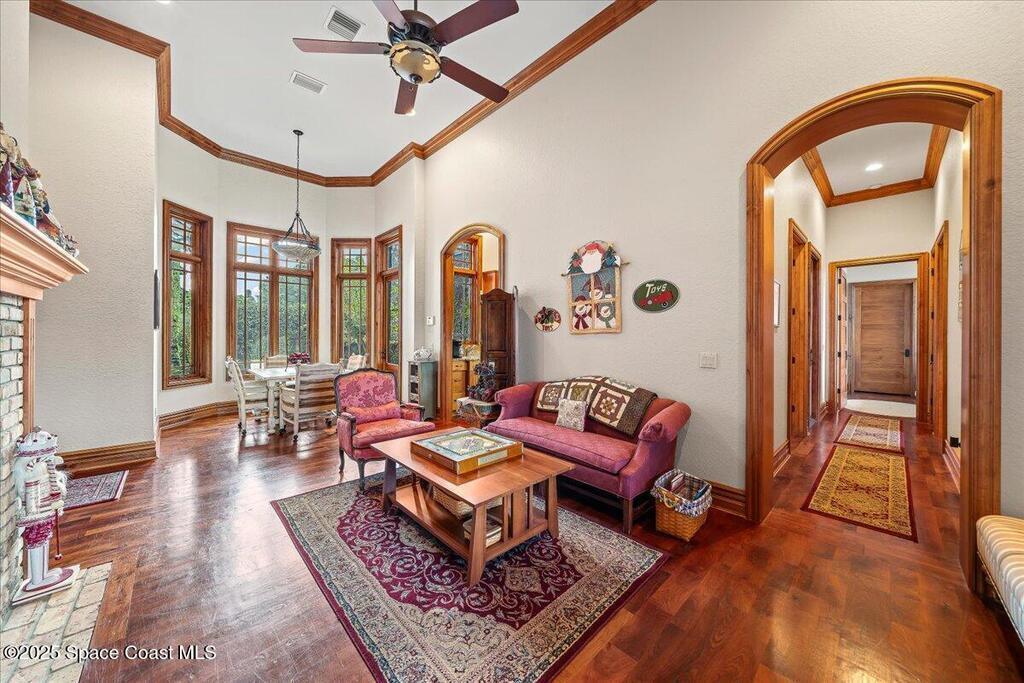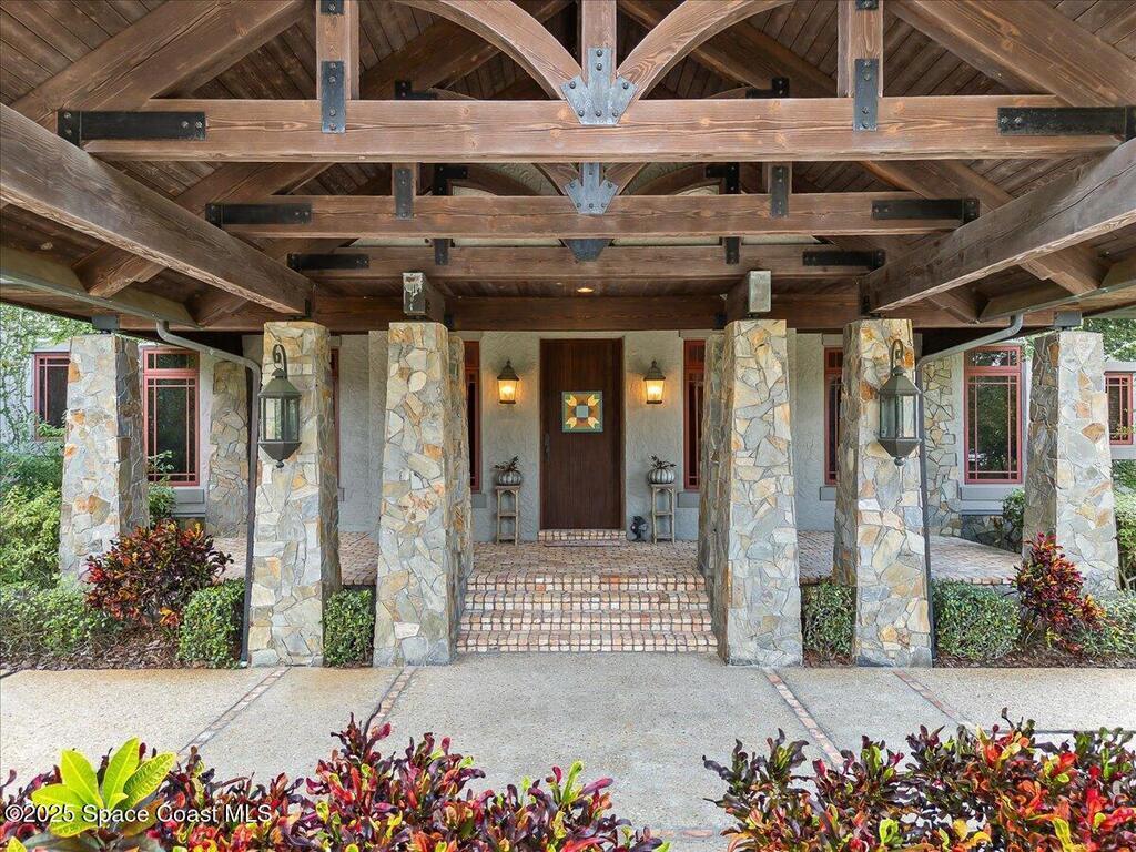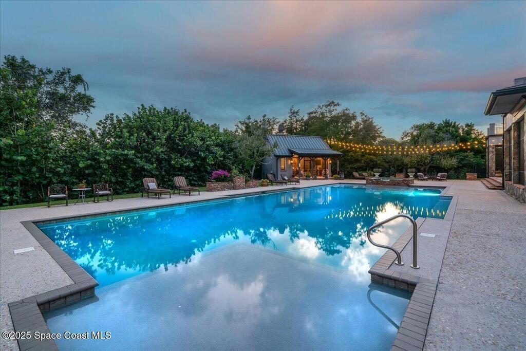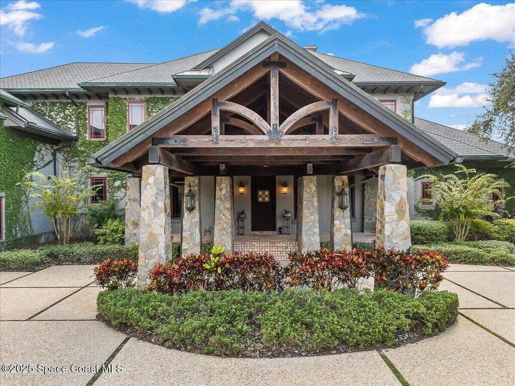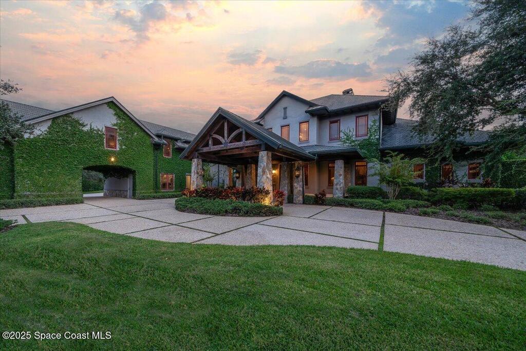 Welcome to 586 Wethersfield Place, an unparalleled luxury sanctuary nestled in the heart of Melbourne, Florida. This exquisite property redefines opulence offering discerning buyers a unique blend of grandeur and privacy. A Masterpiece of Architectural Excellence and constructed with the utmost attention to detail, this property stands proudly on a solid concrete poured block foundation, meticulously reinforced with double steel rebar ensuring both strength and security. Imagine waking up to the serene views of a protected wildlife preserve while enjoying complete privacy on this north-south-oriented lot. The award-winning landscape, designed by Susan Hall, enhances the beauty of this estate with antique, reclaimed Chicago brick adding layers of history and character. Dive into relaxation with your own 85, 000-gallon saltwater pool and spa, bathed in sunlight for 12 hours daily, yet cleverly designed to keep the home cool.