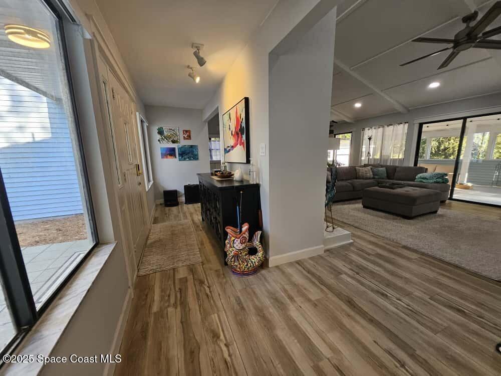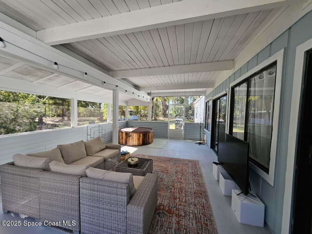 Live the Florida lifestyle on 1.66 private acres double lot--enjoy a campfire under the stars and still be at the mall in 6 minutes or on the beach in 15. This fully renovated estate offers peaceful acreage living with quick access to I-95, shopping, and dining. Zoned for Horses and animals, the property includes a ready-to-use barn with stalls, a tack room, and a separate renovated detached dwelling with its own electric and AC makes an ideal office, studio, or guest space. Major updates include a new AC, new electric panel, new hot water heater, and new roofs on the home, barn, and outbuildings. Inside features a renovated kitchen, updated bathrooms, a custom ceiling, and a working fireplace. Outdoors, enjoy a dedicated campfire area and a large 450 sq. ft. re-screened porch. A rare move-in-ready estate with land, upgrades, and unbeatable convenience.