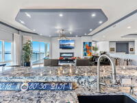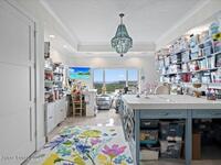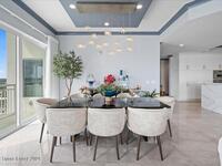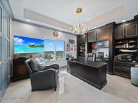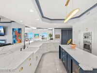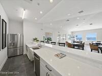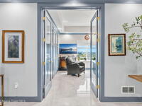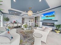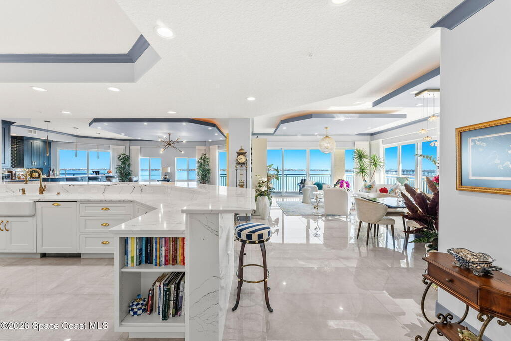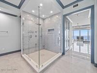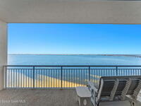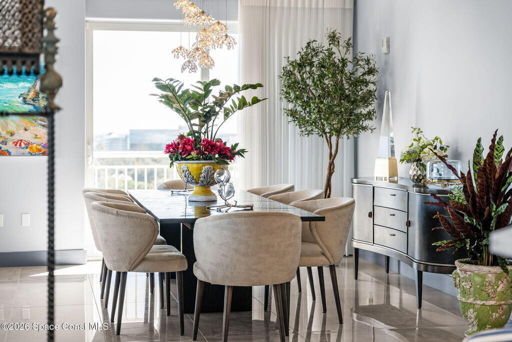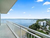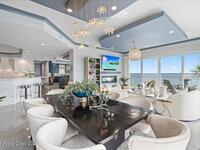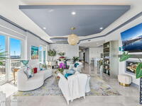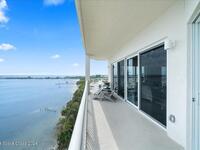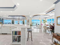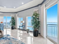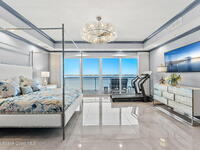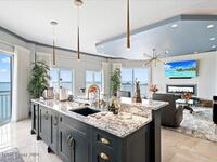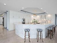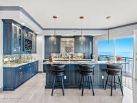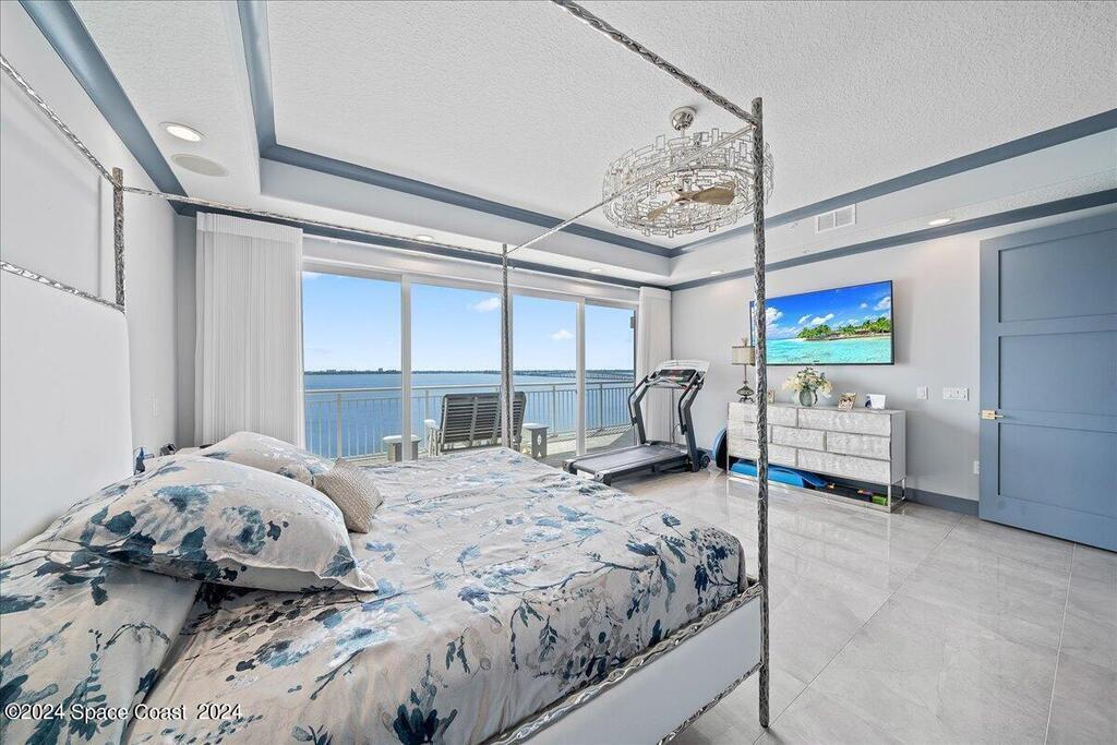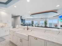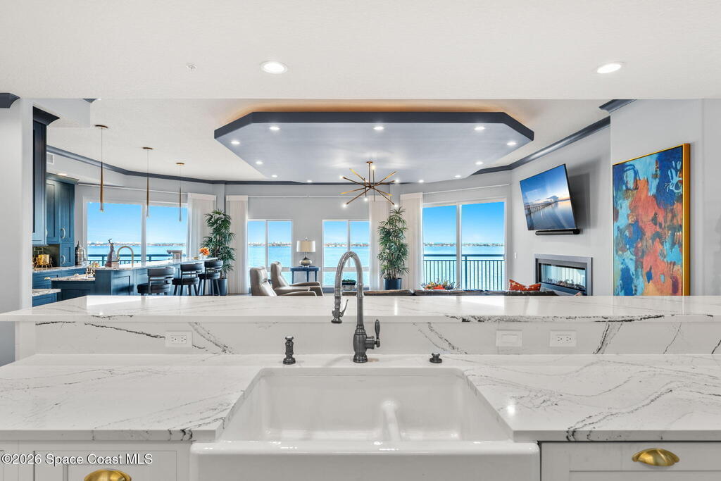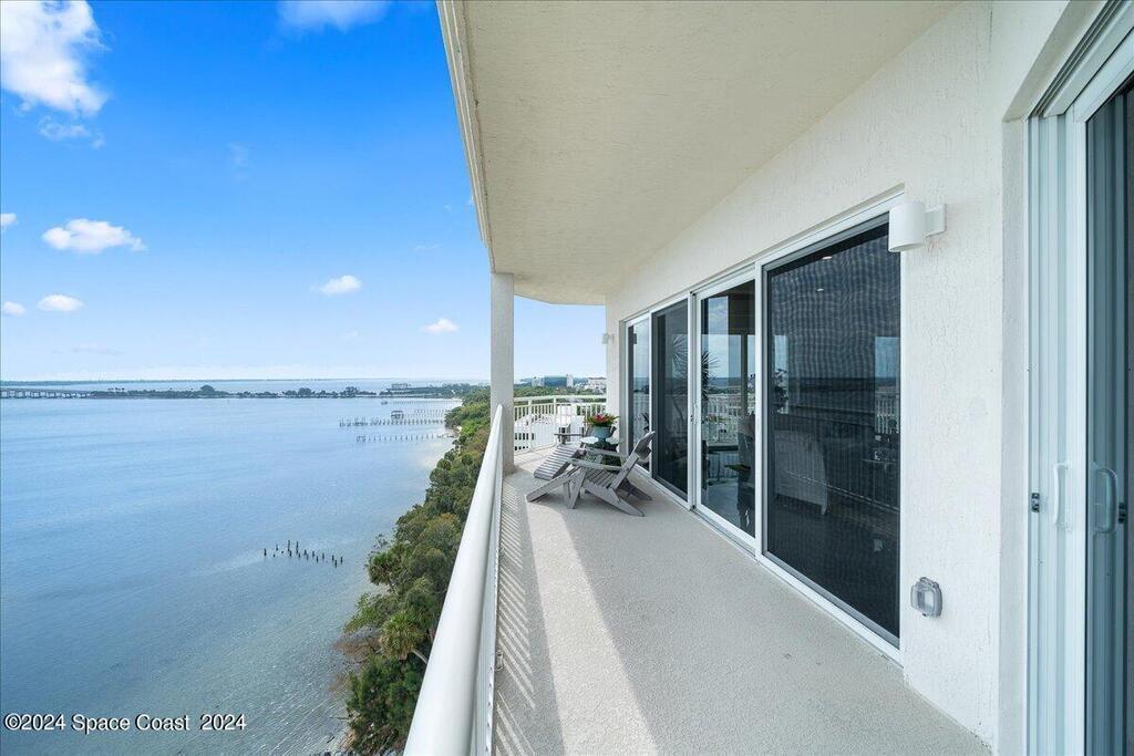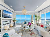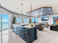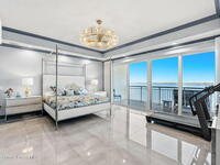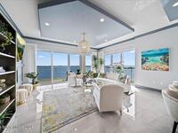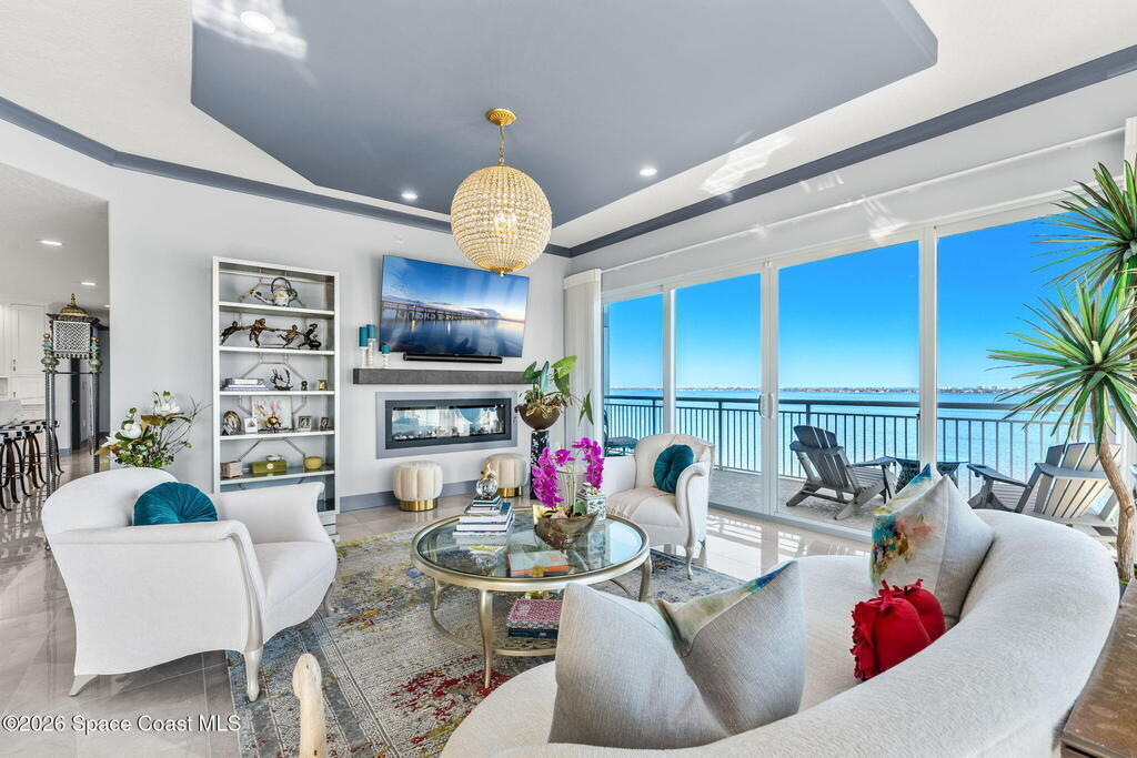Experience elevated waterfront living in this stunning corner penthouse.This elegant home welcomes you with a beautiful hand laid marble floor highlighted by designer chandeliers lighting your way to a spacious open concept living area with floor to ceiling sliding doors.They showcase breathtaking views of the Indian River and rocket launches.The gourmet kitchen includes an induction cooktop and custom cabinets with pullout shelving.The master suite offers a private balcony, two walk-in closets, a shoe closet, spa bath, bidet and designer tile finishes. Two secondary en suite bedrooms, an office and art studio complete the living space.There are quartz countertops, electric window treatments, upgraded plumbing and light fixtures in every room.A see through fireplace separates the living and family areas. Sip your morning coffee watching beautiful sunrises or enjoy cocktails from your full bar with pull out shelves and its own refrigerator, freezer, wine cooler and nugget ice maker.