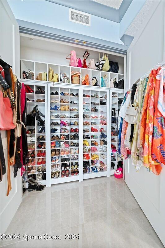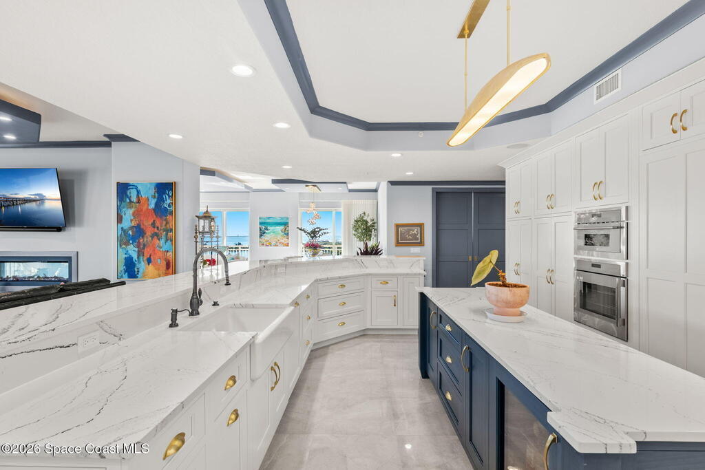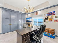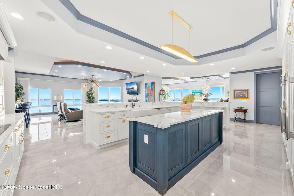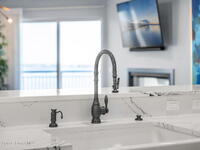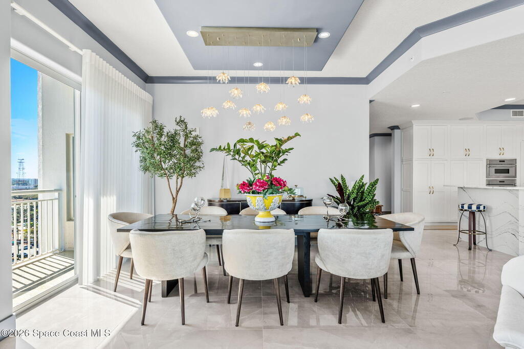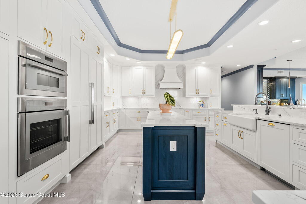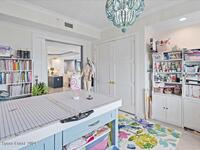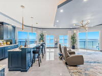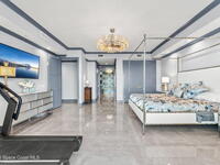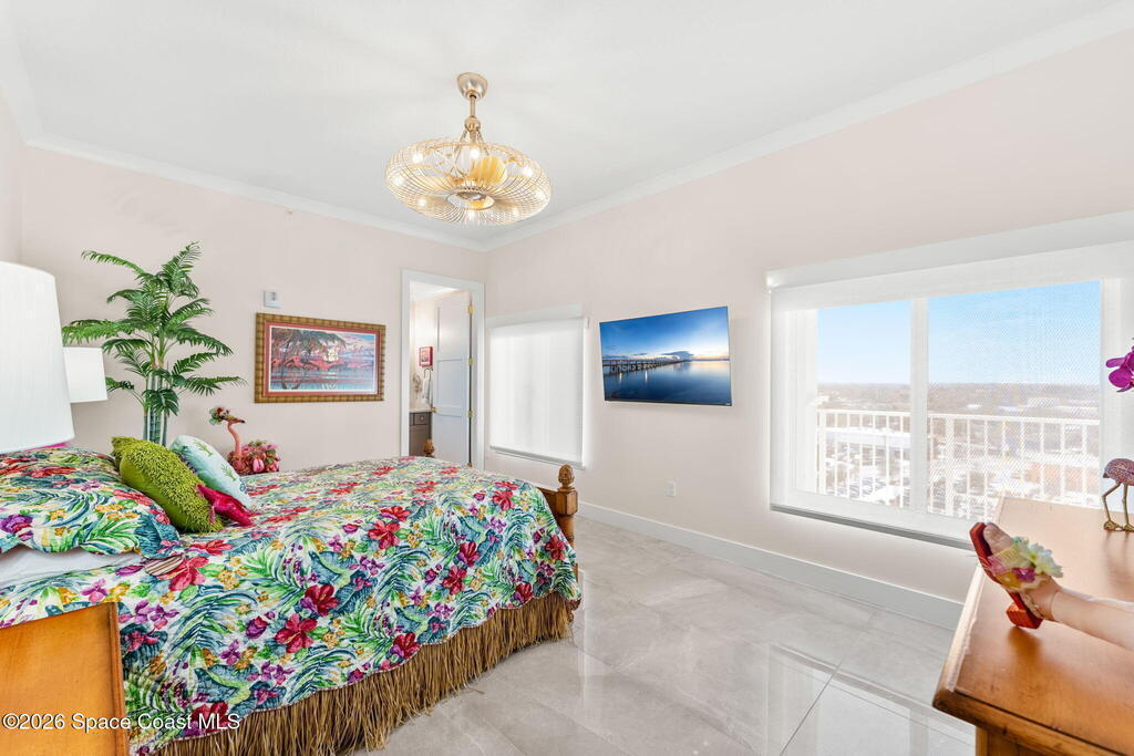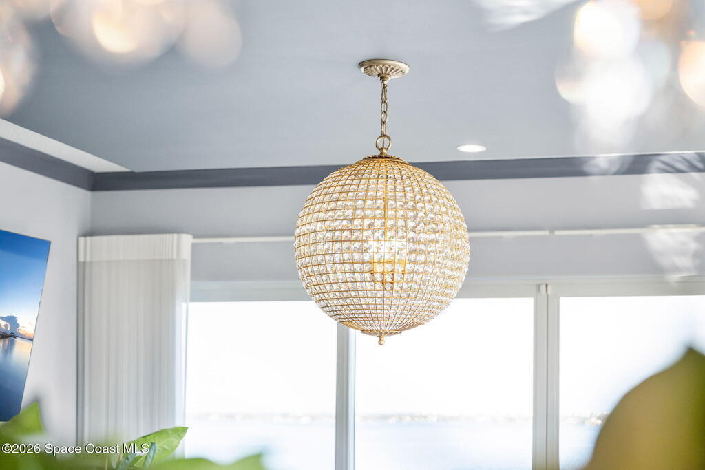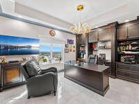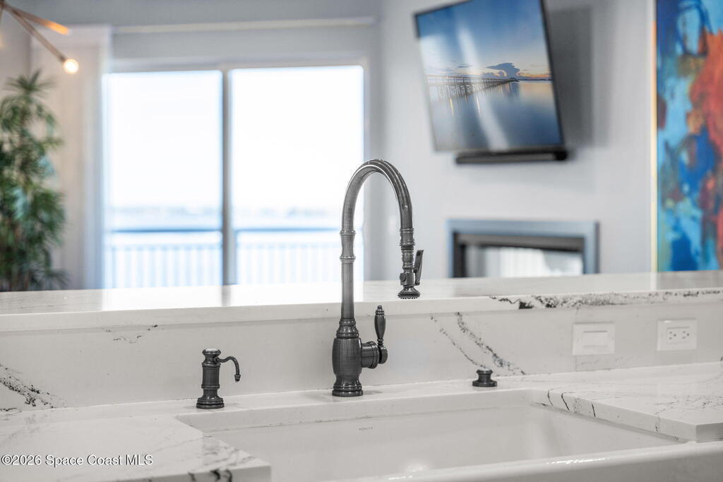 Experience elevated waterfront living in this stunning corner penthouse.This elegant home welcomes you with a beautiful hand laid marble floor highlighted by designer chandeliers lighting your way to a spacious open concept living area with floor to ceiling sliding doors.They showcase breathtaking views of the Indian River and rocket launches.The gourmet kitchen includes an induction cooktop and custom cabinets with pullout shelving.The master suite offers a private balcony, two walk-in closets, a shoe closet, spa bath, bidet and designer tile finishes. Two secondary en suite bedrooms, an office and art studio complete the living space.There are quartz countertops, electric window treatments, upgraded plumbing and light fixtures in every room.A see through fireplace separates the living and family areas. Sip your morning coffee watching beautiful sunrises or enjoy cocktails from your full bar with pull out shelves and its own refrigerator, freezer, wine cooler and nugget ice maker.