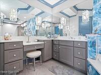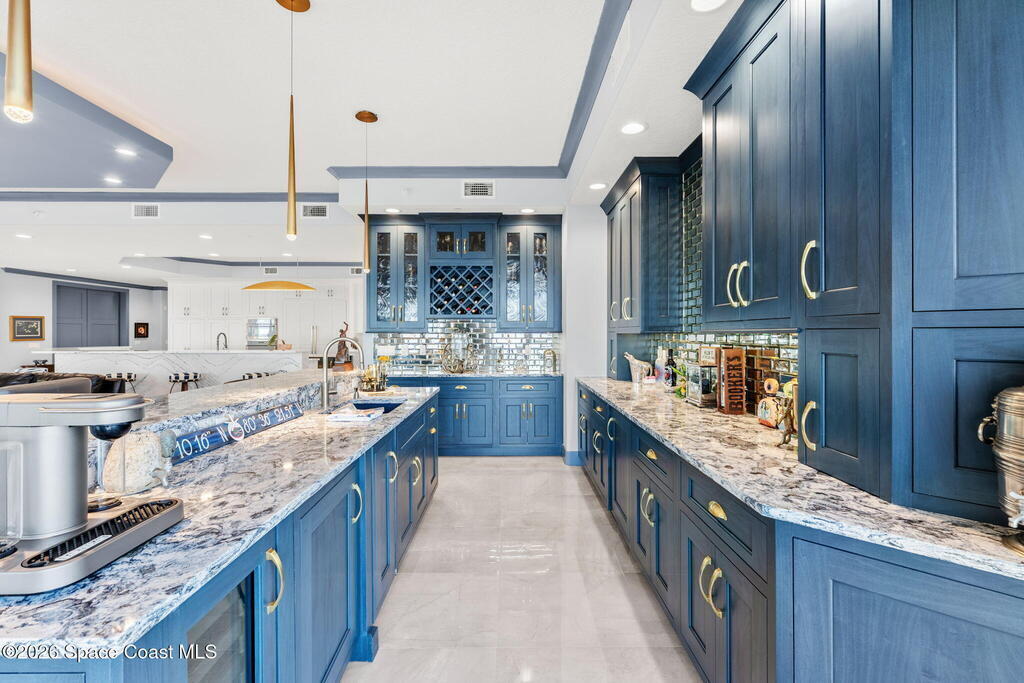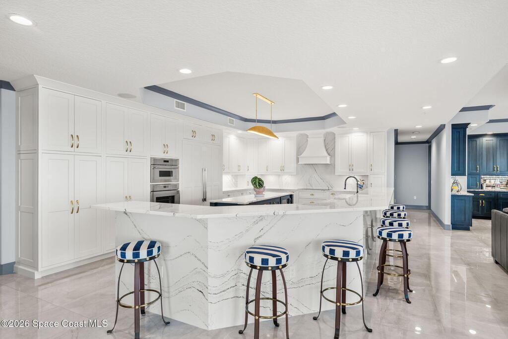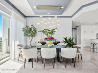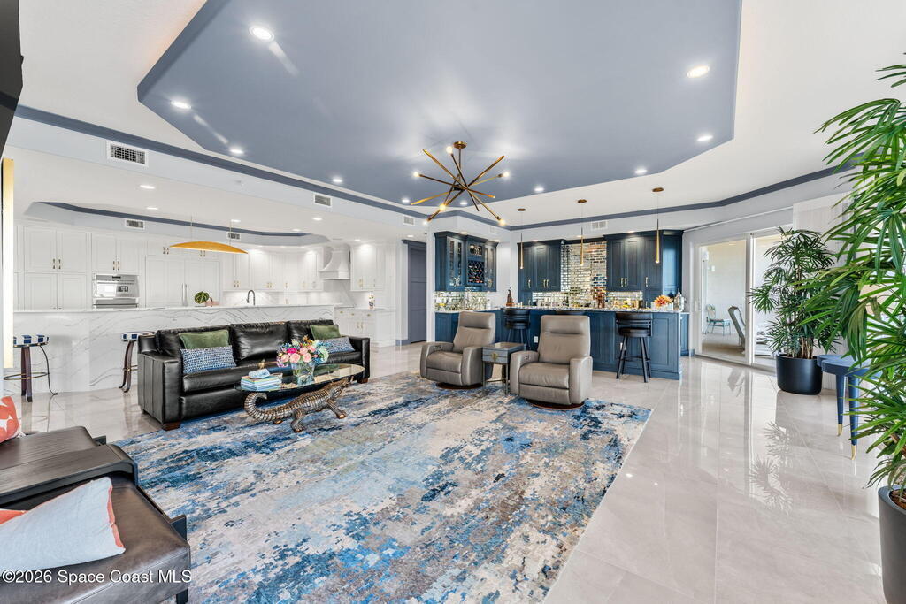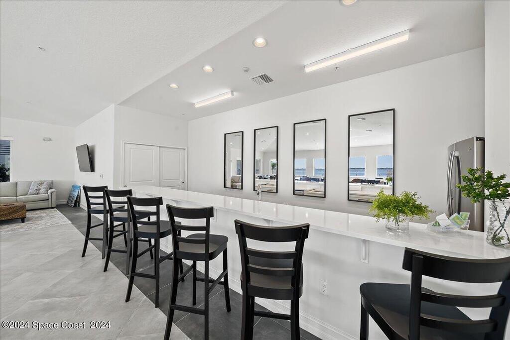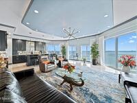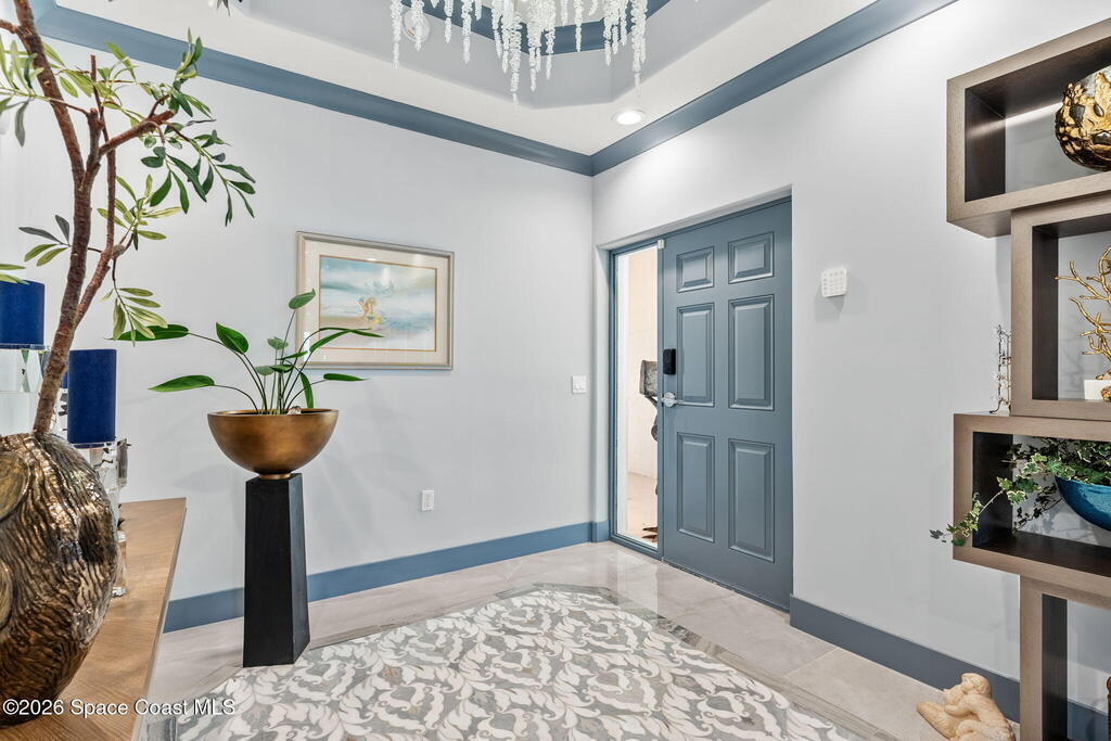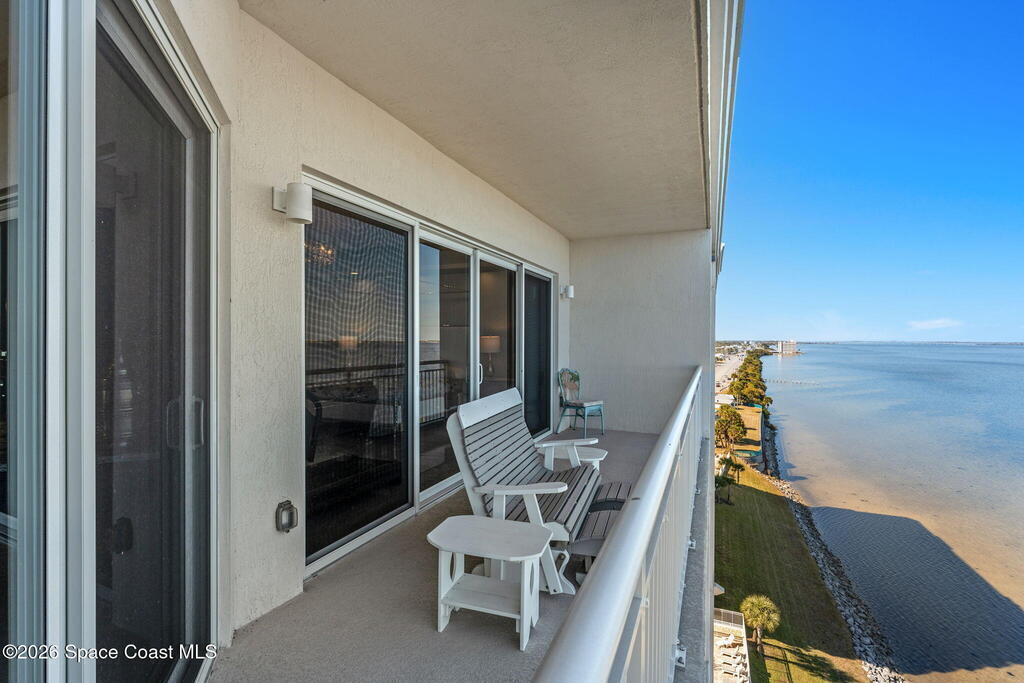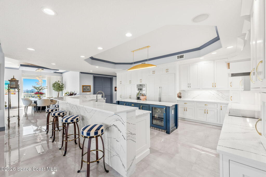 Experience elevated waterfront living in this stunning corner penthouse.This elegant home welcomes you with a beautiful hand laid marble floor highlighted by designer chandeliers lighting your way to a spacious open concept living area with floor to ceiling sliding doors.They showcase breathtaking views of the Indian River and rocket launches.The gourmet kitchen includes an induction cooktop and custom cabinets with pullout shelving.The master suite offers a private balcony, two walk-in closets, a shoe closet, spa bath, bidet and designer tile finishes. Two secondary en suite bedrooms, an office and art studio complete the living space.There are quartz countertops, electric window treatments, upgraded plumbing and light fixtures in every room.A see through fireplace separates the living and family areas. Sip your morning coffee watching beautiful sunrises or enjoy cocktails from your full bar with pull out shelves and its own refrigerator, freezer, wine cooler and nugget ice maker.