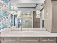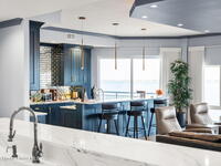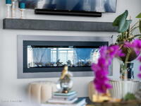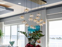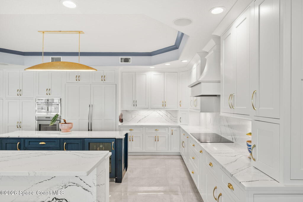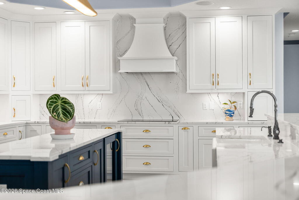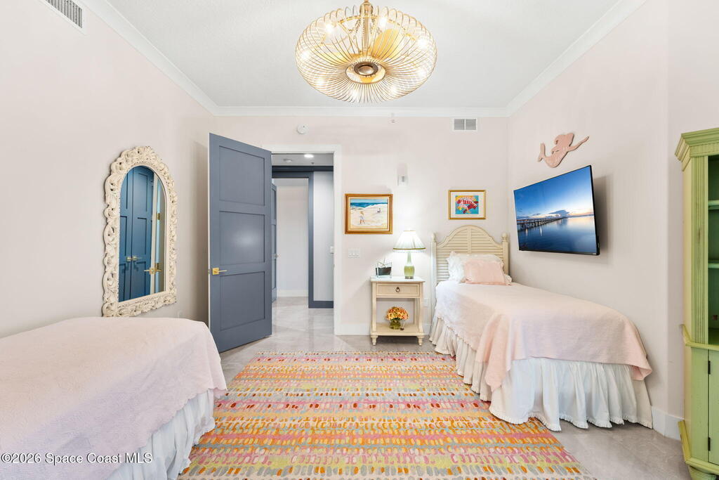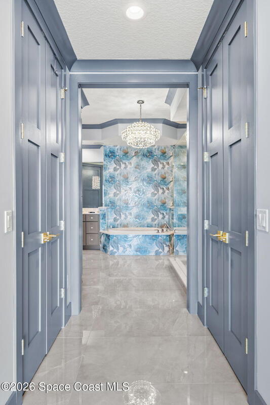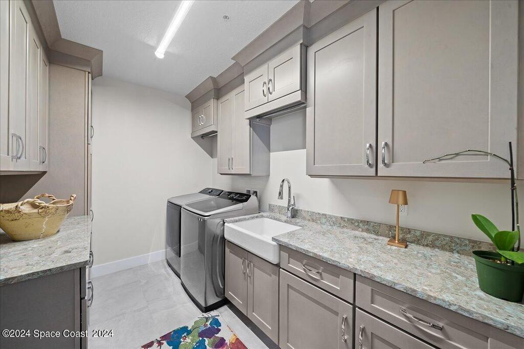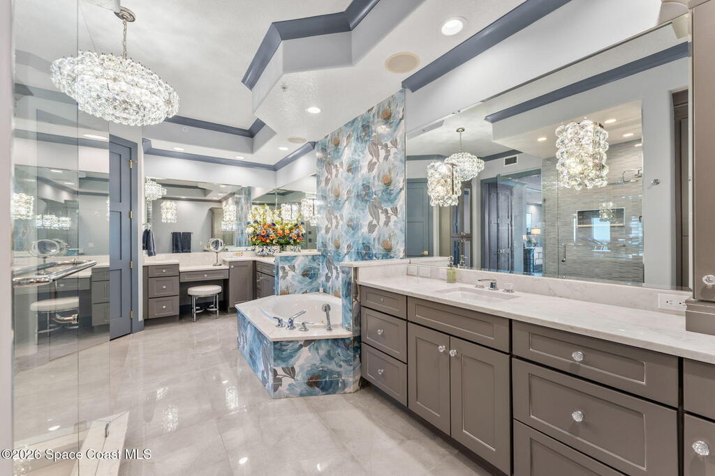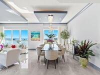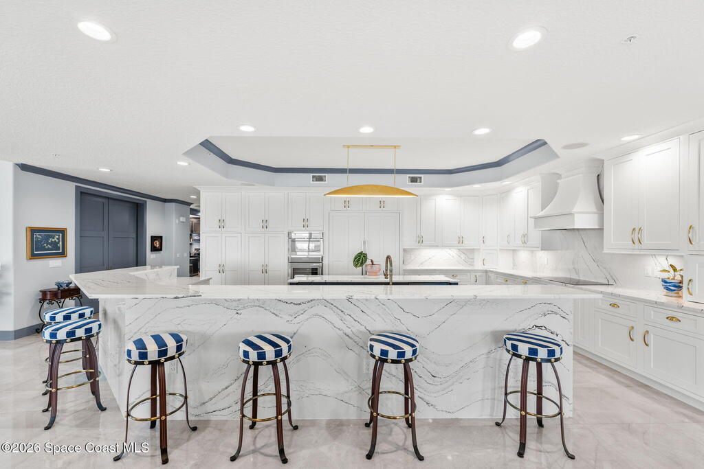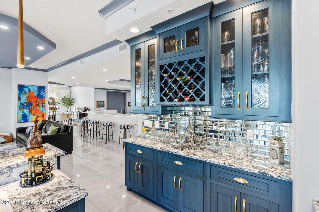 Experience elevated waterfront living in this stunning corner penthouse.This elegant home welcomes you with a beautiful hand laid marble floor highlighted by designer chandeliers lighting your way to a spacious open concept living area with floor to ceiling sliding doors.They showcase breathtaking views of the Indian River and rocket launches.The gourmet kitchen includes an induction cooktop and custom cabinets with pullout shelving.The master suite offers a private balcony, two walk-in closets, a shoe closet, spa bath, bidet and designer tile finishes. Two secondary en suite bedrooms, an office and art studio complete the living space.There are quartz countertops, electric window treatments, upgraded plumbing and light fixtures in every room.A see through fireplace separates the living and family areas. Sip your morning coffee watching beautiful sunrises or enjoy cocktails from your full bar with pull out shelves and its own refrigerator, freezer, wine cooler and nugget ice maker.