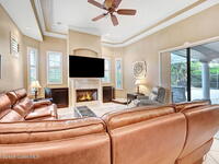 This beautiful home offers exceptional curb appeal on a spacious 0.49-acre lot. Inside, you're welcomed by a formal living room with stunning views of the pool and spa. The covered patio features a new summer kitchen, perfect for outdoor dining and entertaining. The gourmet kitchen includes custom cabinets, granite countertops, and high-end appliances, opening to a cozy family room with soaring ceilings, crown molding, and a fireplace.The primary suite, situated near the pool, boasts an updated bathroom with double vanities, a dual shower, and a spacious soaking tub. An adjoining room with French doors is ideal for an office or extra bedroom. The formal dining room offers great space for hosting guests.Upstairs, an updated wood staircase leads to a versatile loft area with wood flooring, two additional bedrooms, and two full bathrooms--ideal for families or those who enjoy separate living spaces.