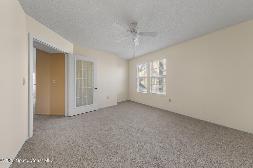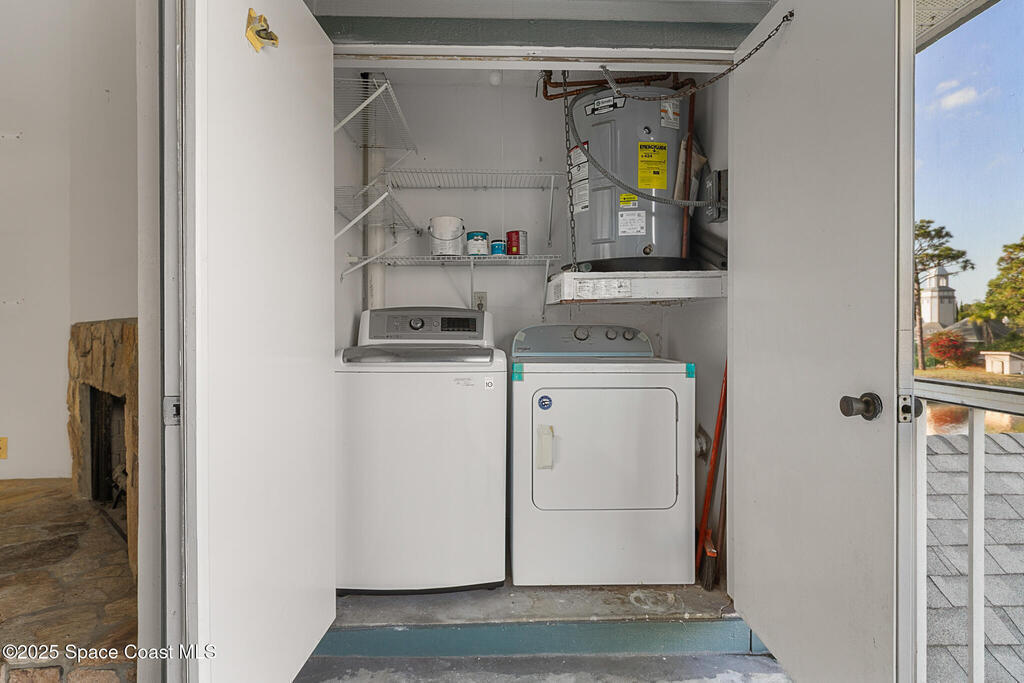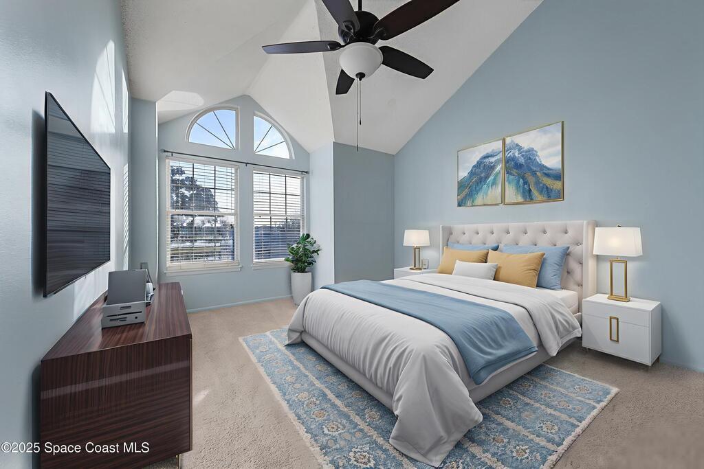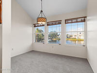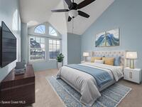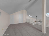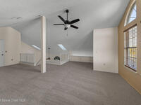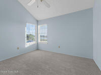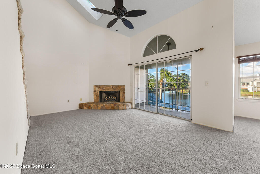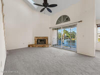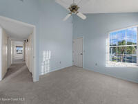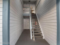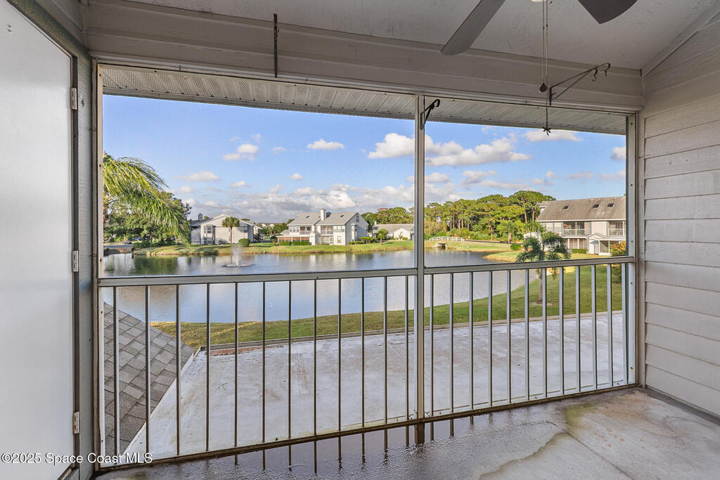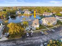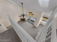 Unique two-story penthouse offering 3 bedrooms and 3 full bathrooms in a convenient central location. Upon entry, the main living area opens to a screened balcony overlooking peaceful water and a fountain, with abundant natural light from skylights and the open loft many feet above. The living room features a fireplace and flows to the balcony, which includes a dedicated laundry area. The kitchen is to the right with a breakfast nook for casual dining. All three bedrooms are located on the first floor, including the primary bedroom, offering comfortable main-level living. Upstairs, a spacious loft overlooks the living area below and provides exceptional flexibility. With two closets and its own full bathroom with shower, this space can easily function as a fourth bedroom, family room, game room, or media room. Assigned parking is located directly in front of the unit stairs for convenience. Ideally situated near shopping, including Florida Institute of Technology & minutes to beaches.