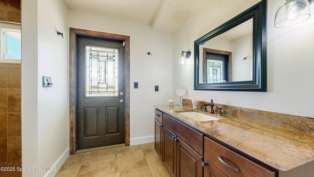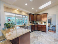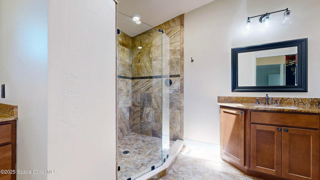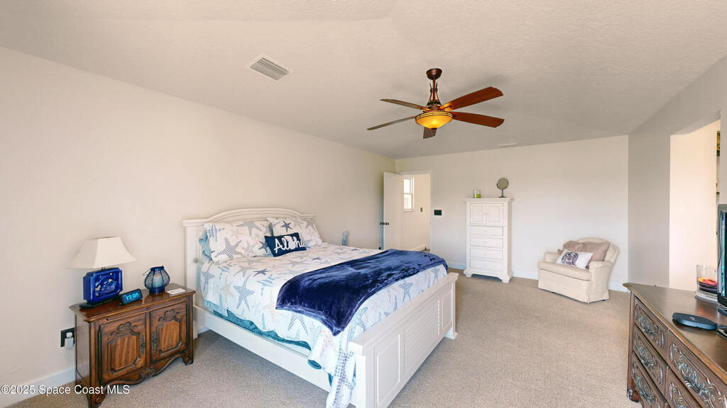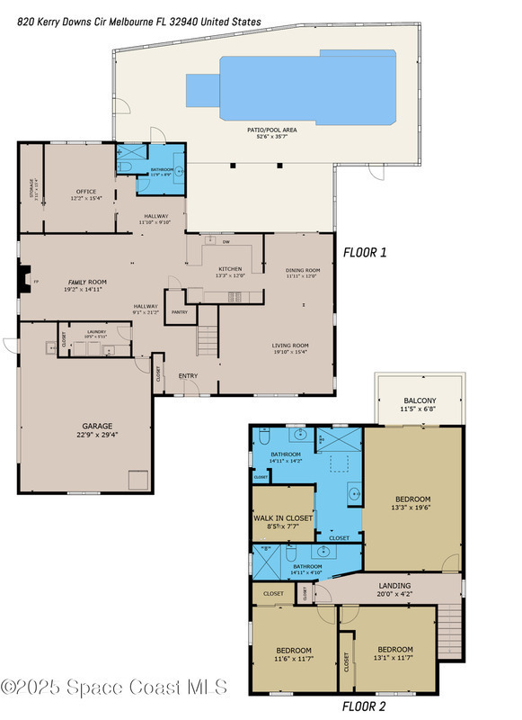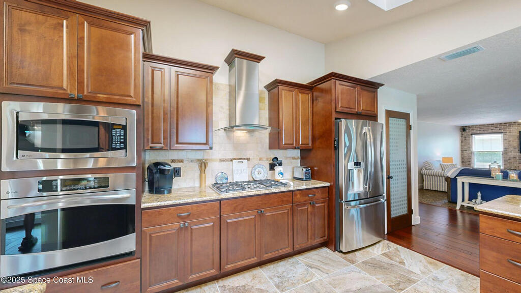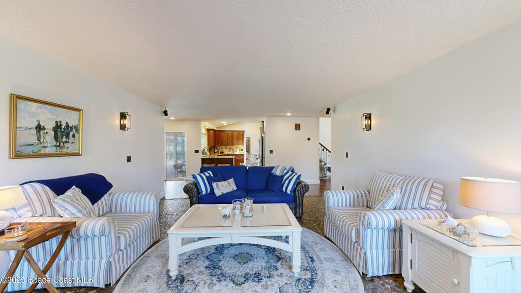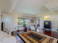 Beautifully situated on the #3 Challenge Course at Suntree Golf Club, this updated pool home offers over 3, 000 sq. ft. of living space with exceptional golf course views. The home features a 2023 A/C system, 2021 roof, and 40 solar panels for added energy efficiency(paid off). The kitchen includes cathedral ceilings, granite countertops, stainless steel appliances, a gas range, hammered copper farmhouse sink, and pantry. Additional highlights include skylights, cherry- wood flooring, and a family room with a brick fireplace(wood burning can covert back to gas). The screened, gas-heated salt water pool and spa, along with the covered patio, provide an ideal setting for year-round enjoyment. The upstairs primary suite features a private balcony with sunrise and sunset views! Conveniently located near schools, shopping, dining, and medical facilities.