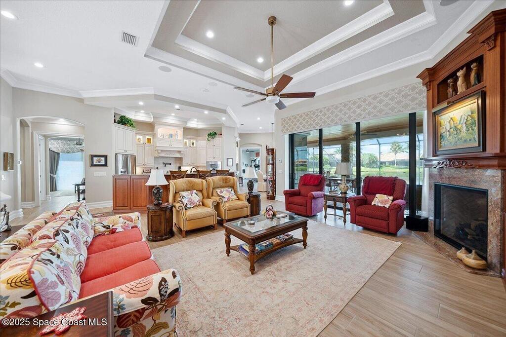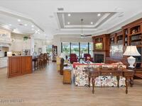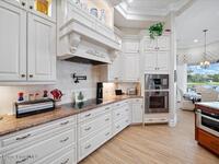 Located in the gated community of Wyndham at Duran, this custom lakefront home offers 3, 649 SF of living space and was previously the builder's model. Featuring 4 bedrooms, 4 bathrooms, a flex space/office, and a 3-car garage. The home showcases a desirable open and split floor plan designed for both comfort and functionality.The elegant interior includes a wrought-iron double-door entry, gas fireplace, and extensive upgrades throughout. Custom window treatments enhance each space, while abundant natural light highlights the quality craftsmanship. The kitchen and living areas flow seamlessly to the outdoor living space, ideal for entertaining.Enjoy Florida living at its finest with a resort-style pool and spa, plus a covered lanai complete with an impressive 711 SF summer kitchen overlooking peaceful lake views. This exceptional home combines luxury, privacy, and an ideal location near golf, shopping, dining, and top-rated schools.