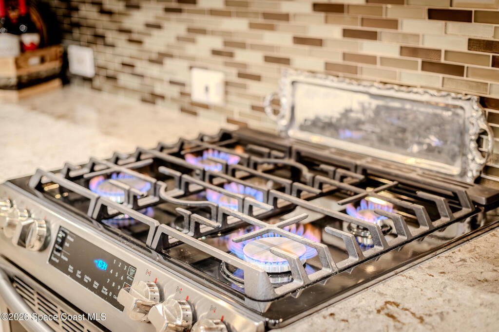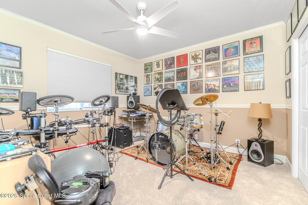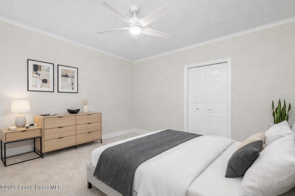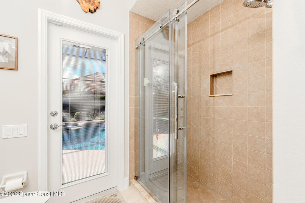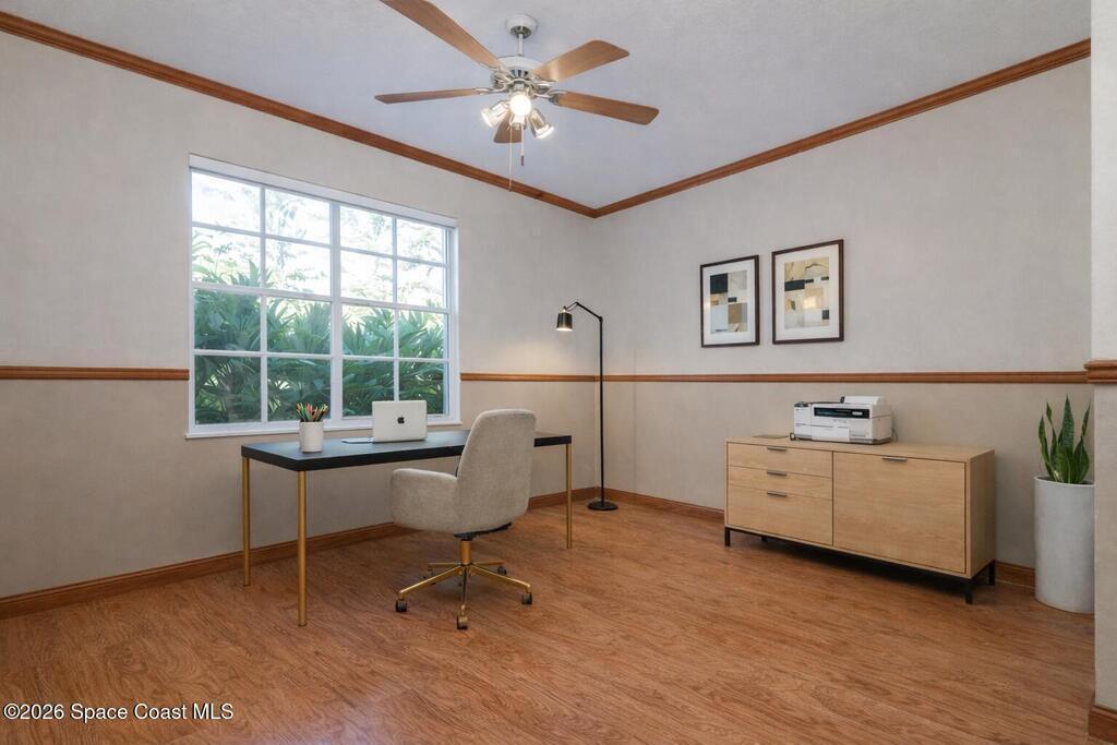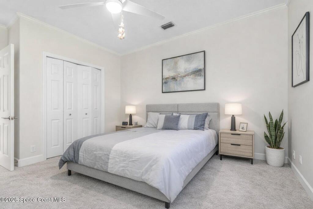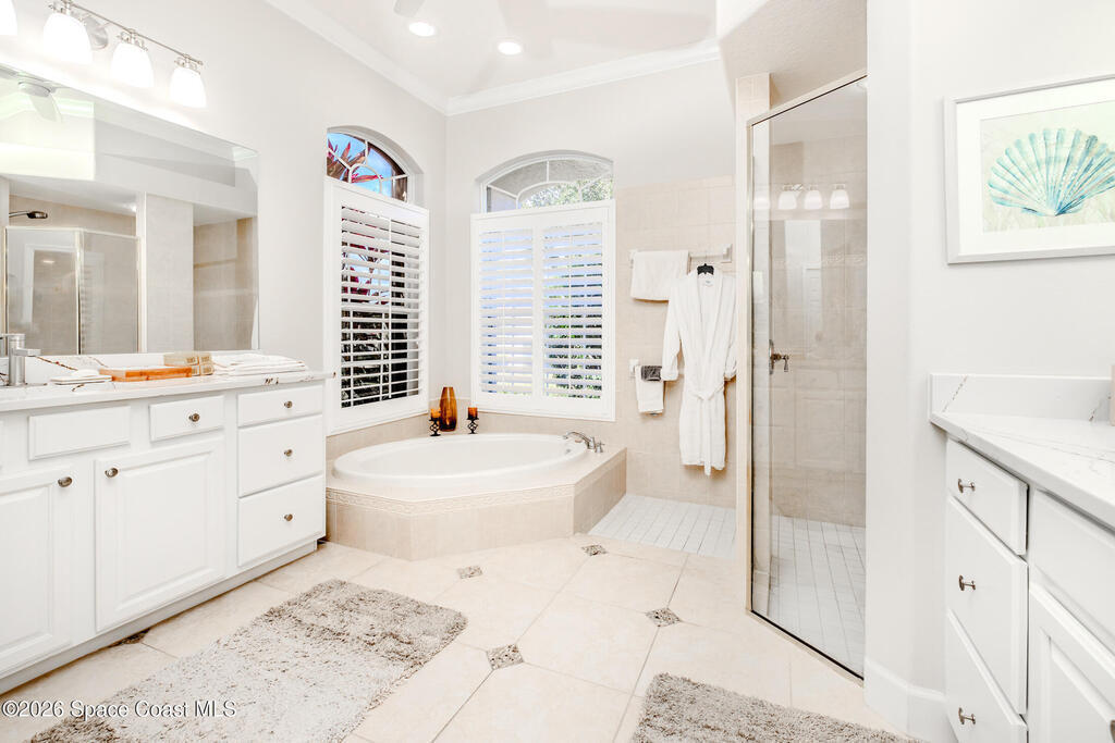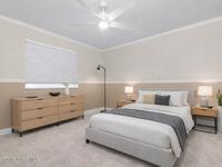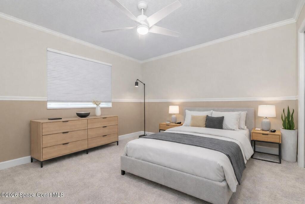 Welcome to this exceptional Arthur Rutenberg home in the 24-hour guard-gated community of Baytree in Suntree. Built in 2001 and offering 3, 203 square feet, this beautifully updated residence features 4 bedrooms, 3 bathrooms, a dedicated private office, and a spacious bonus room complete with a pool table -- ideal for entertaining or extended living. The desirable split floor plan includes a private wing with bedroom, full bath, double closets, bonus room, and direct pool access, allowing it to be closed off for multi-generational living or an in-law suite. From the moment you arrive, elegant double front doors with new glass inserts open to a designer foyer chandelier and refined architectural details, including 10-foot ceilings, crown molding, 6-inch baseboards, custom cedar tray ceiling, and triple pocket sliders that create seamless indoor-outdoor living. Five separate access points lead to the lanai, enhancing the home's open flow. The chef's kitchen is beautifully