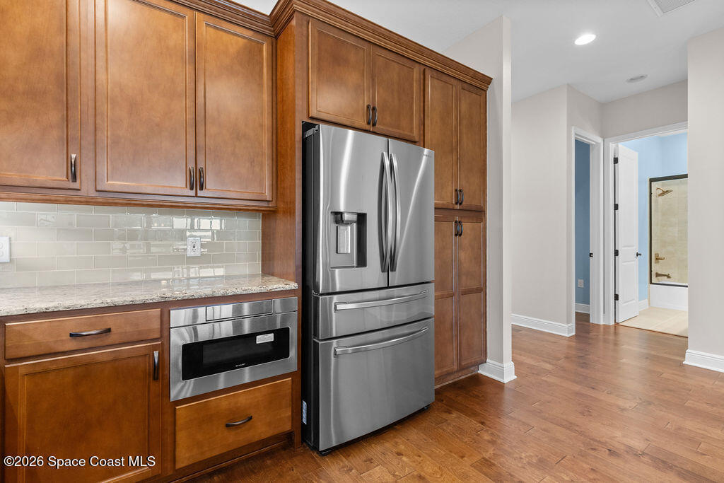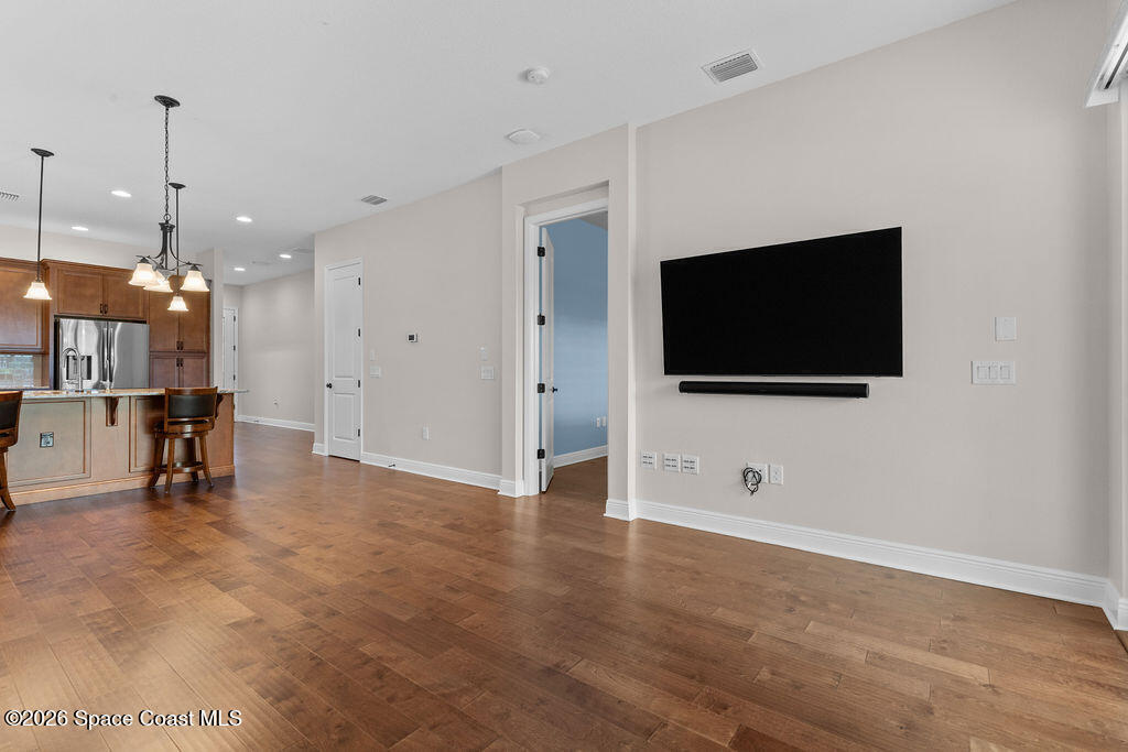 Welcome to 2818 Avalonia Drive in Viera West--a home that immediately feels different, in the best way. After construction was complete, the owner added 47 thoughtful upgrades that elevate the entire space. This 3-bedroom, 2-bath townhouse feels warm, polished, and intentionally designed for everyday living. Hardwood floors flow seamlessly through the living areas and bedrooms, creating a cozy, high-end feel that's both inviting and easy to maintain. The open layout is bright and comfortable, enhanced by eight-foot interior doors, 51/4-inch base molding. The kitchen is upgraded stainless steel appliances, soft-close cabinetry, and under-cabinet lighting that makes evenings feel calm and welcoming. Behind the scenes, the upgrades continue with pre-wiring for speakers, TVs, and security cameras, plus impact windows and an epoxy-coated garage floor. This is a home that was truly cared for and thoughtfully improved, offering comfort, style, and peace of mind.